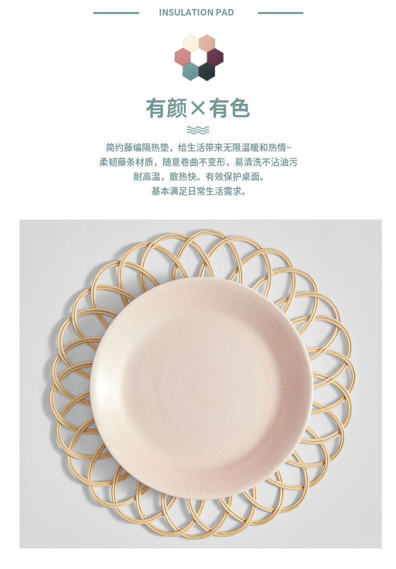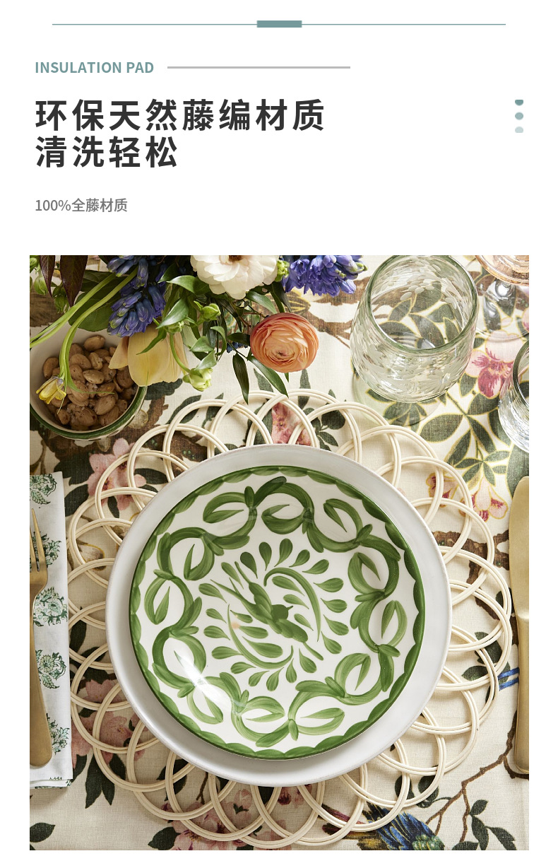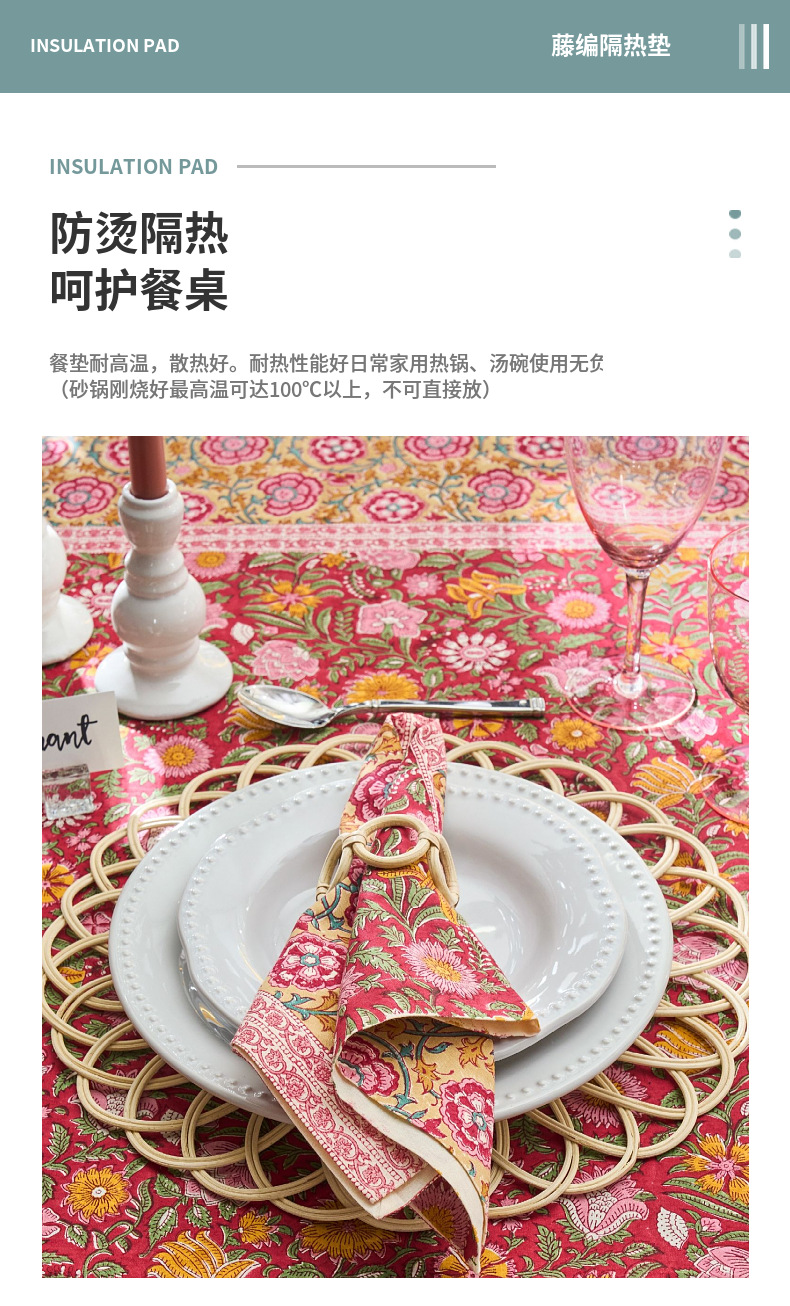 Suministro directo de fábrica al por mayor mantel tejido de ratán tapete de aislamiento antideslizante estilo pastoral decoración de bodas tapete de mesa posavasos