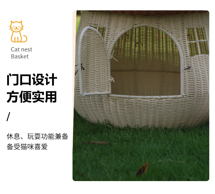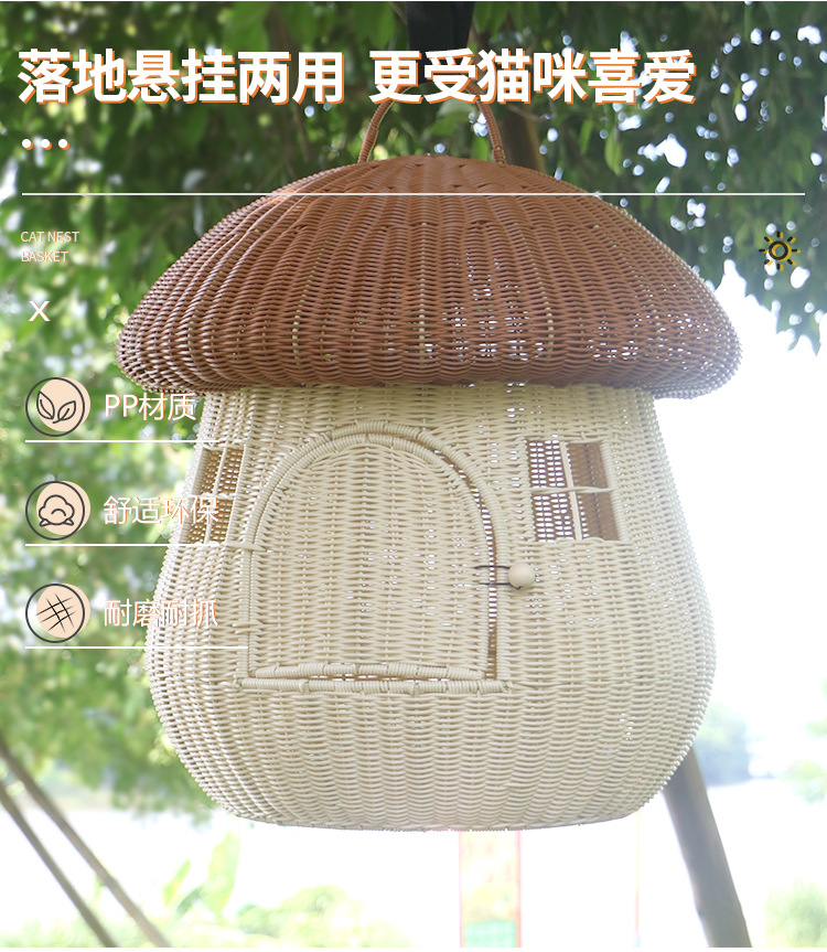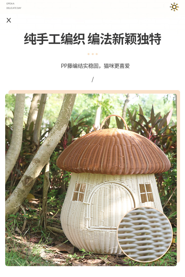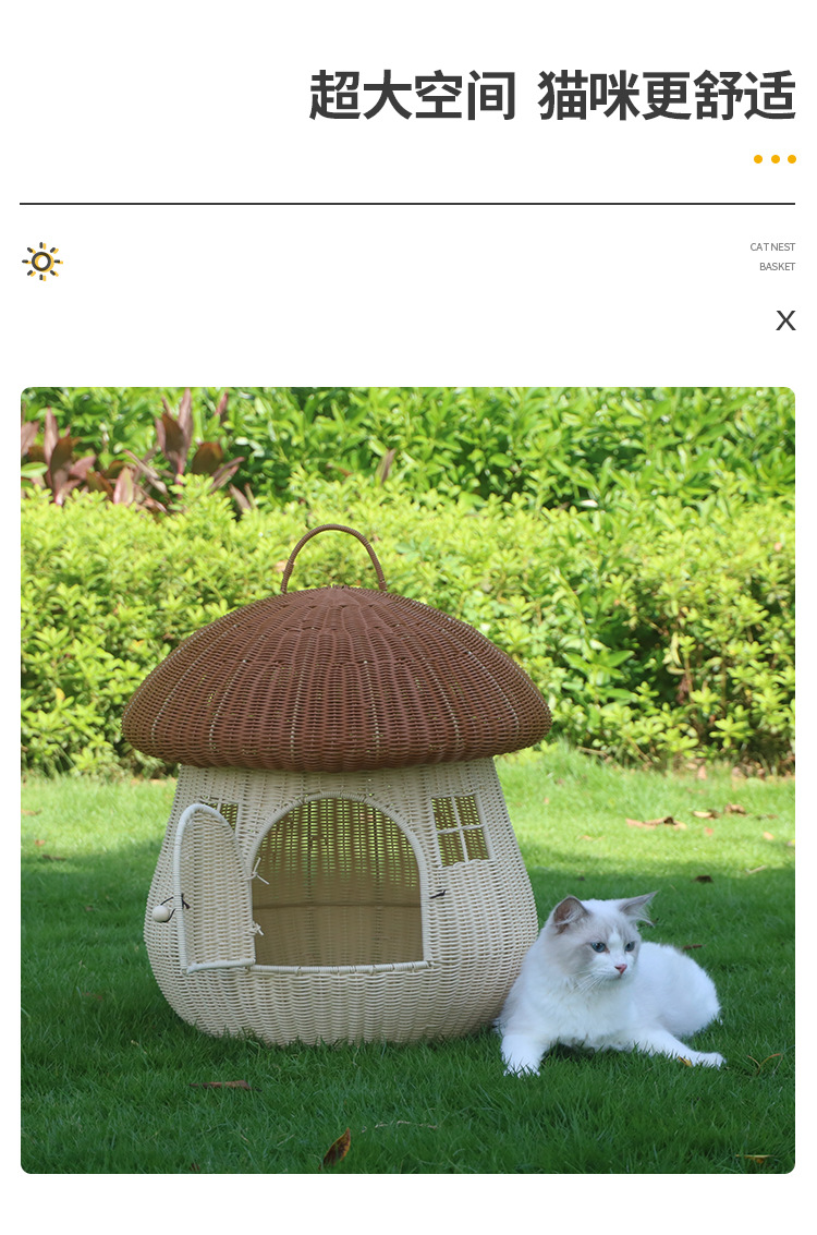 Cama para mascotas tipo cerrada para uso en interiores y exteriores, nido tejido de ratán, linda cama para gatos y perros, casa de ratán con forma de hongo, nido para gatos, cama para gatos