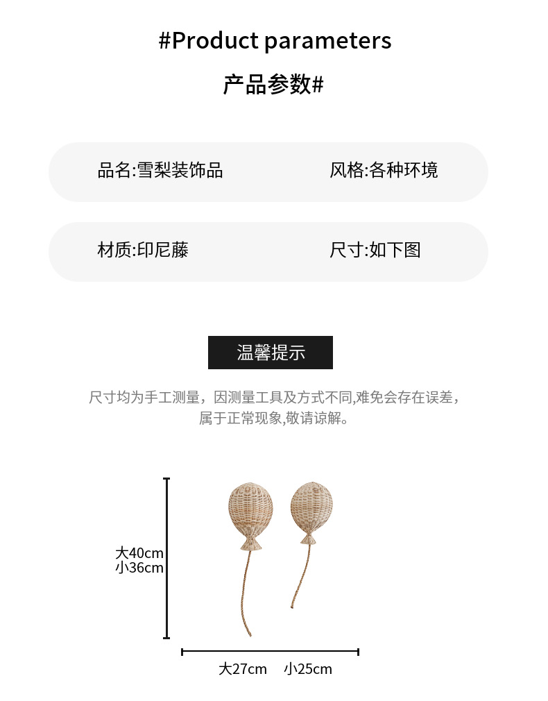 INS Nordic globo de ratán de bambú decoración de la pared de la habitación de los niños colgante de pared decoración de la pared colgante