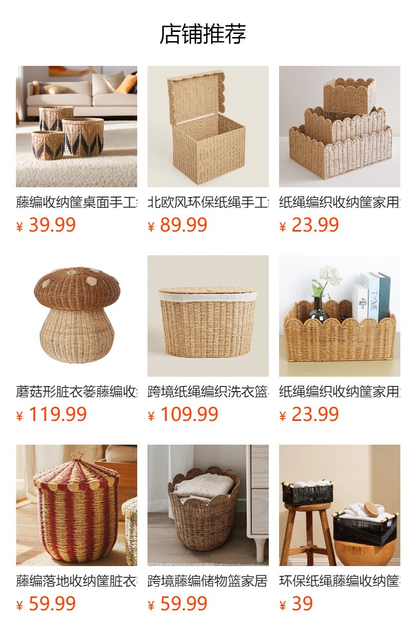 Mayorista de ropa doméstica de gran capacidad, artículos de mesa, bocadillos, juguetes, cestas de almacenamiento, cuerdas de papel trenzadas, cestas de almacenamiento