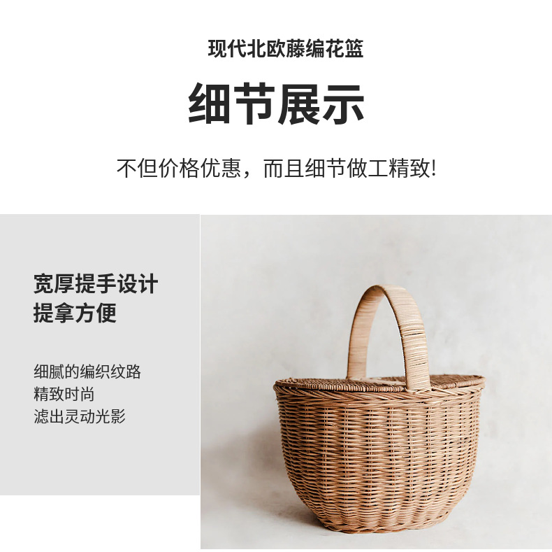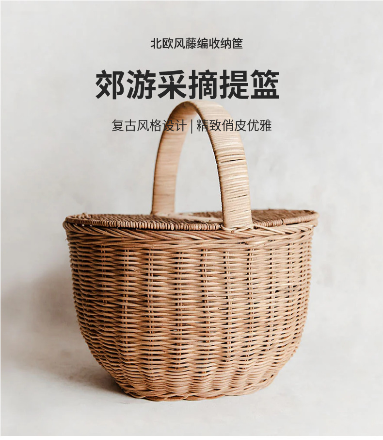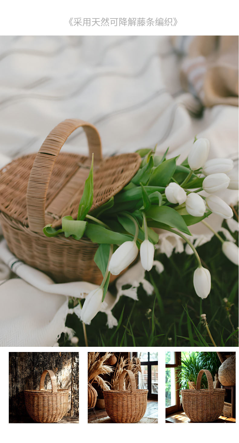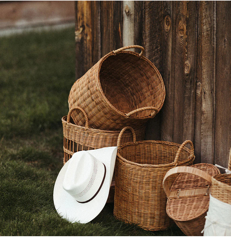 Cesta tejida portátil de ratán Cesta tejida para picnic al aire libre Cesta tejida de ratán retro Cesta de flores de ratán de frutas y verduras Cesta de almacenamiento