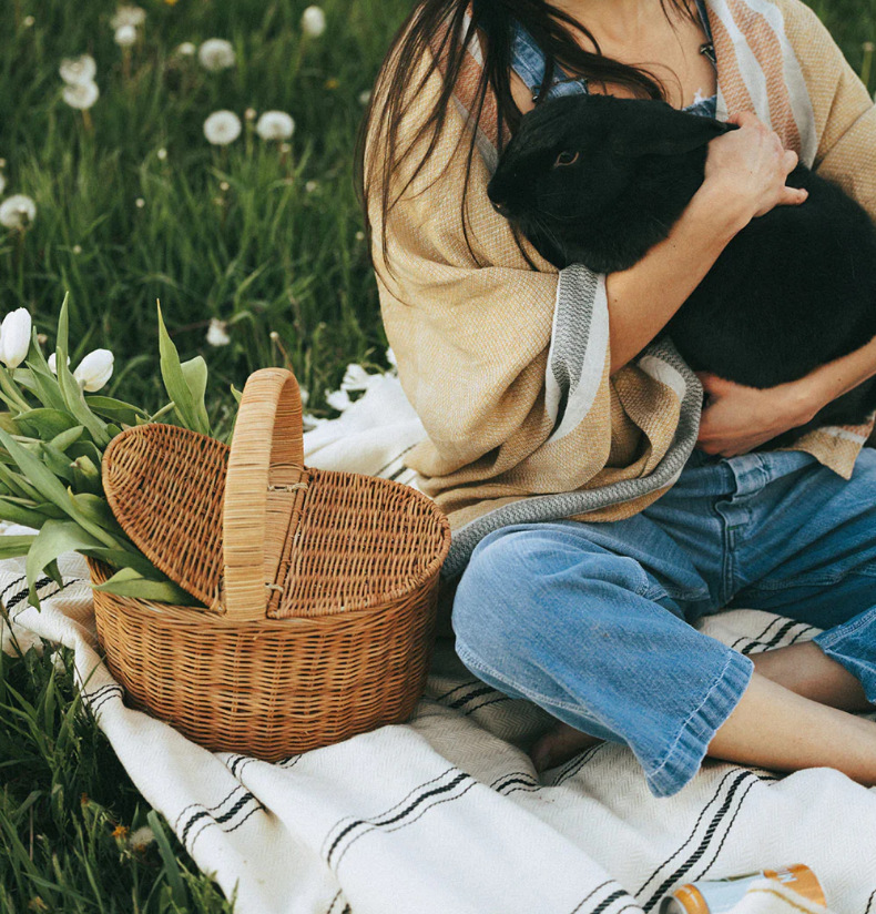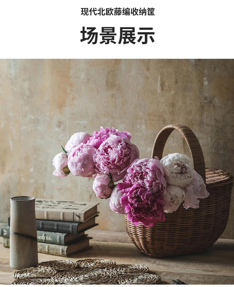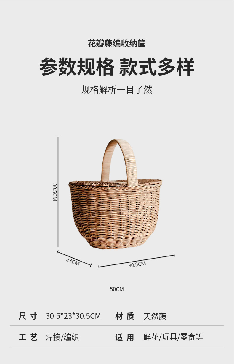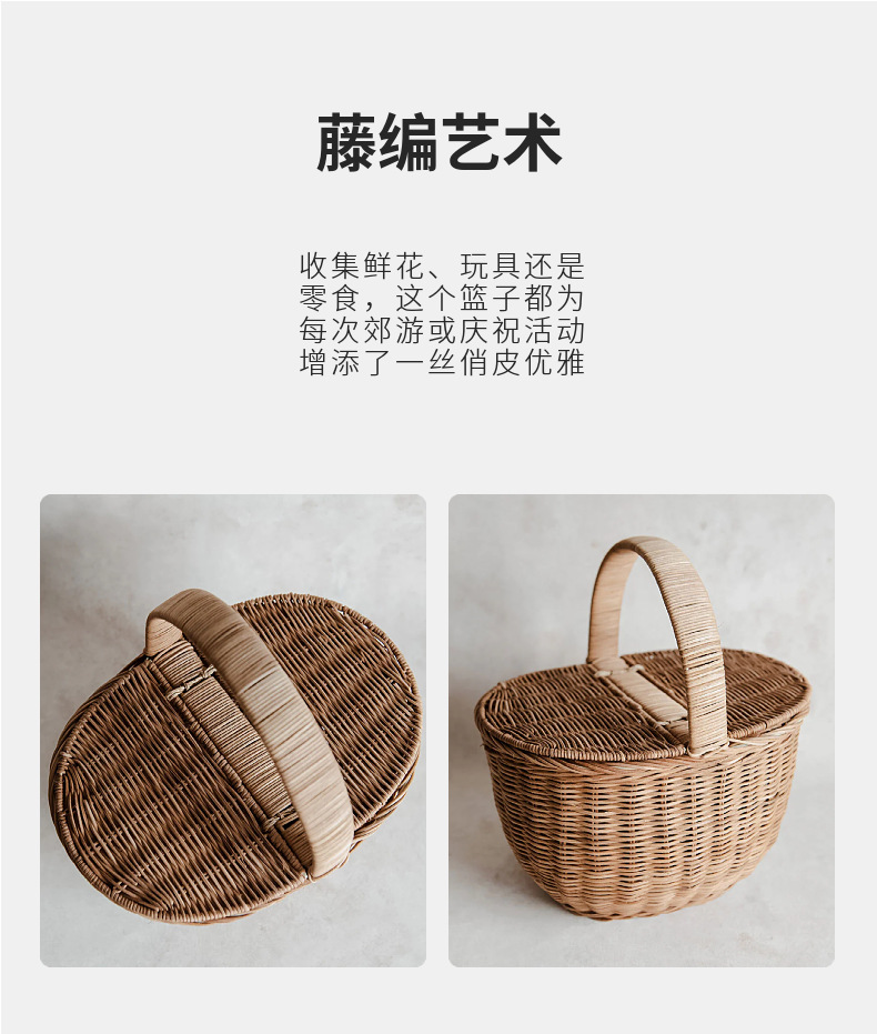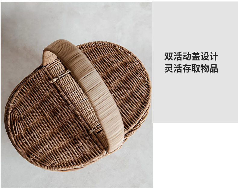 Cesta tejida portátil de ratán Cesta tejida para picnic al aire libre Cesta tejida de ratán retro Cesta de flores de ratán de frutas y verduras Cesta de almacenamiento