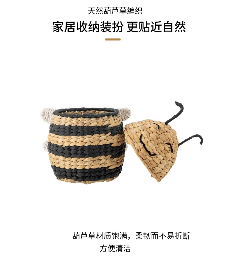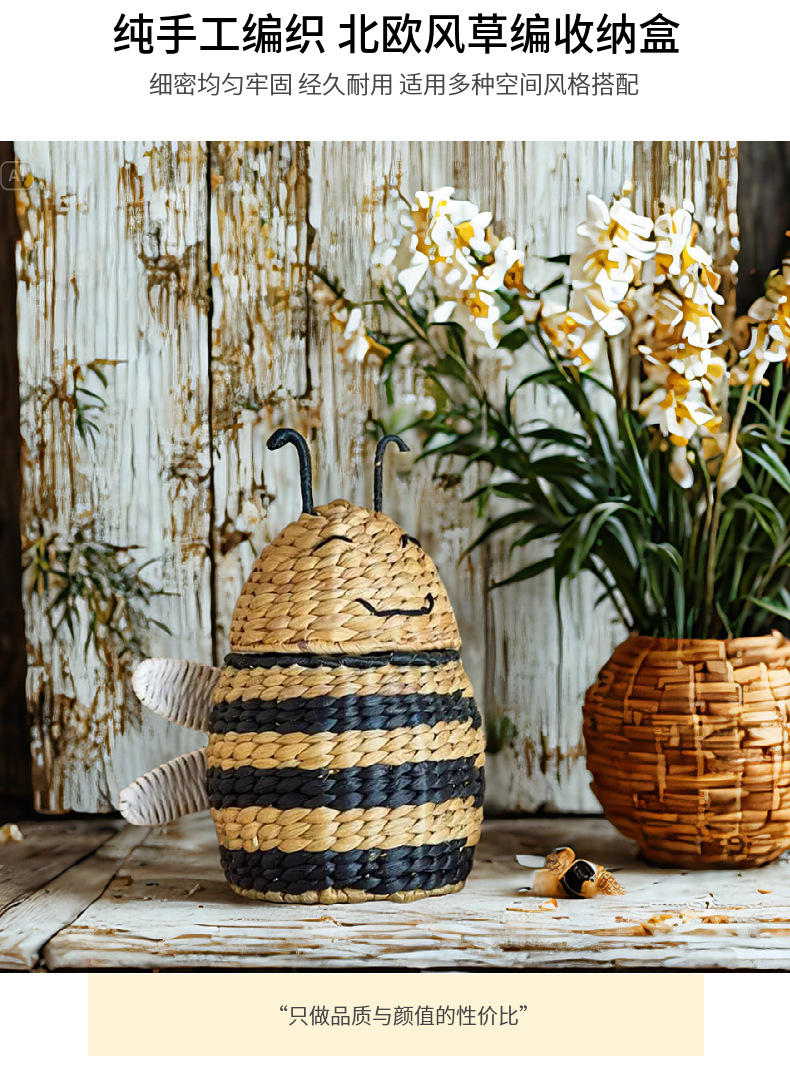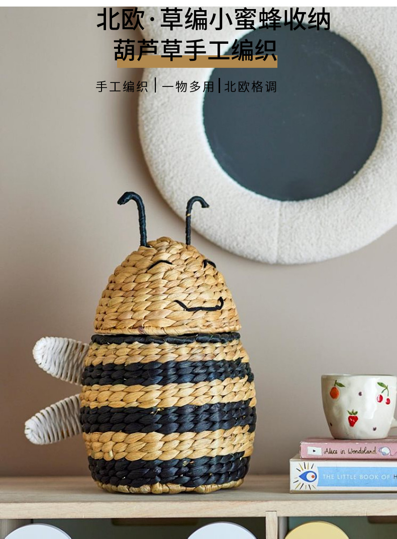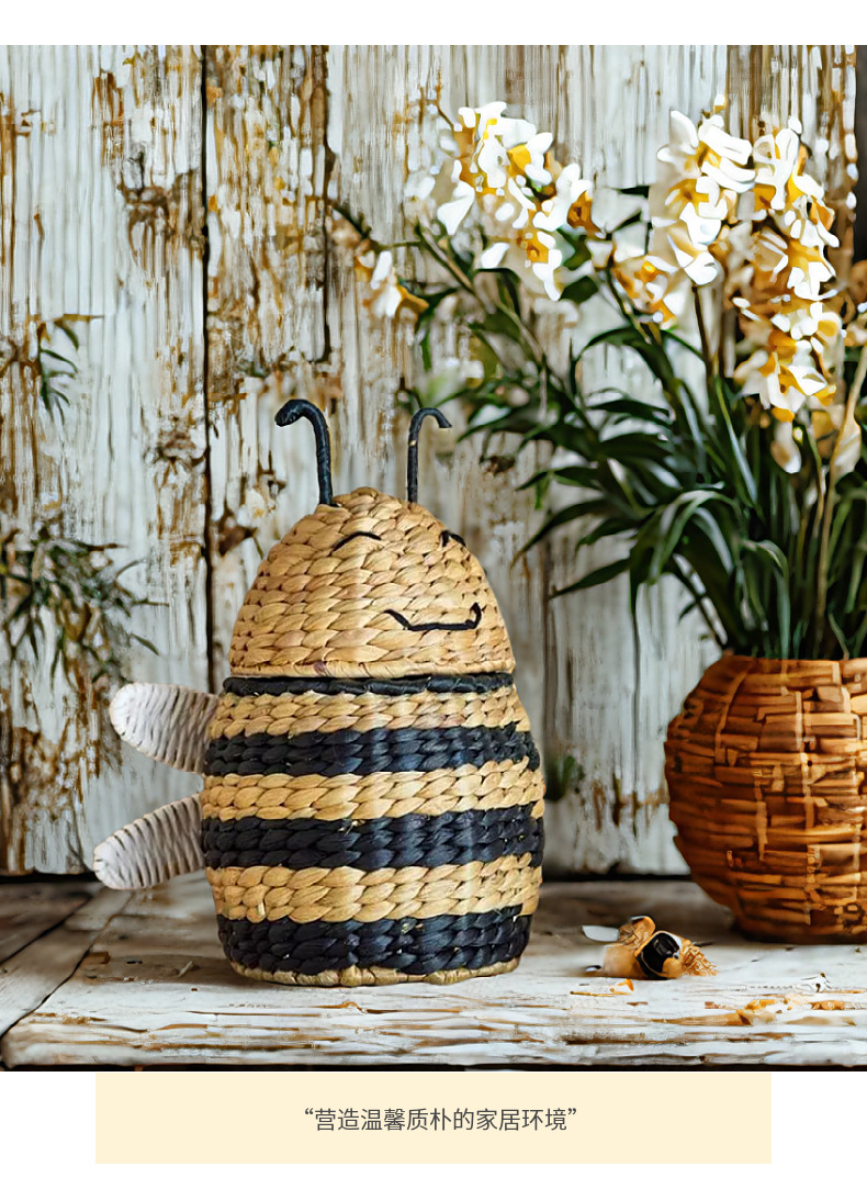 Caja de almacenamiento de abejas tejida de paja de estilo europeo Cesta de almacenamiento tejida a mano Artículos para el hogar Cesta de almacenamiento de artículos diversos de juguete
