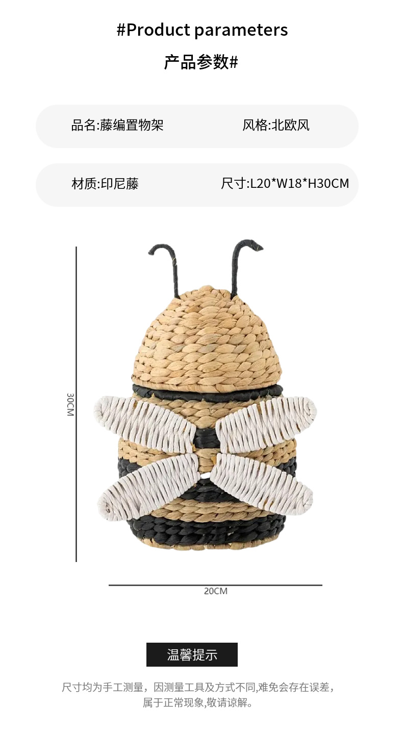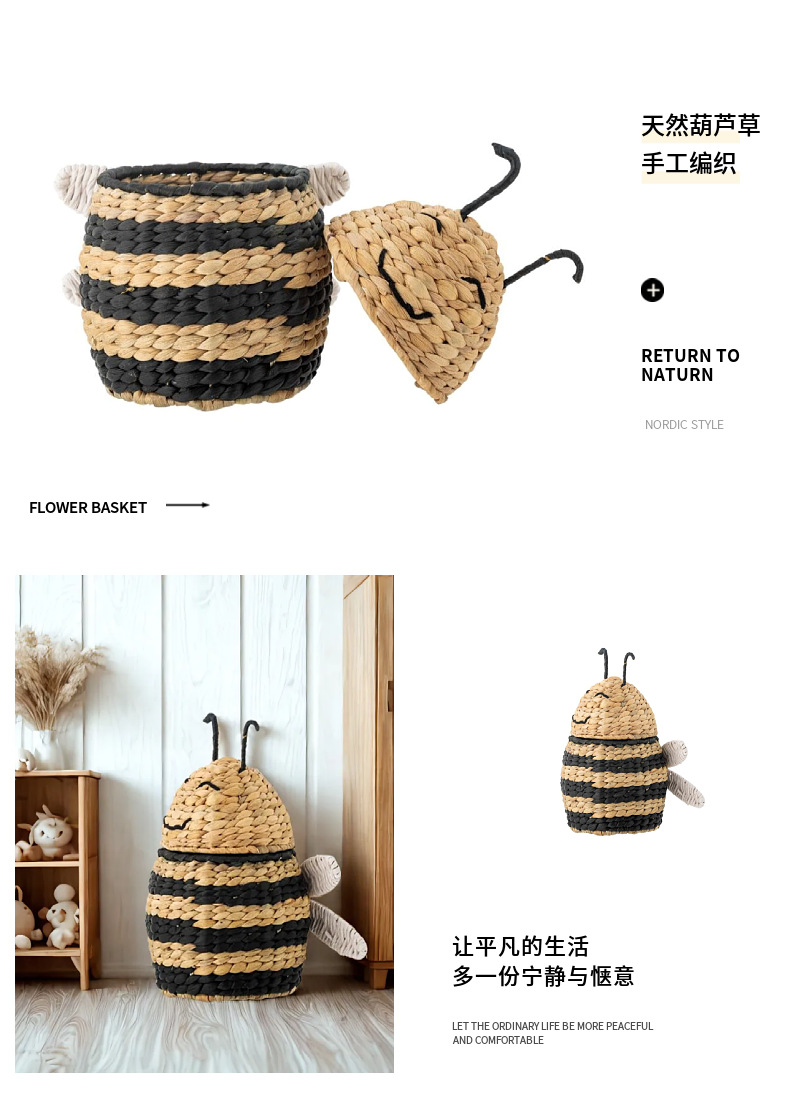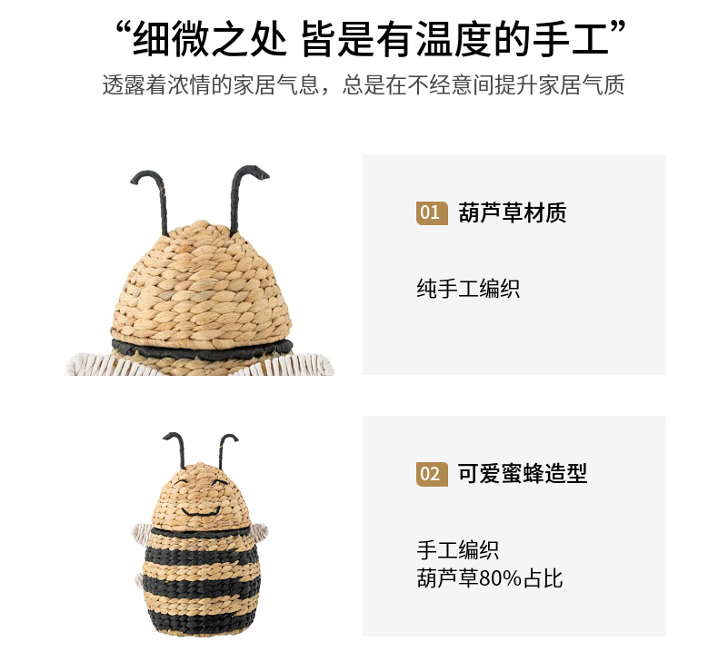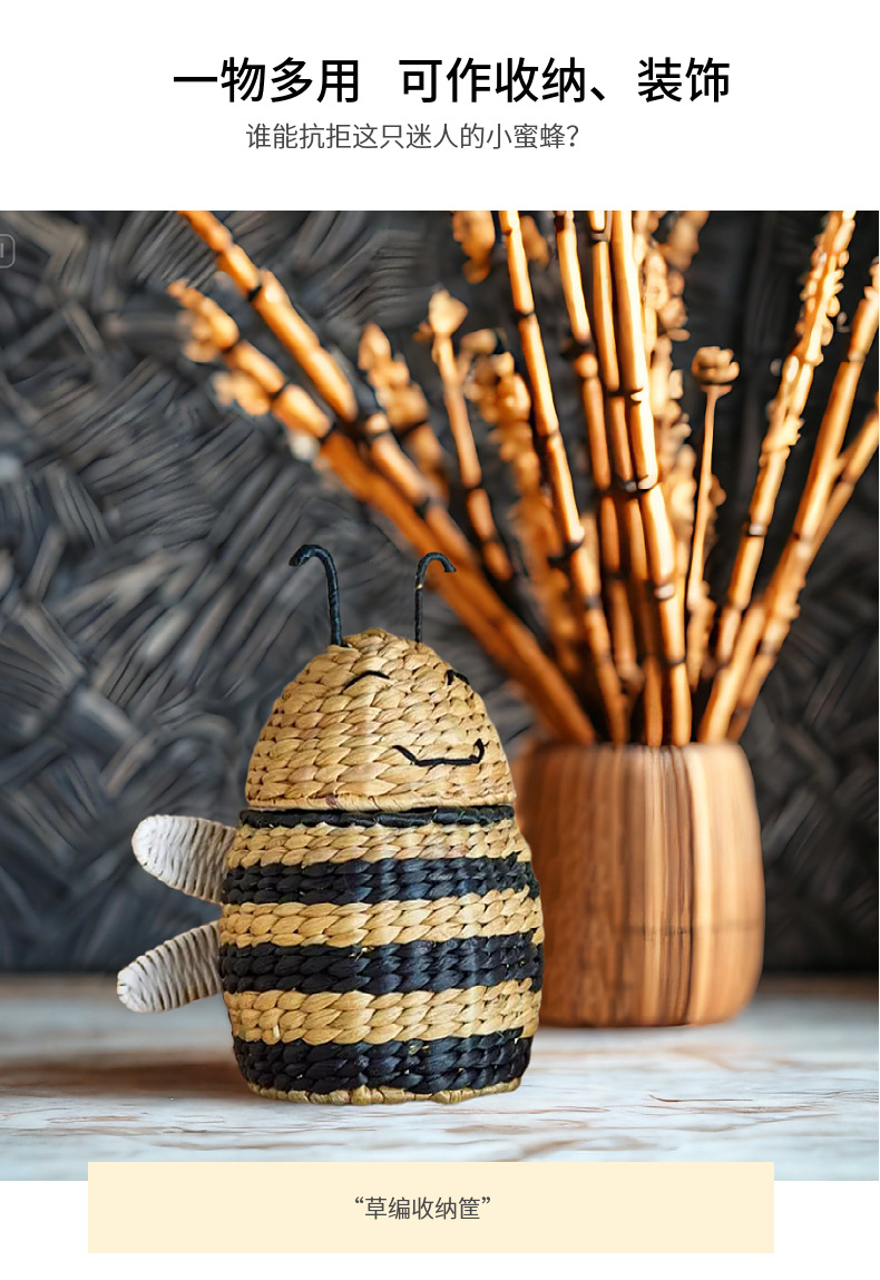 Caja de almacenamiento de abejas tejida de paja de estilo europeo Cesta de almacenamiento tejida a mano Artículos para el hogar Cesta de almacenamiento de artículos diversos de juguete