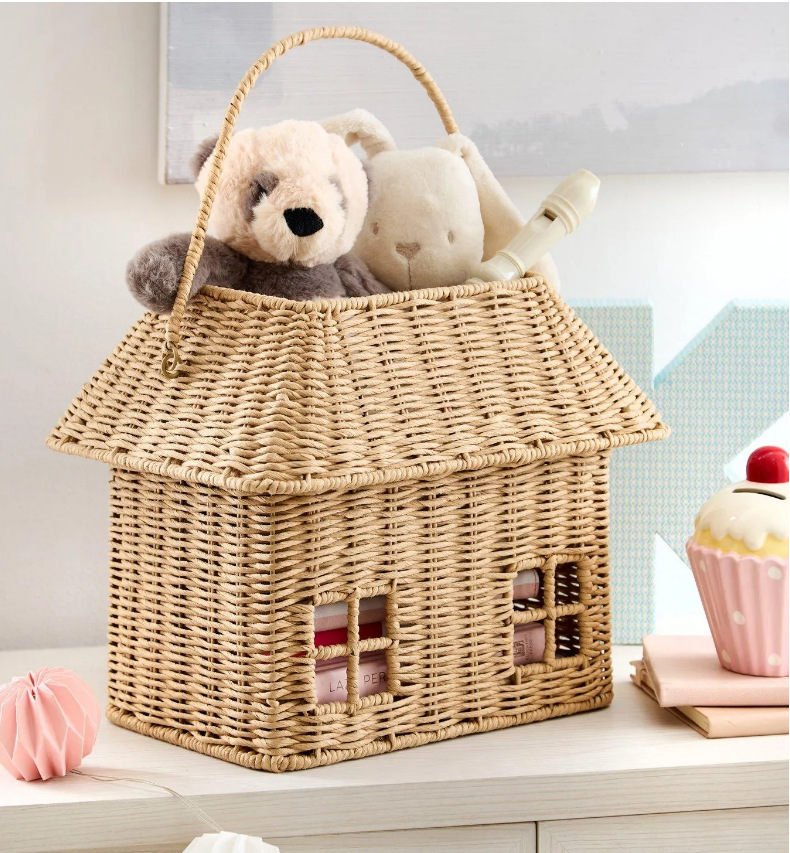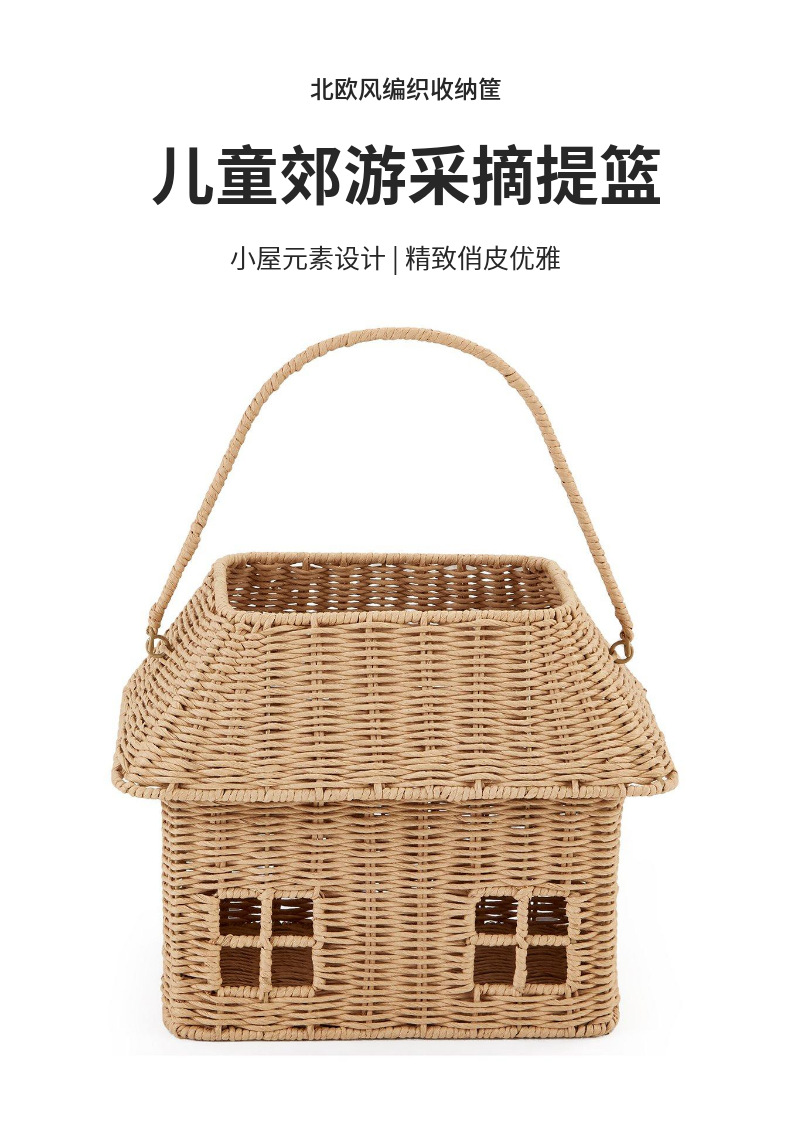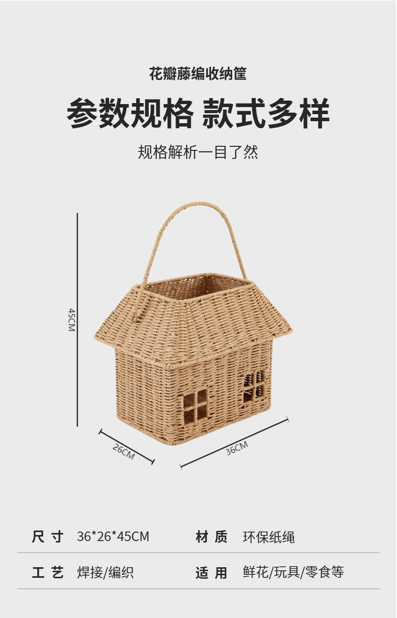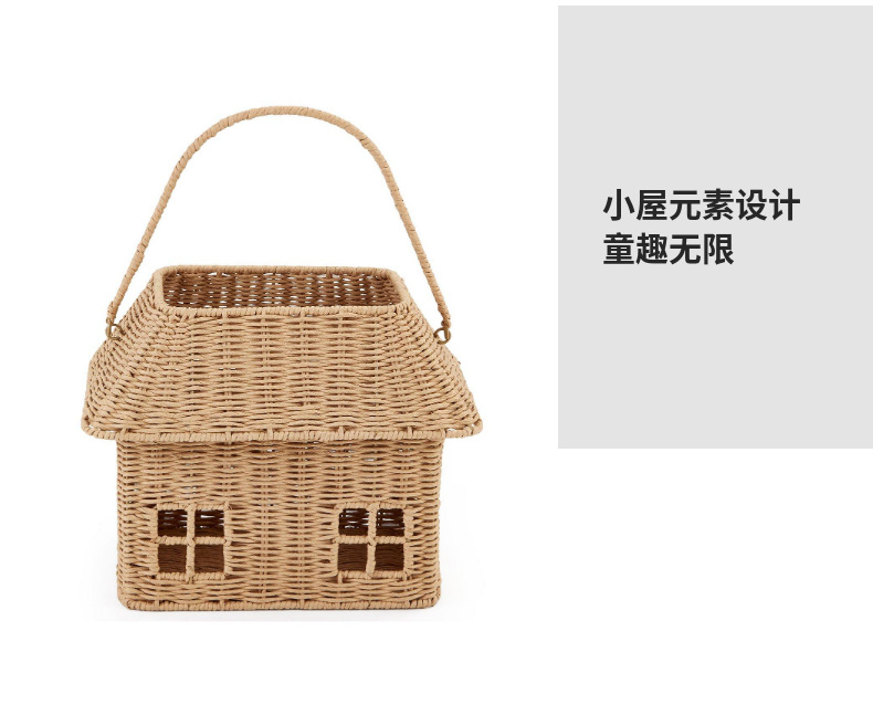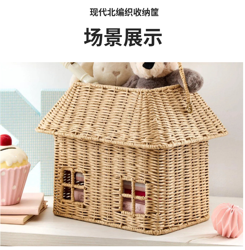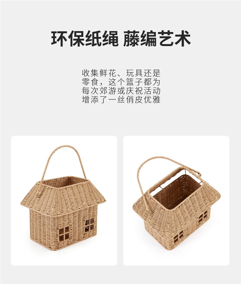 ins tejido a mano casa cesta de escritorio con cubierta de almacenamiento decoración de la habitación de los niños fotografía juguetes cesta de almacenamiento