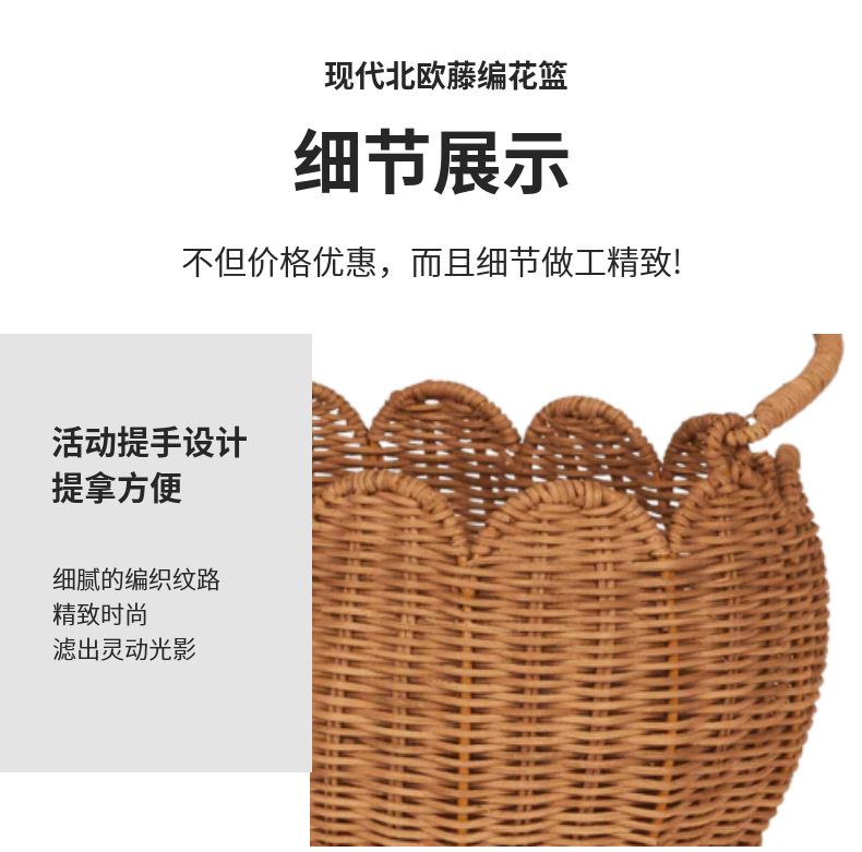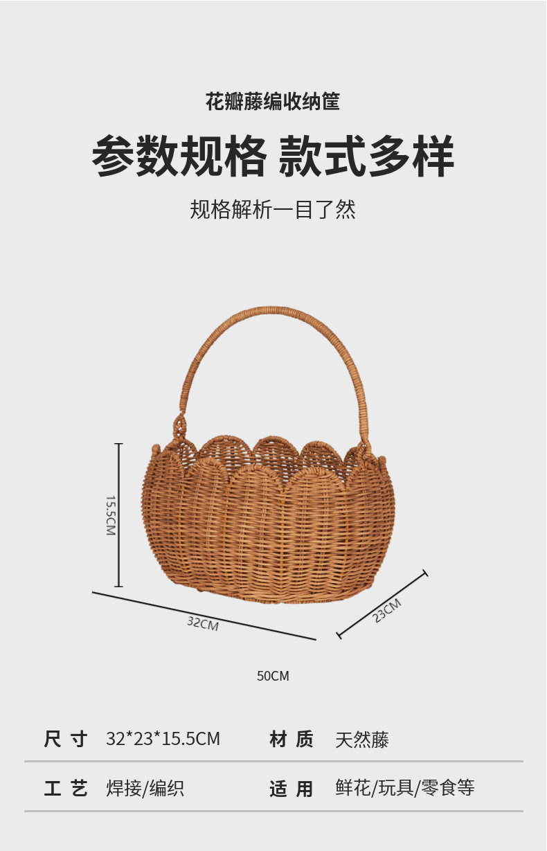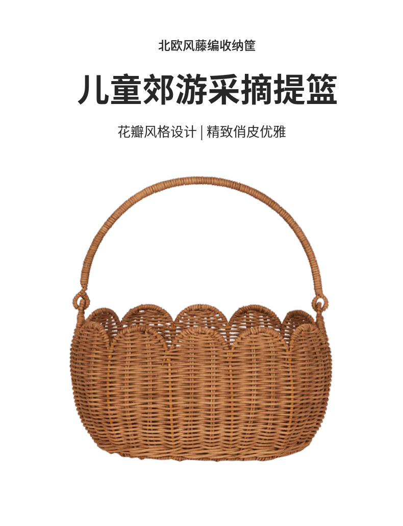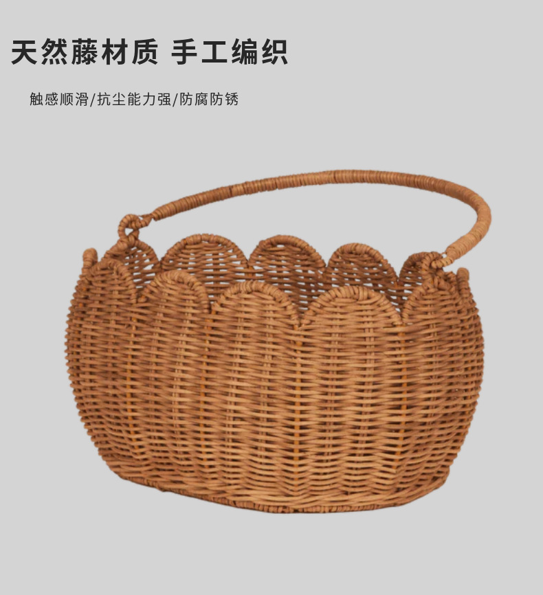Cestas de almacenamiento en forma de flores de tulipanes nórdicos de caña, cestas de picnic para niños, cestas de flores tejidas a mano