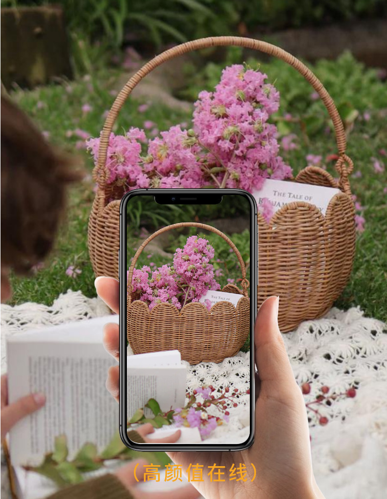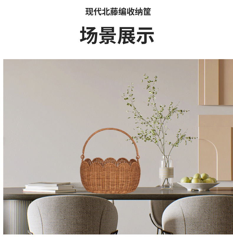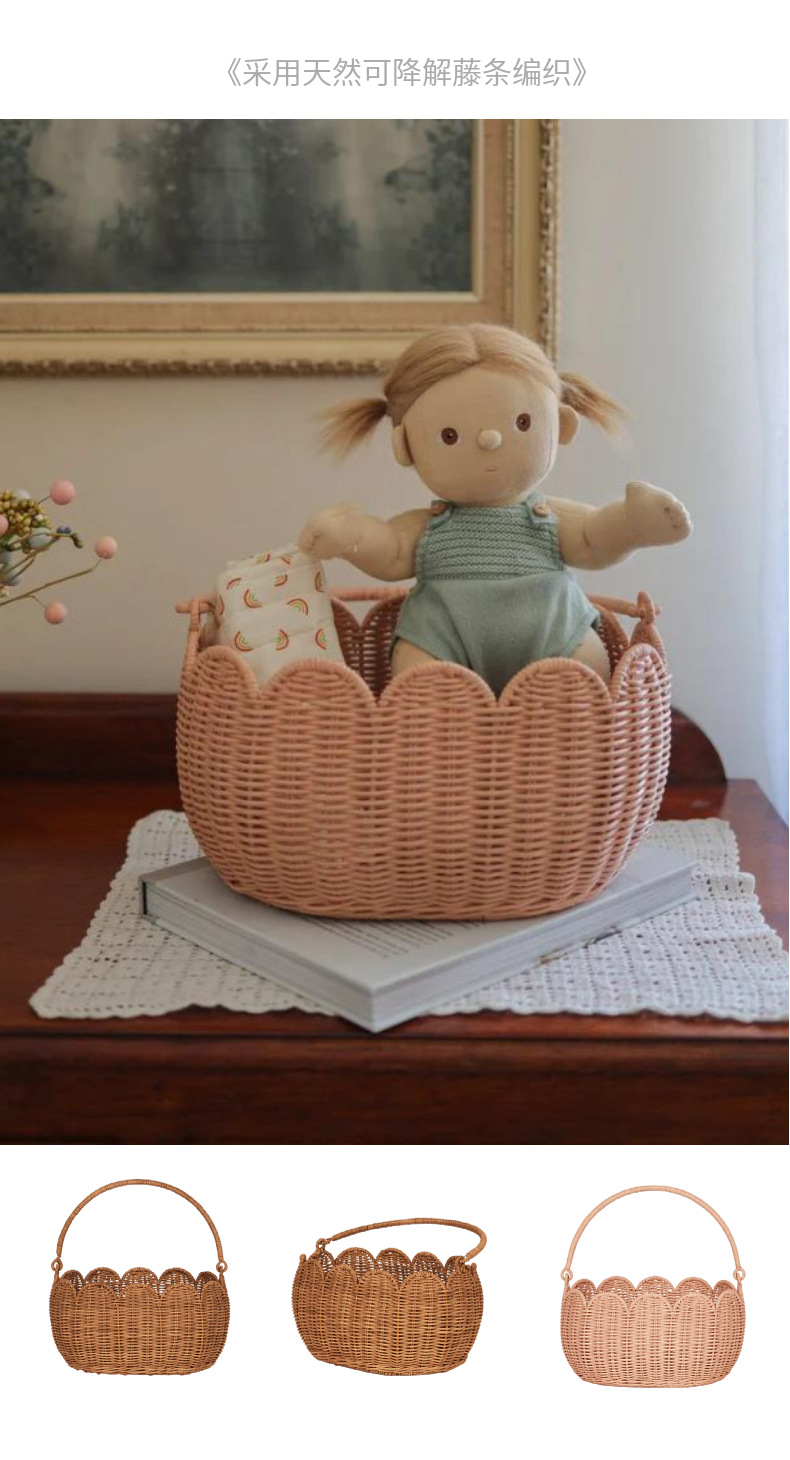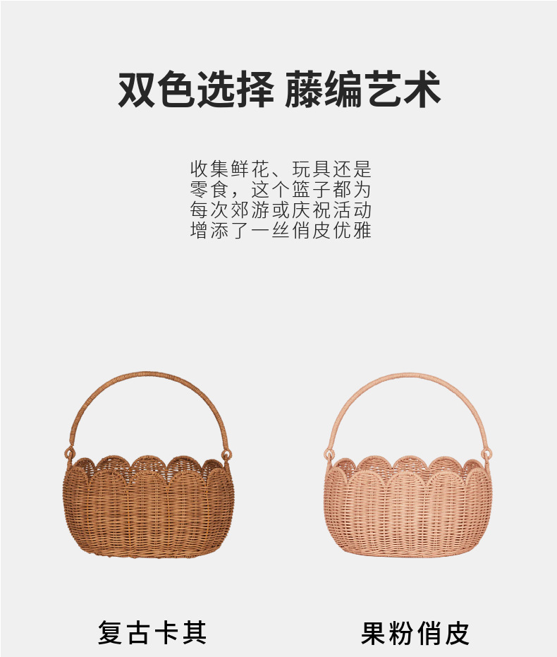 Cestas de almacenamiento en forma de flores de tulipanes nórdicos de caña, cestas de picnic para niños, cestas de flores tejidas a mano