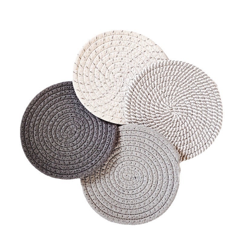 Amazon hilo de algodón tejido a mano posavasos de aislamiento térmico a prueba de escaldaduras