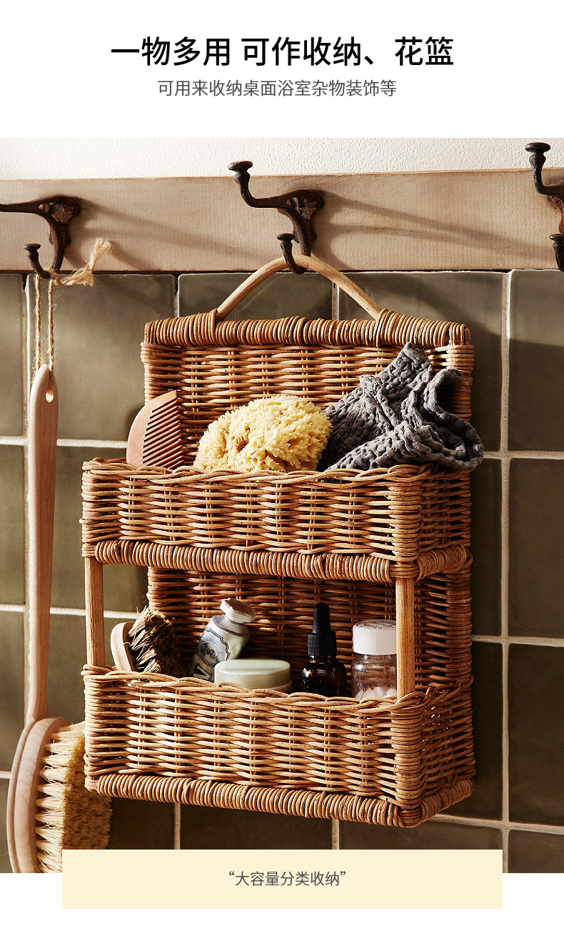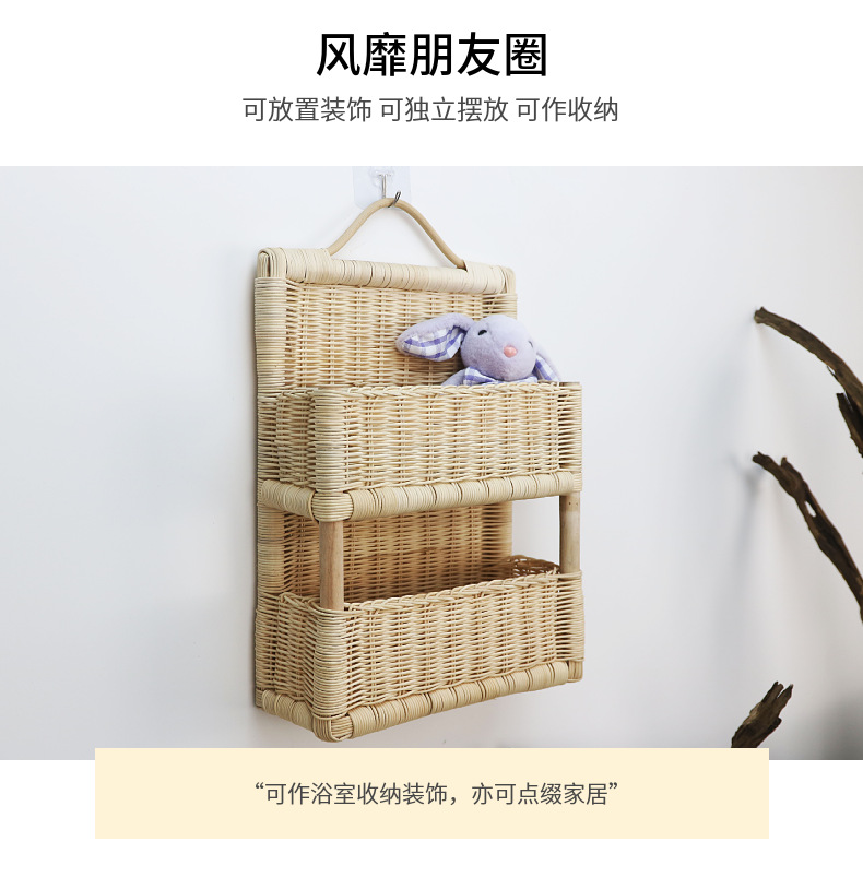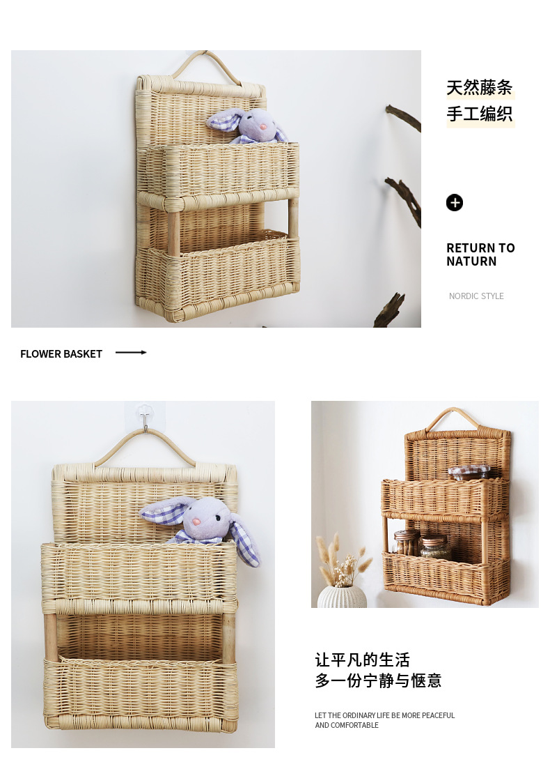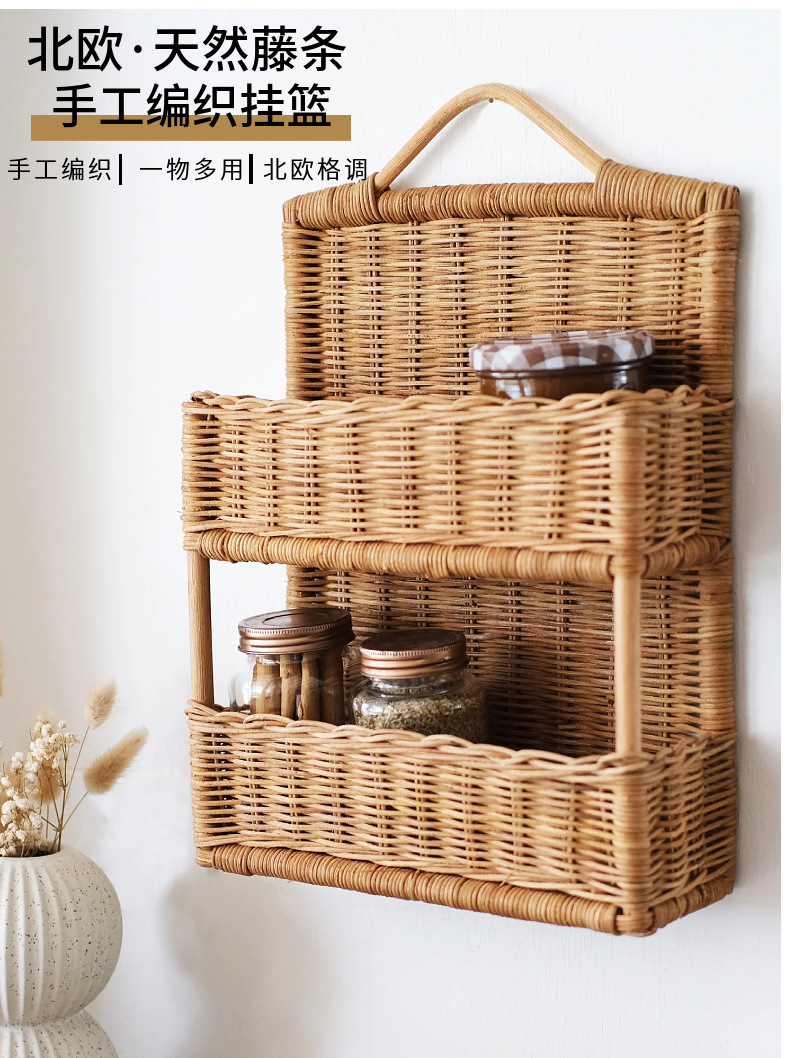 Cesta colgante de pared de ratán de estilo nórdico B & B cesta de almacenamiento decorativa caja de almacenamiento tejida a mano madera maciza cesta de almacenamiento de doble capa