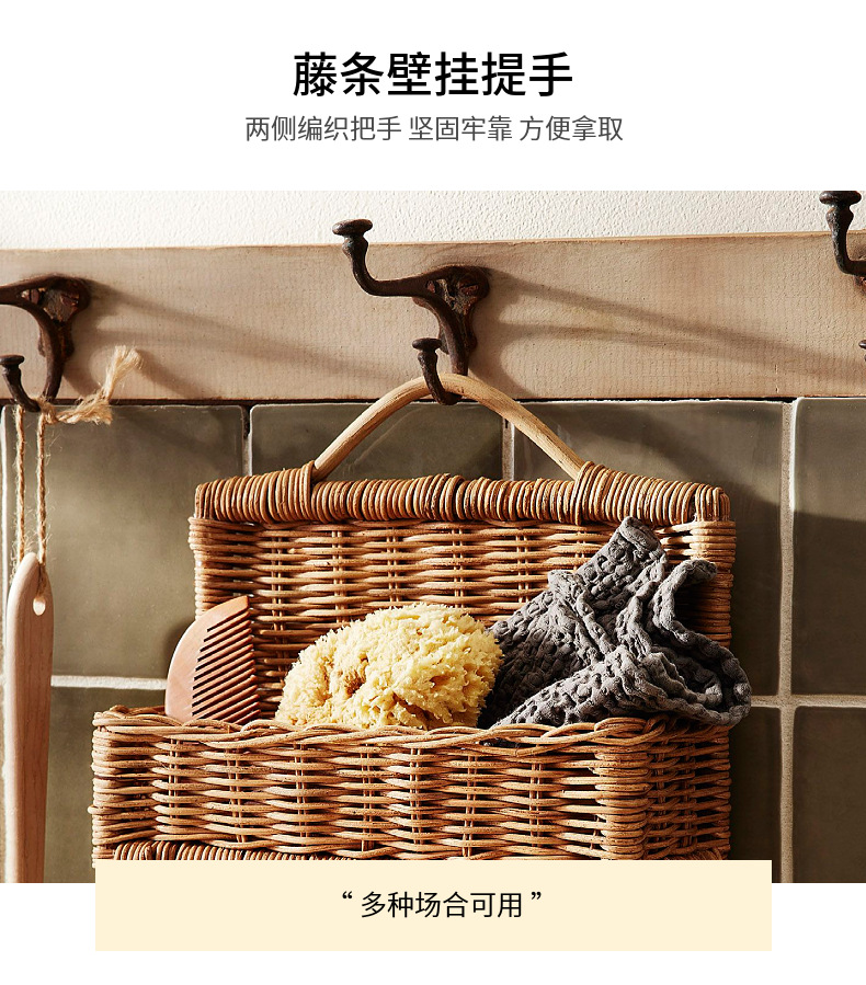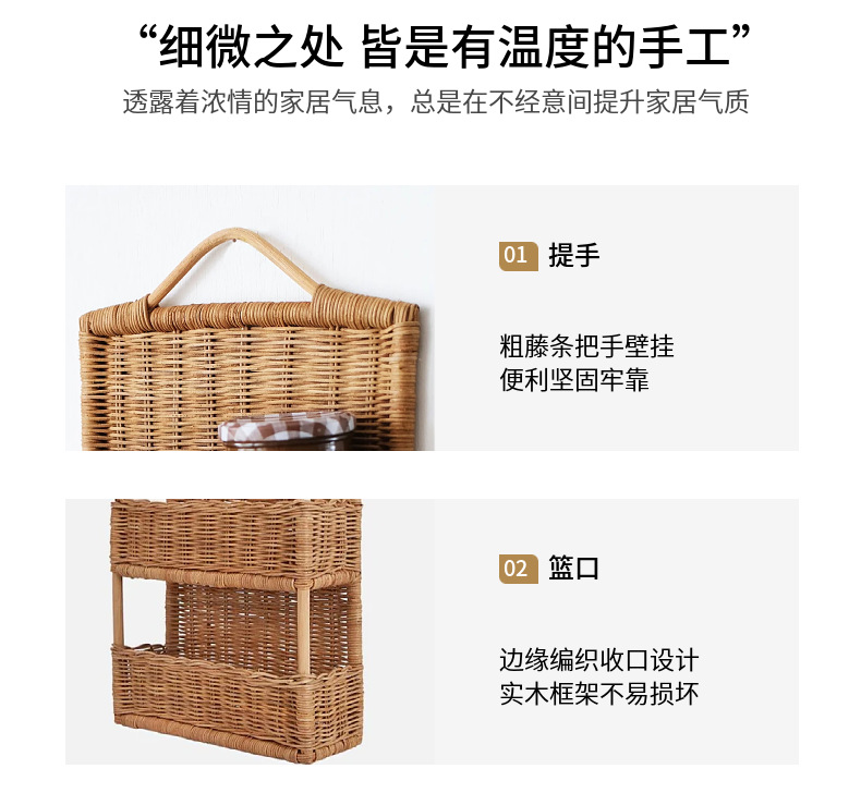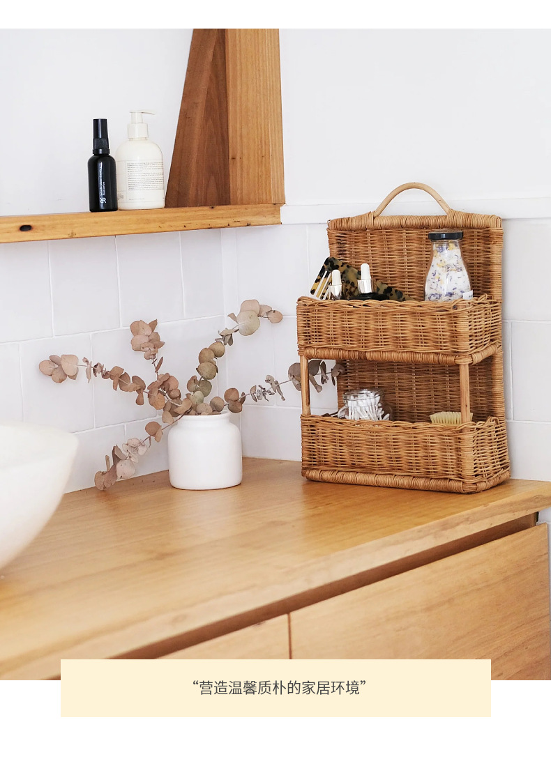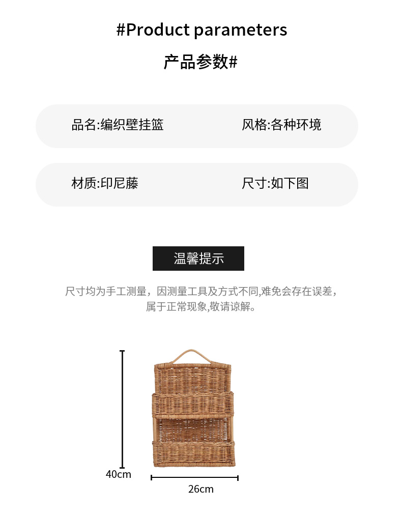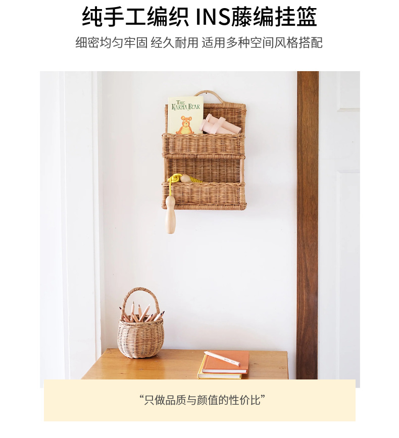 Cesta colgante de pared de ratán de estilo nórdico B & B cesta de almacenamiento decorativa caja de almacenamiento tejida a mano madera maciza cesta de almacenamiento de doble capa