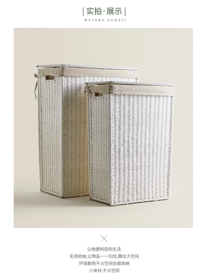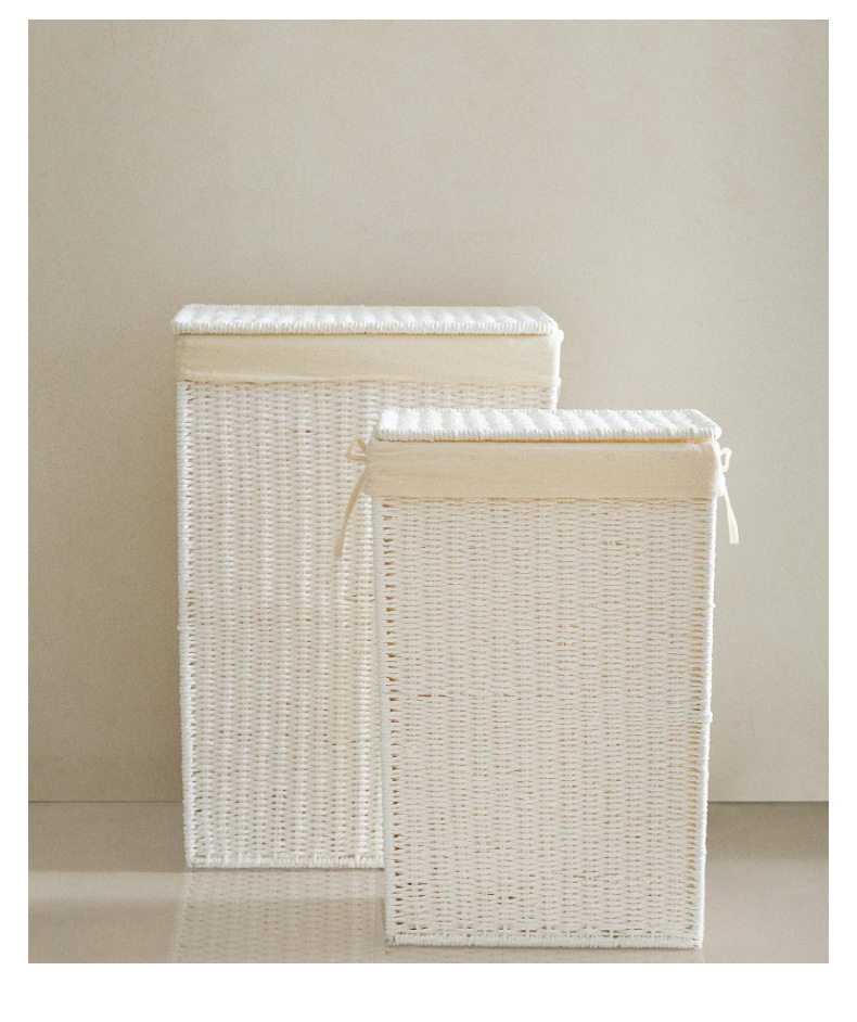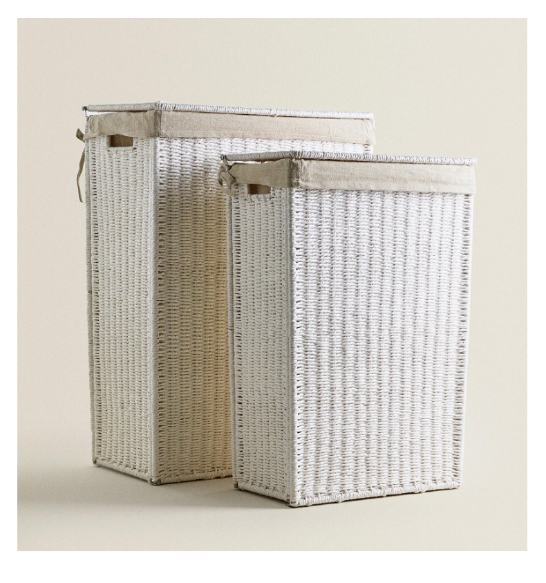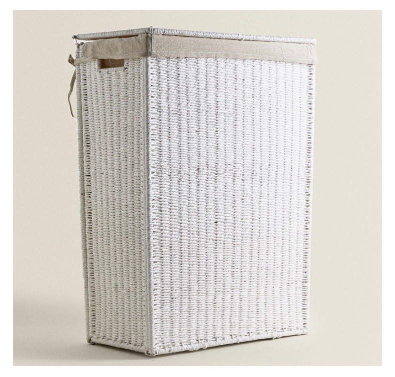 Amazon con cubierta cesto de lavandería plegable cuerdas de papel trenzando cesto de ropa sucia gran capacidad de ropa trenzada a mano cesto de almacenamiento