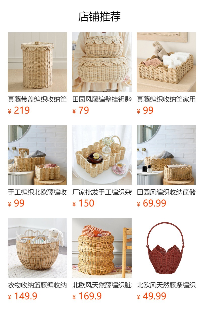 Cestas de almacenamiento de caña transfronterizas juguetes cestas de almacenamiento de artículos diversos cestas de almacenamiento de vacaciones europeas y estadounidenses cestas de almacenamiento de decoración