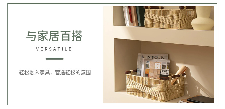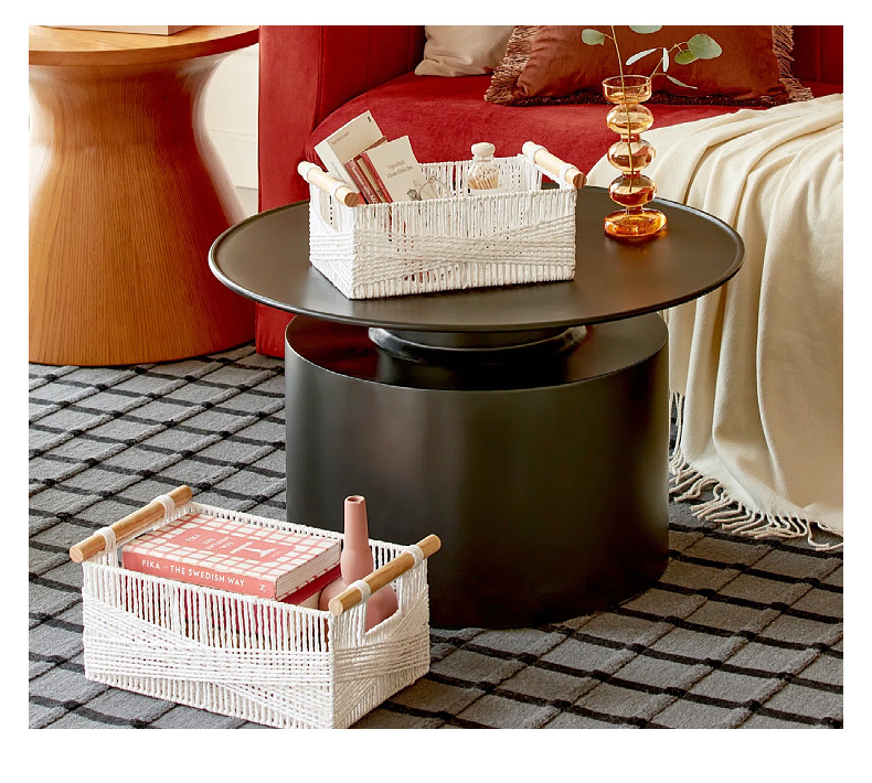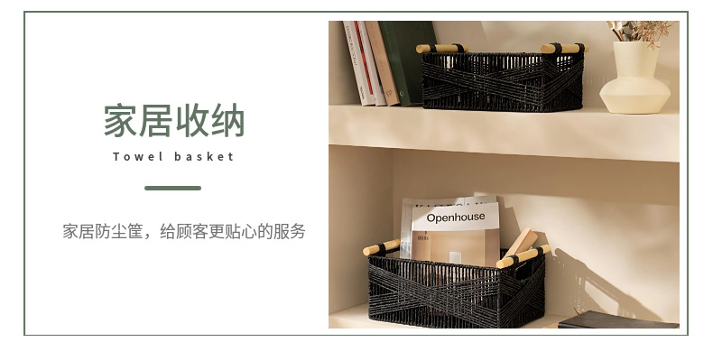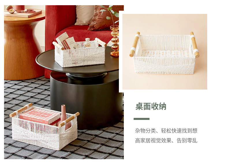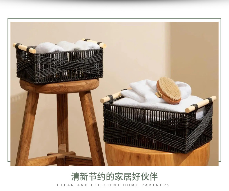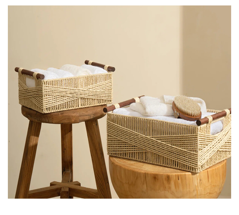 Cesta de almacenamiento de cuerda de papel ecológica de caña sala de estar de baño de escritorio de madera maciza mano americana cesta de tejido a mano