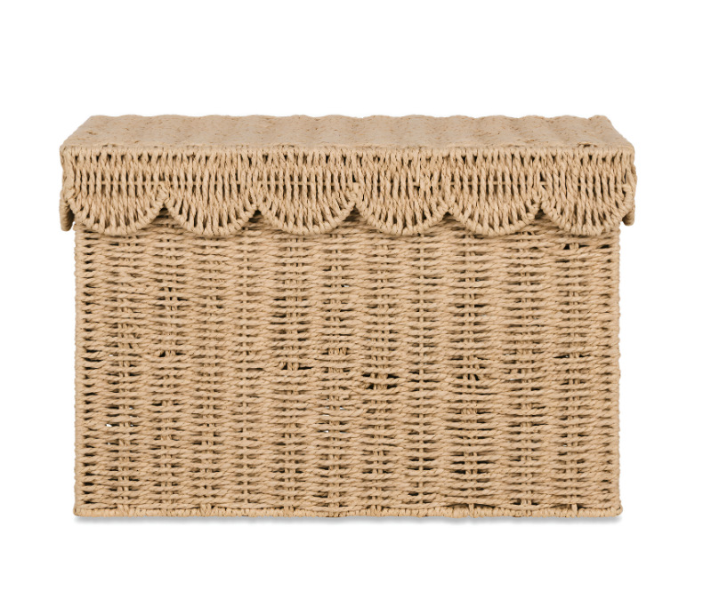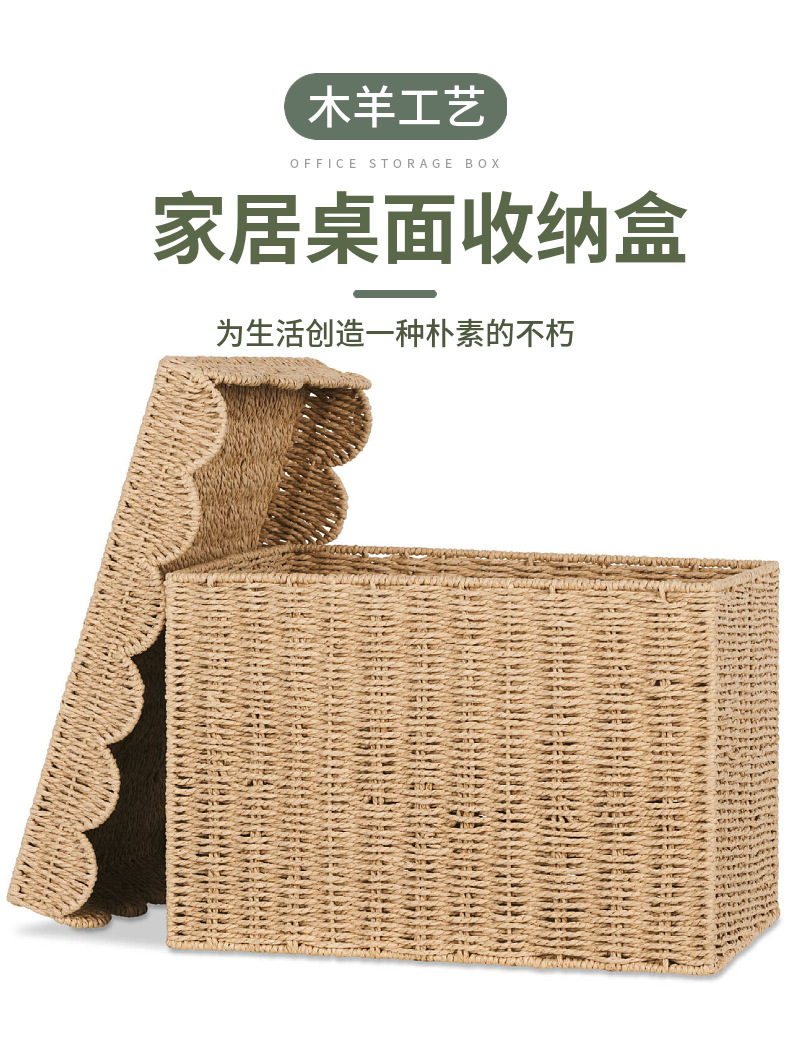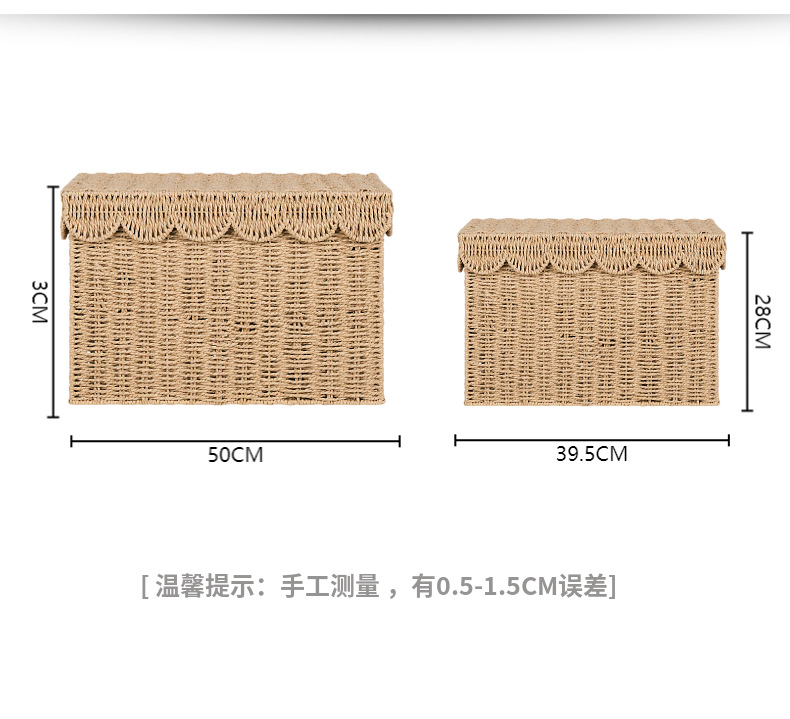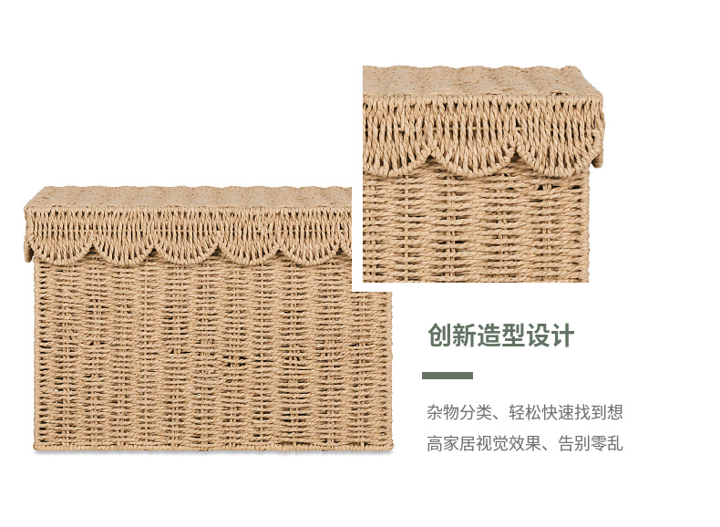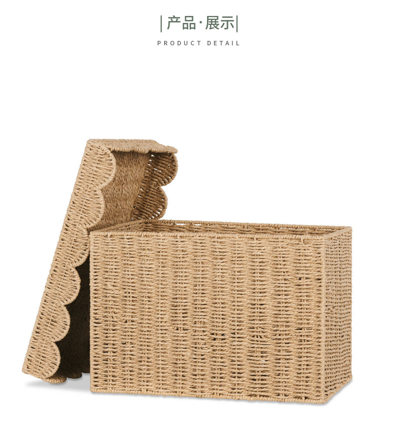 Cesta de almacenamiento de ropa tejida de cuerda de papel, cubierta ondulada, caja de almacenamiento, caja de juguetes, sala de estar, cesta de almacenamiento pastoral