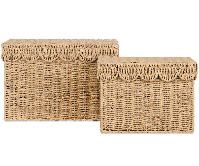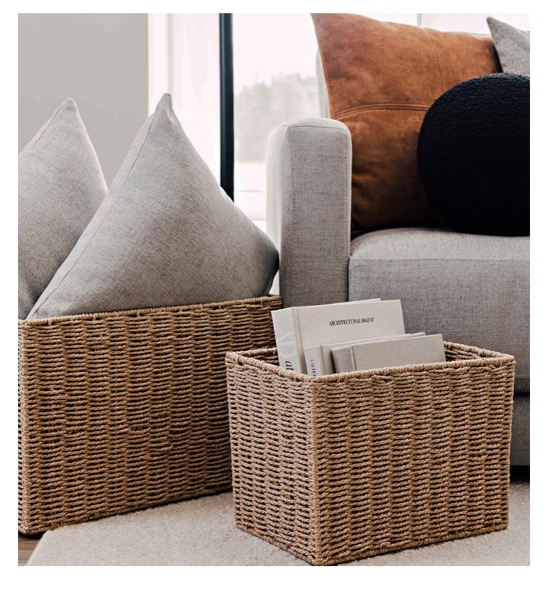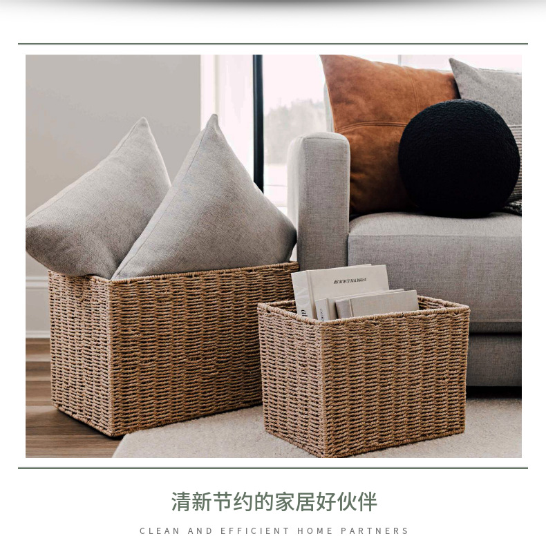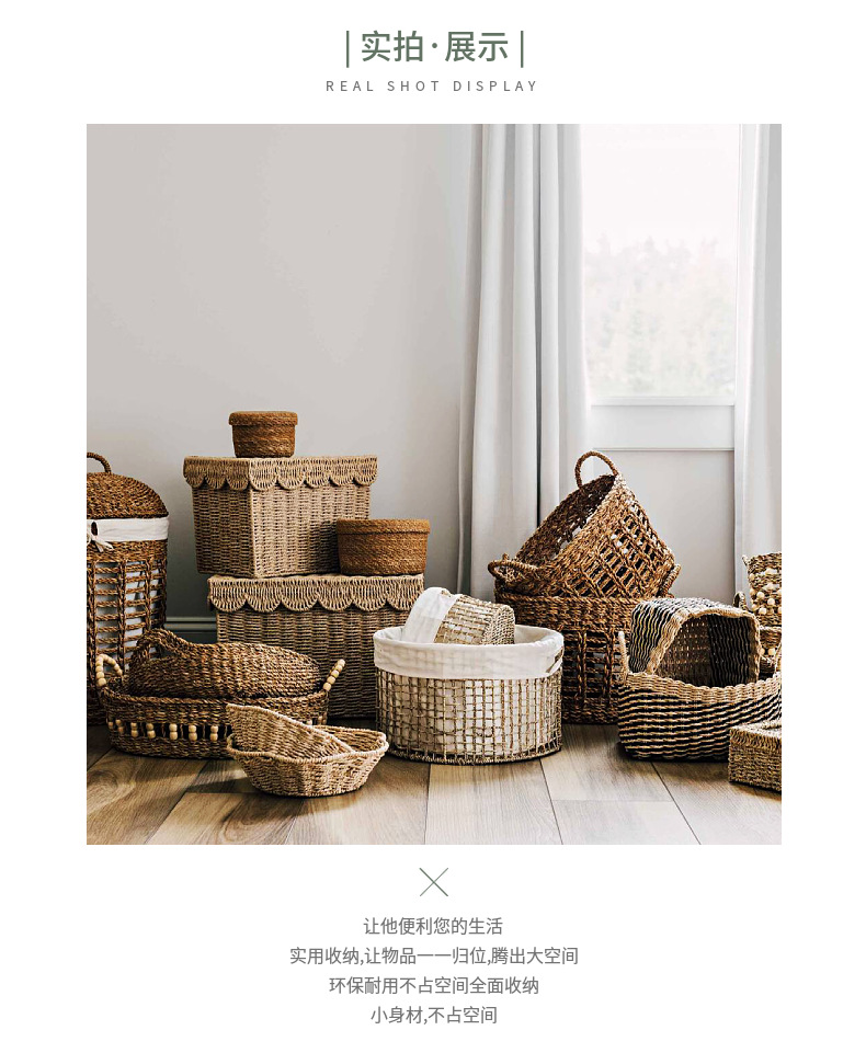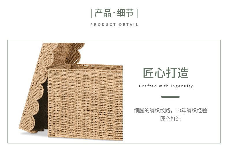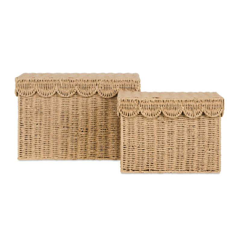 Cesta de almacenamiento de ropa tejida de cuerda de papel, cubierta ondulada, caja de almacenamiento, caja de juguetes, sala de estar, cesta de almacenamiento pastoral