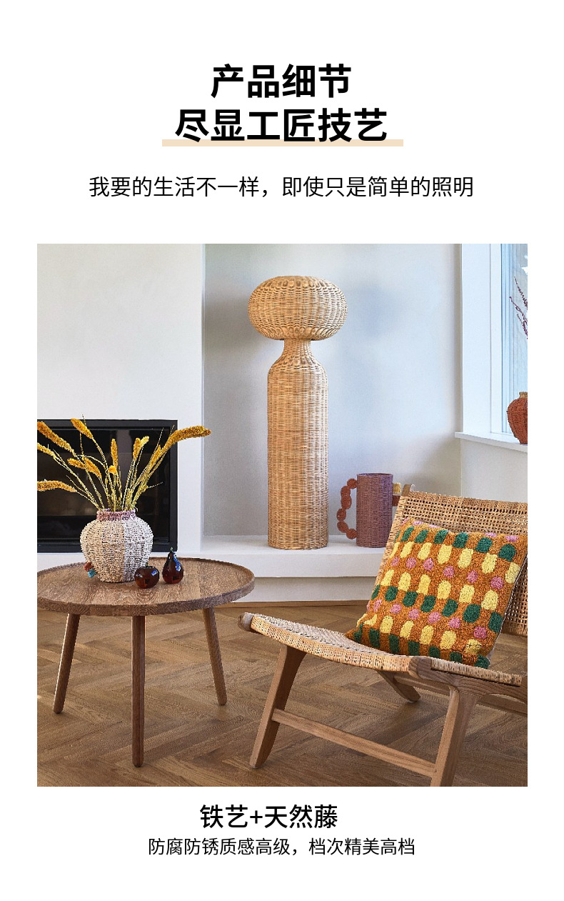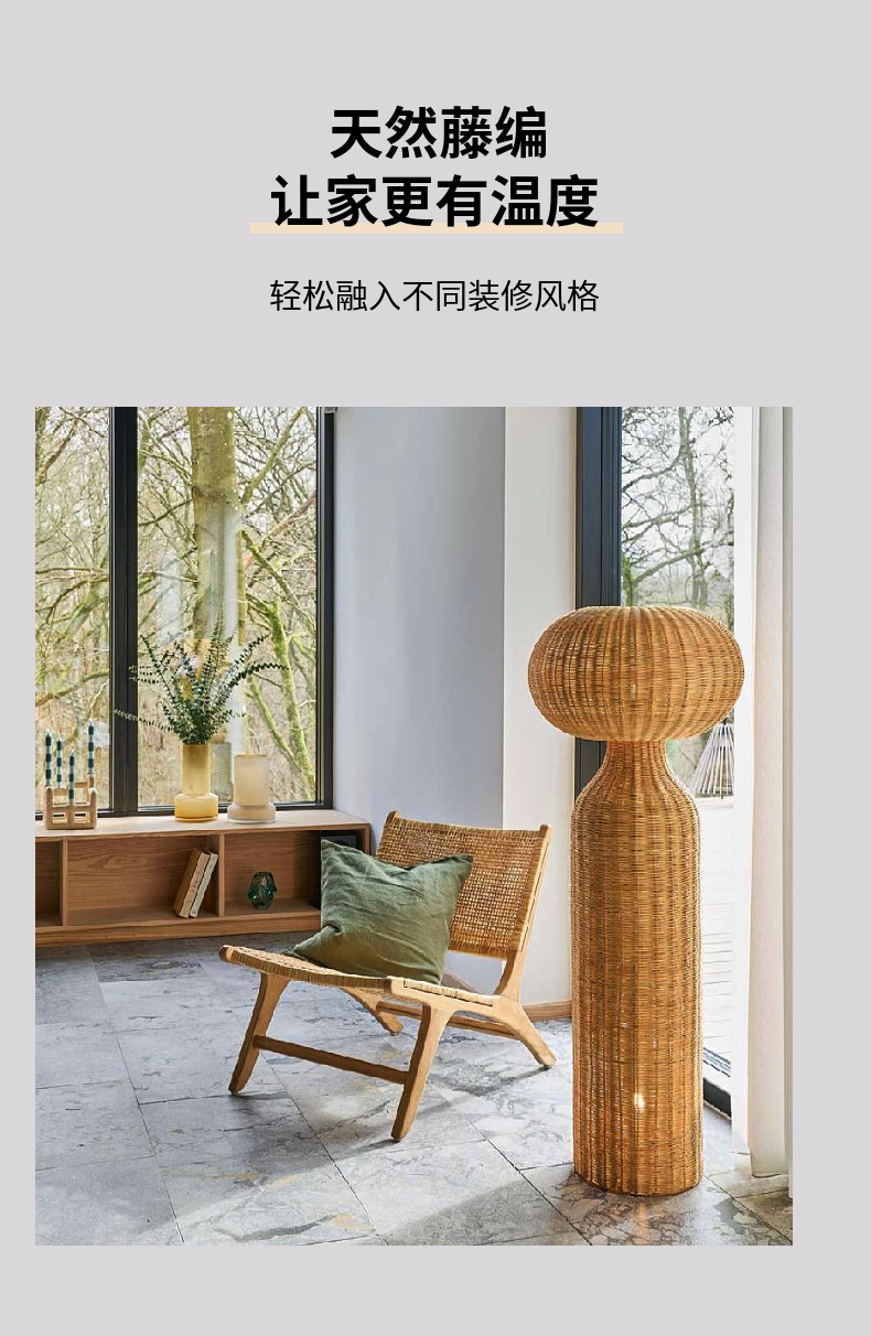 Lámpara de pie estilo liji ratán tejido salón dormitorio estudio sala de té B & B ambiente retro lámparas de arte decorativo
