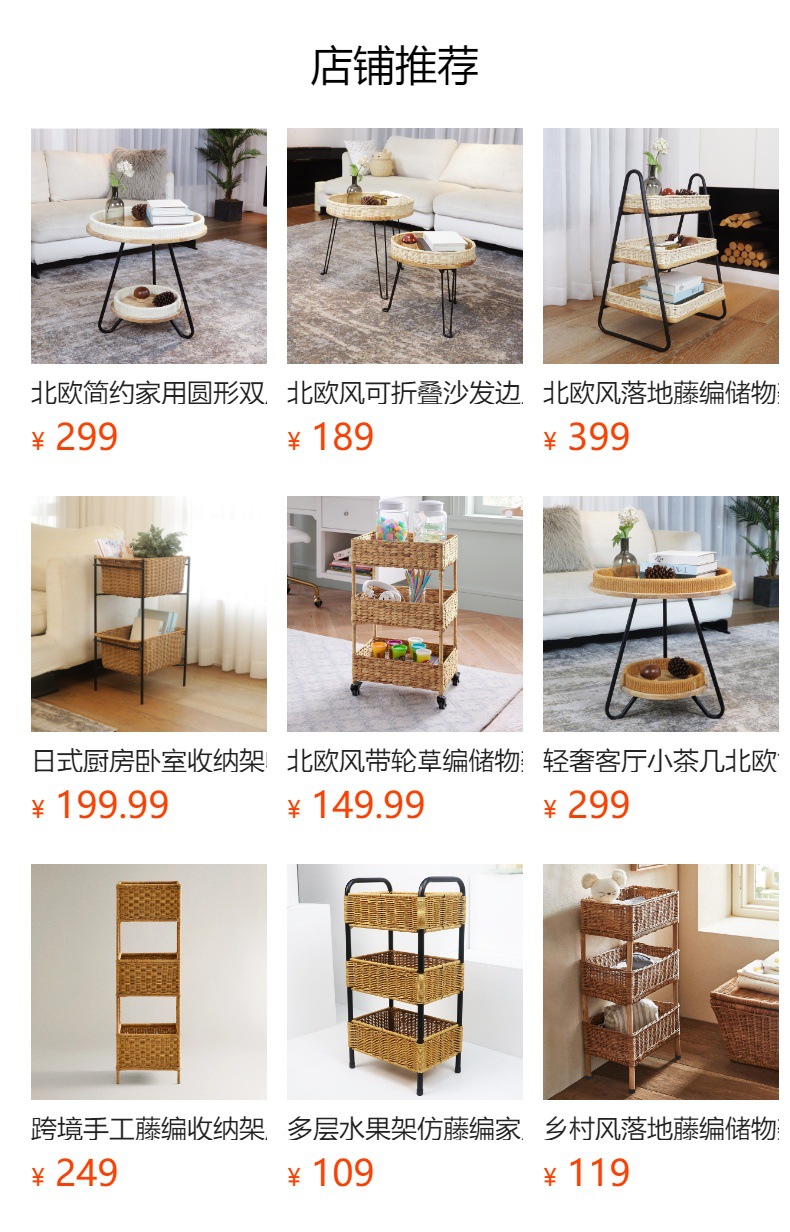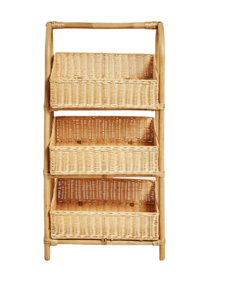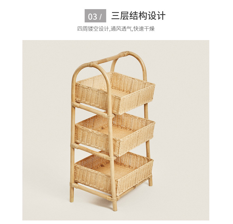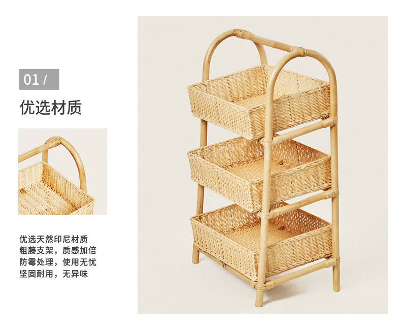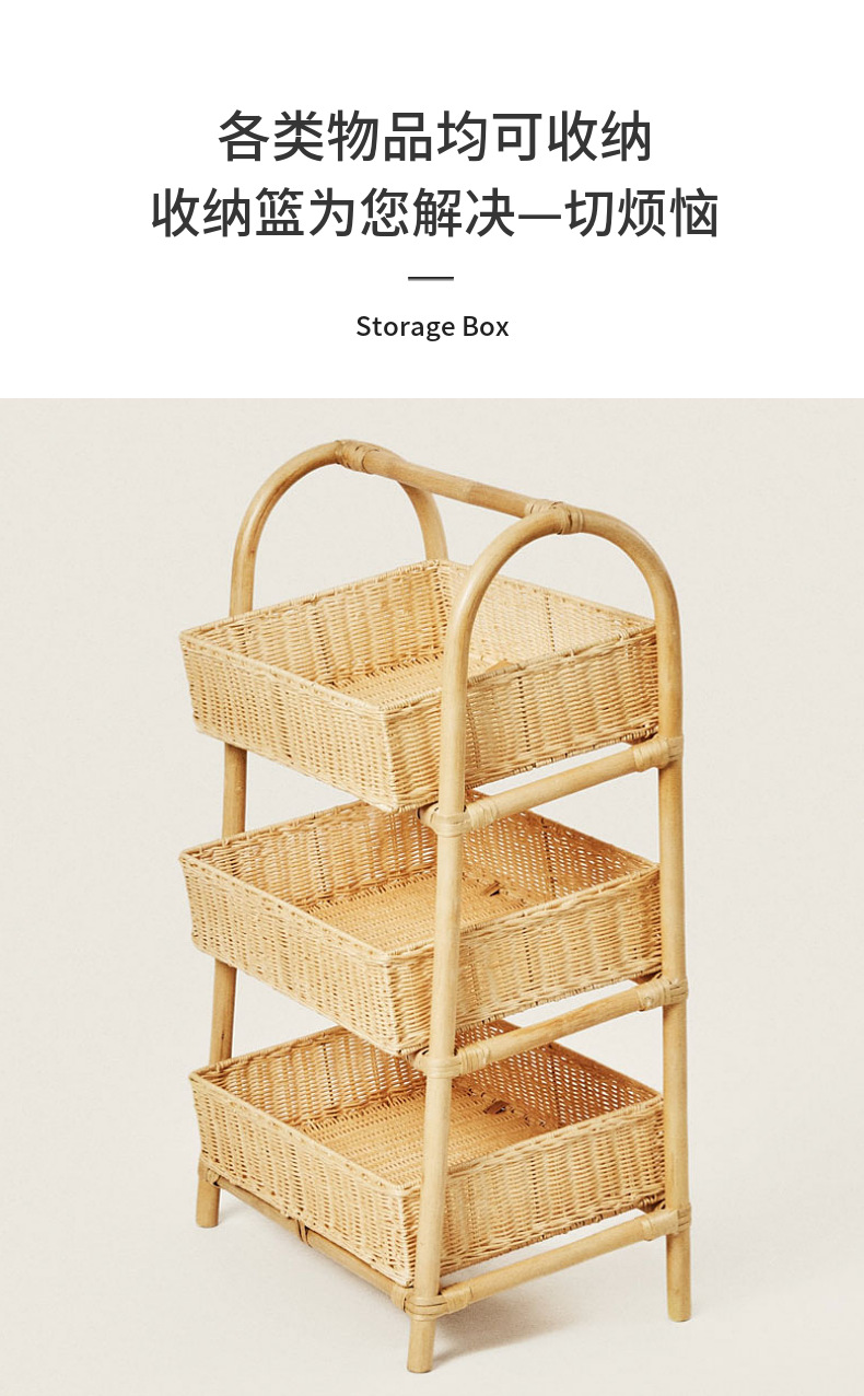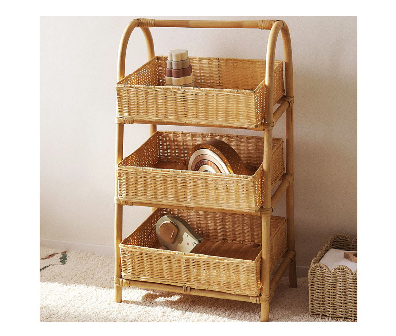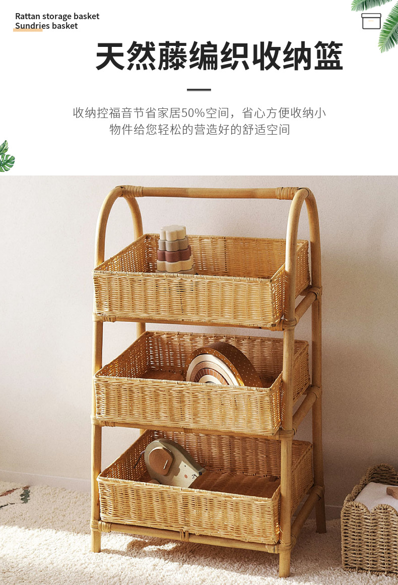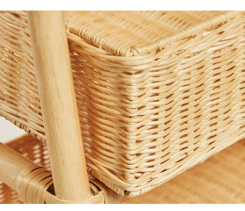 Estante de almacenamiento de ratán de piso de estilo nórdico B & B canasta de almacenamiento de control remoto de hotel canasta de almacenamiento de tres capas tejida a mano