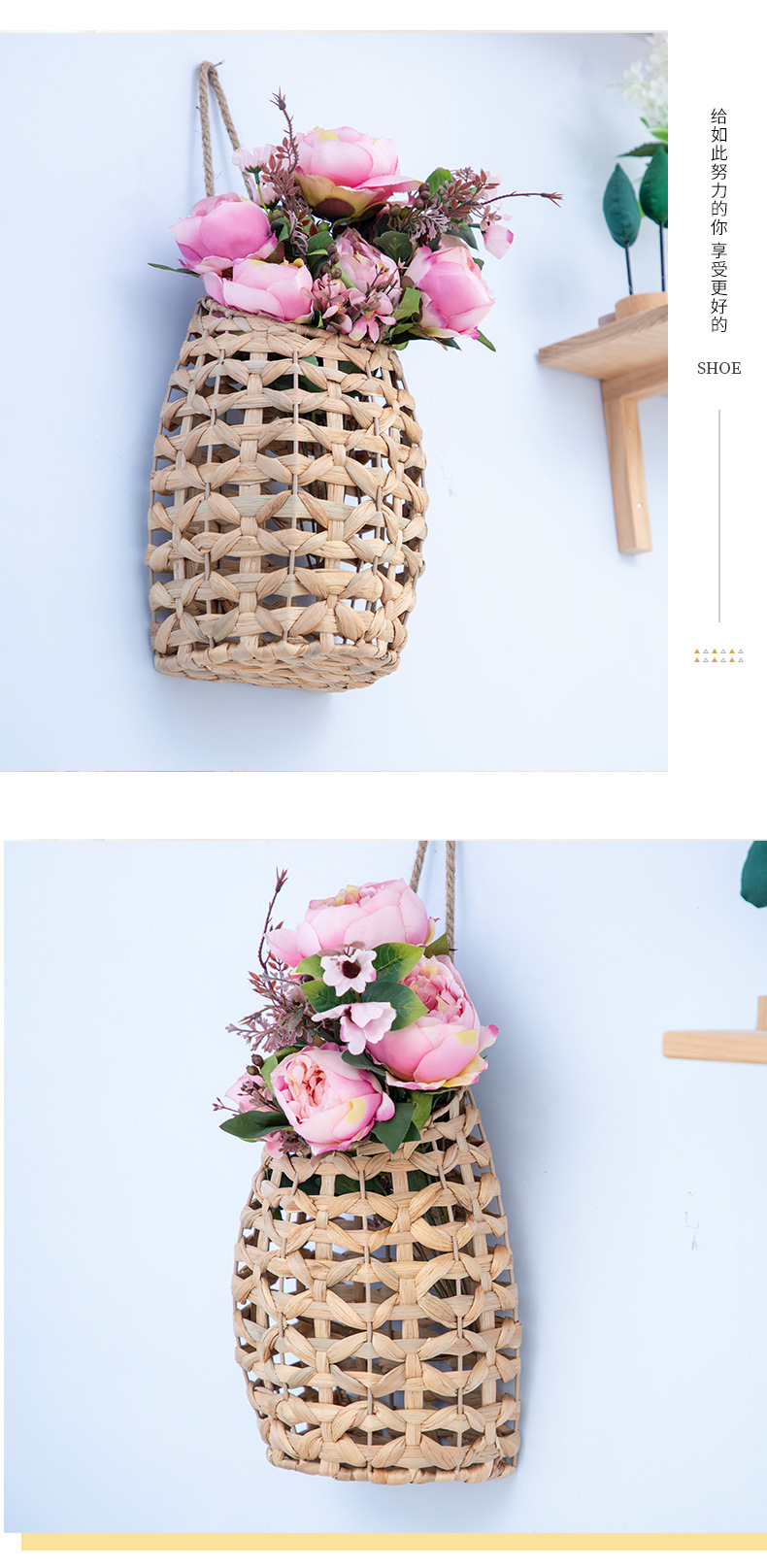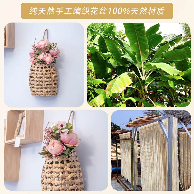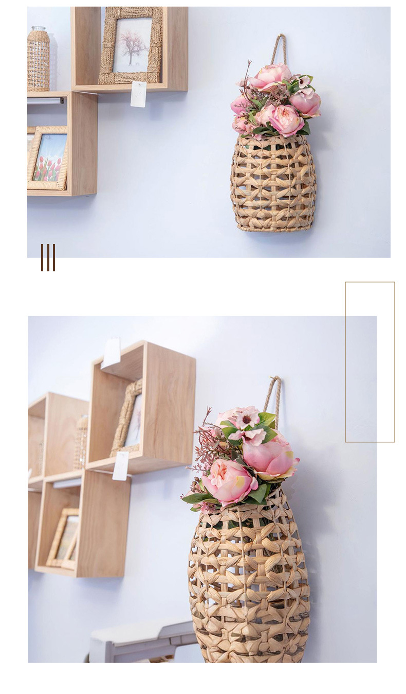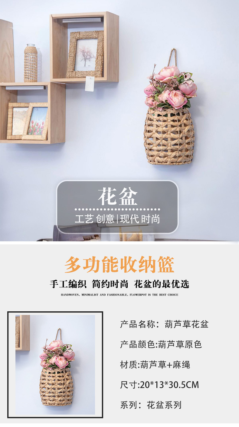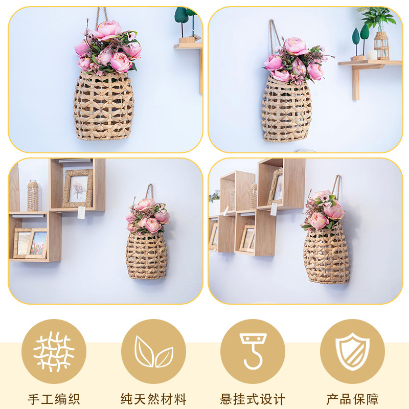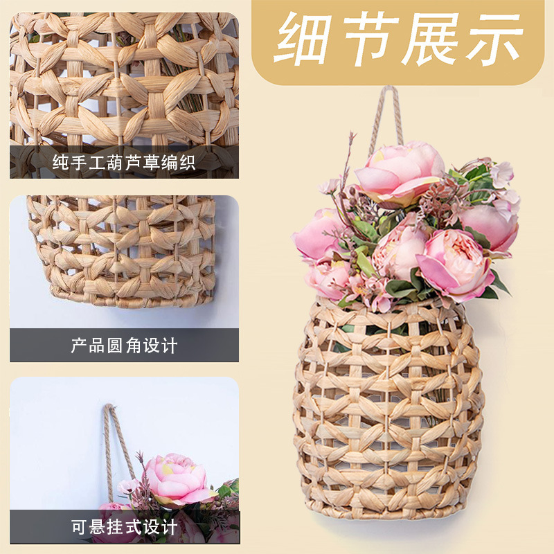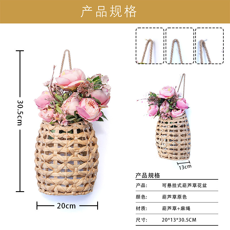 Cestas de flores portátiles tejidas a mano tejidas de paja pequeñas macetas colgadas de pared de caña tejidas cestas colgadas de calabaza de agua colgadas de hierba flor seca vasos