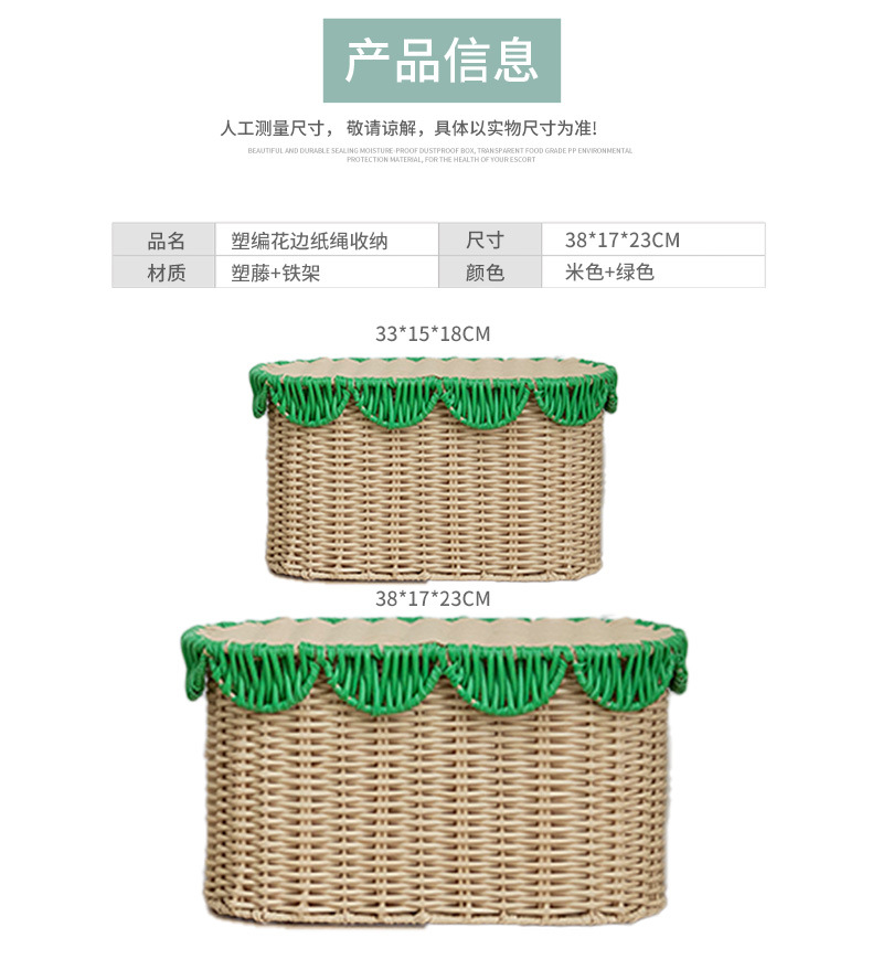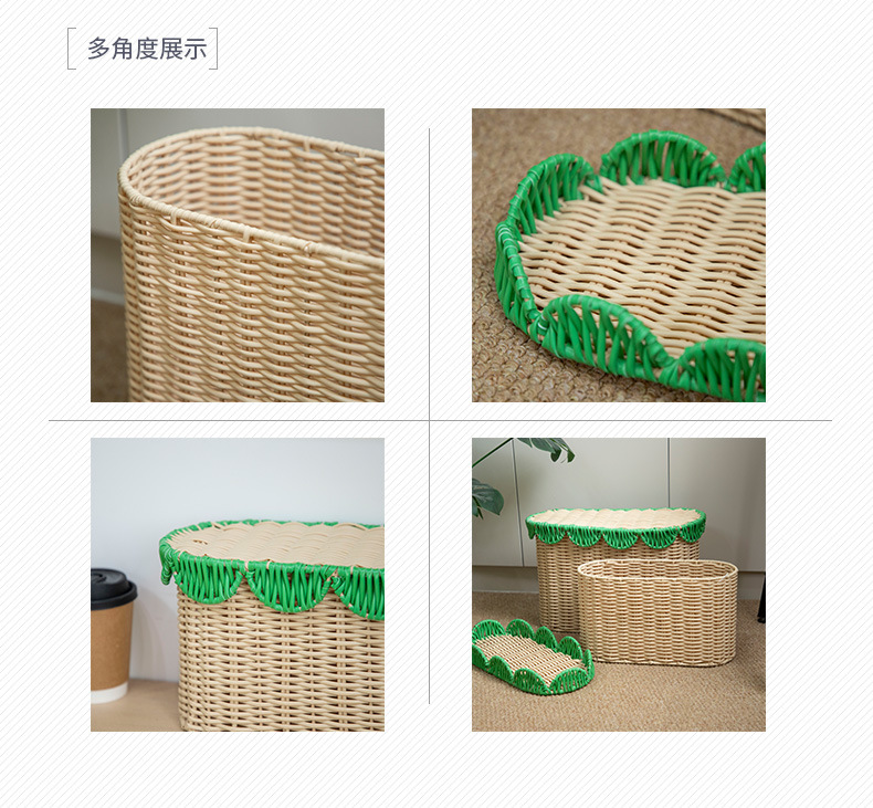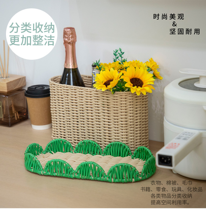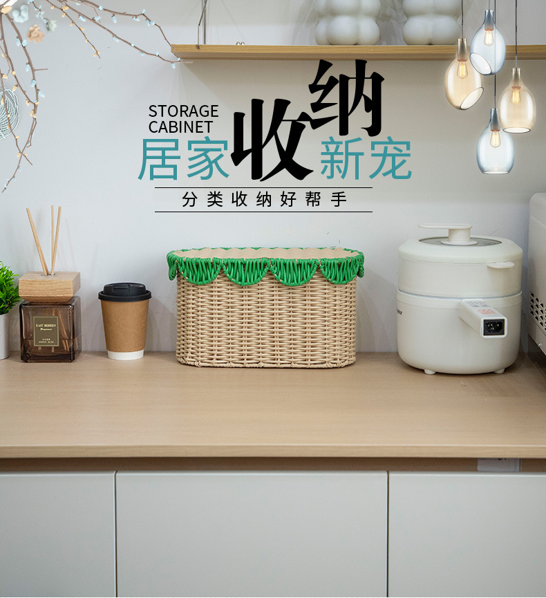 Amazon nuevo producto de caña verde canasta de encaje pequeño almacenamiento fresco almacenamiento de escritorio almacenamiento de gabinete de acabado