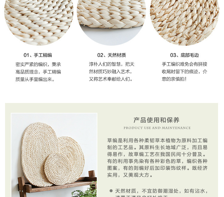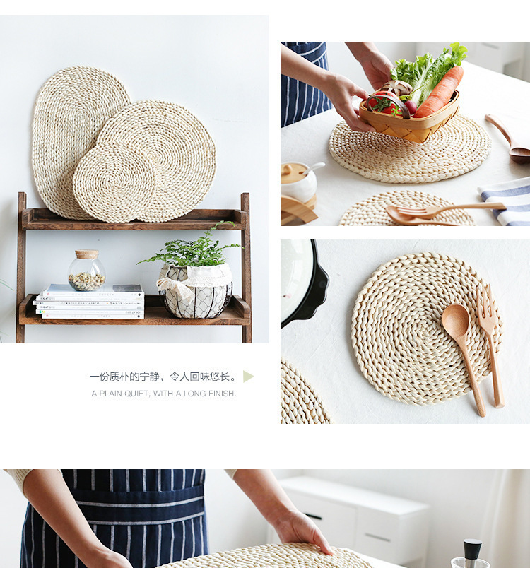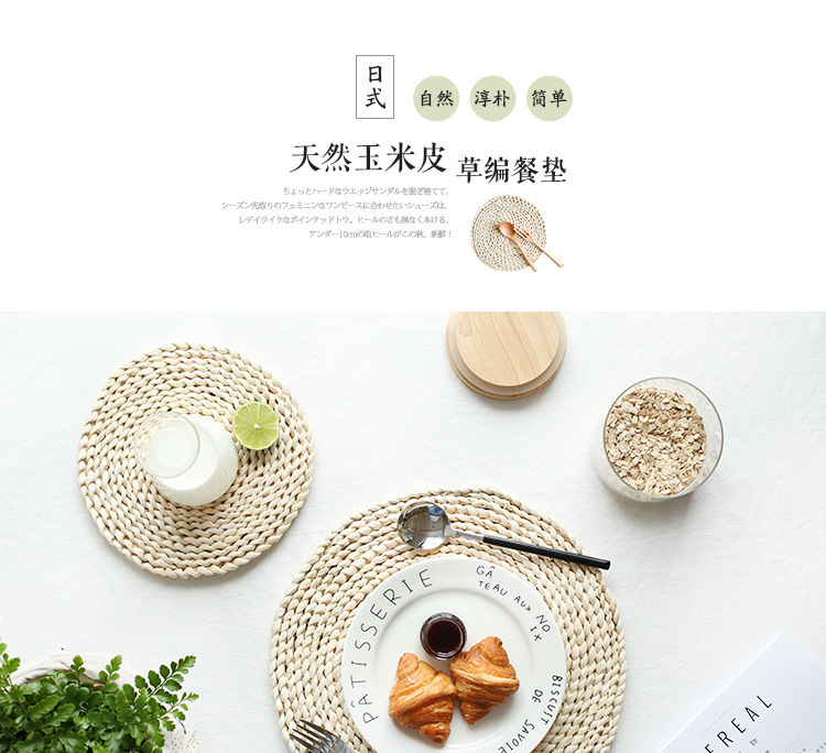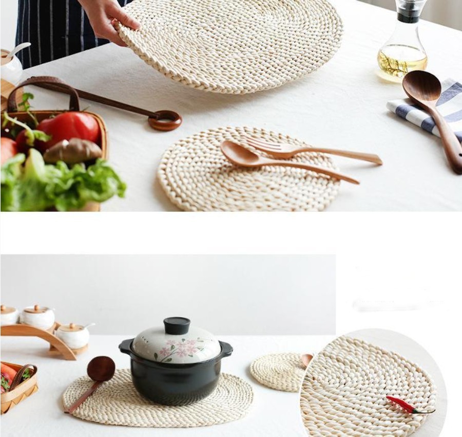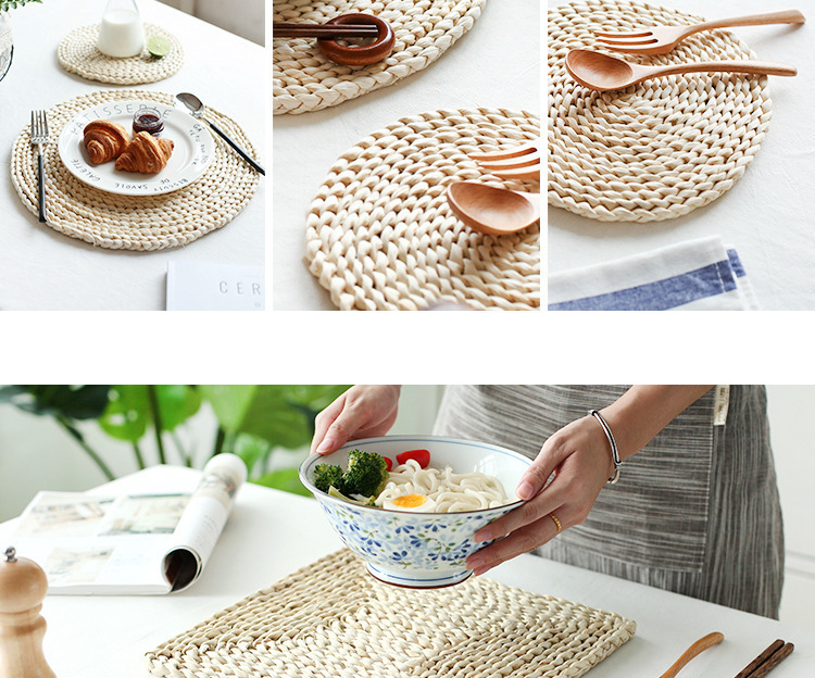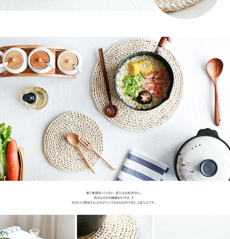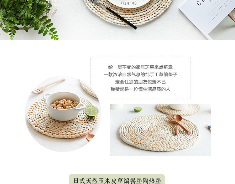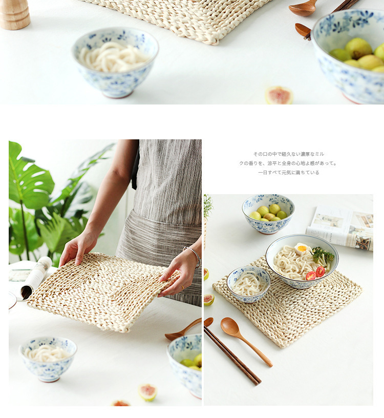 Maíz de maíz natural para el hogar japonés, paja hecha a mano y tapete de té con aislamiento térmico, tapete de mesa, tapete de cazuela resistente al calor, tapete de plato, mantel
