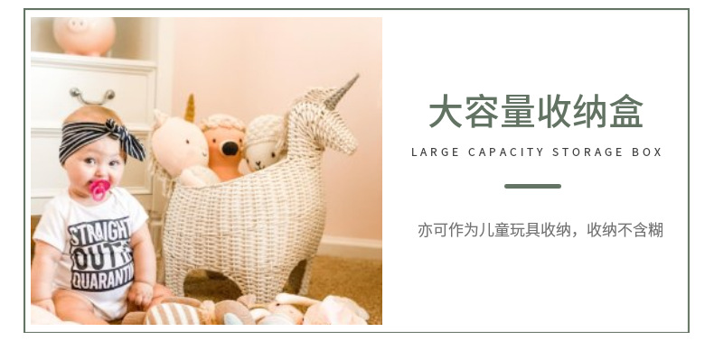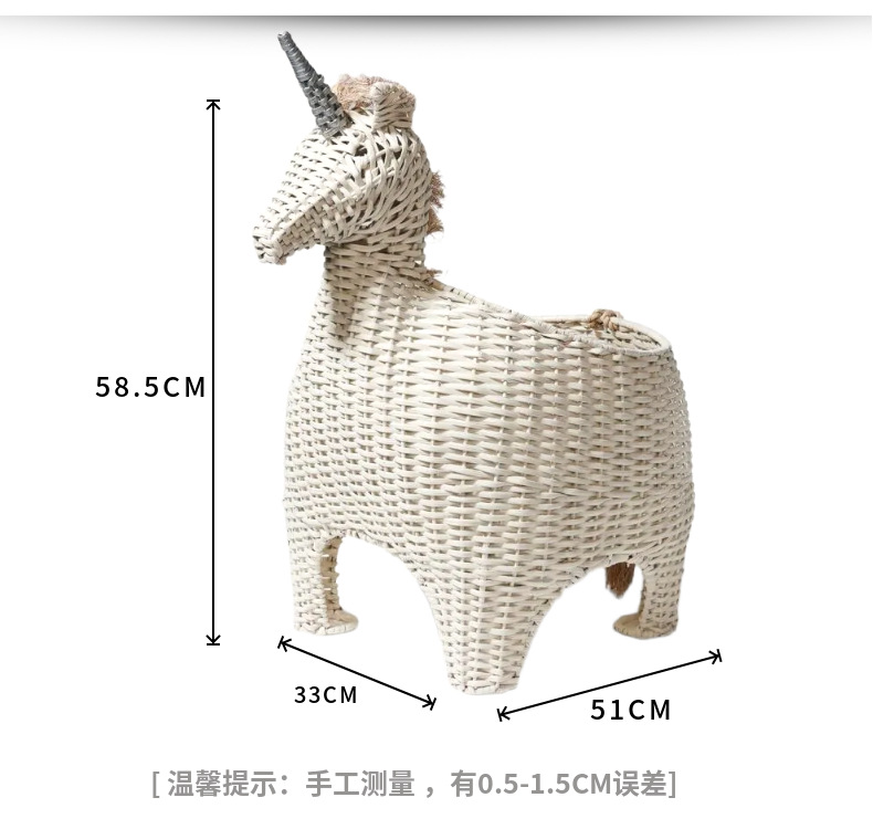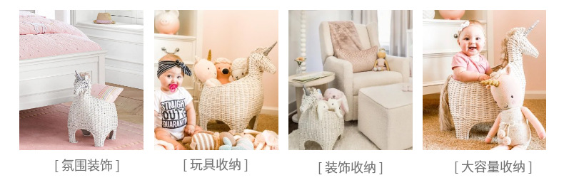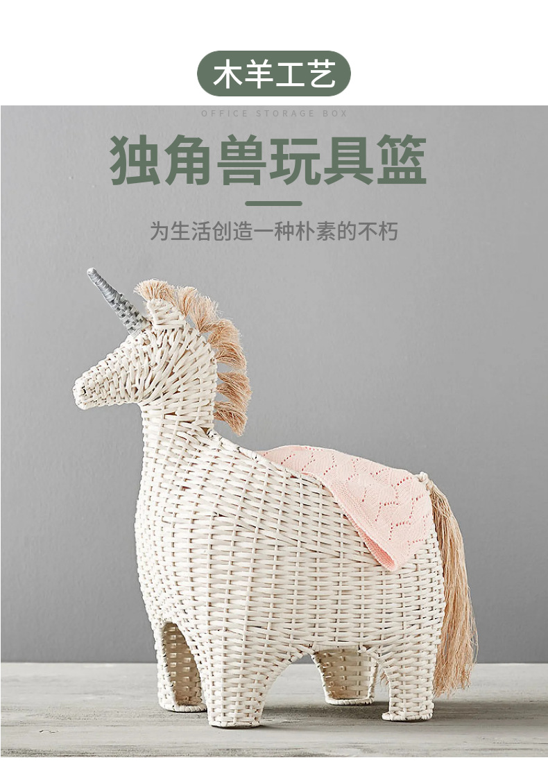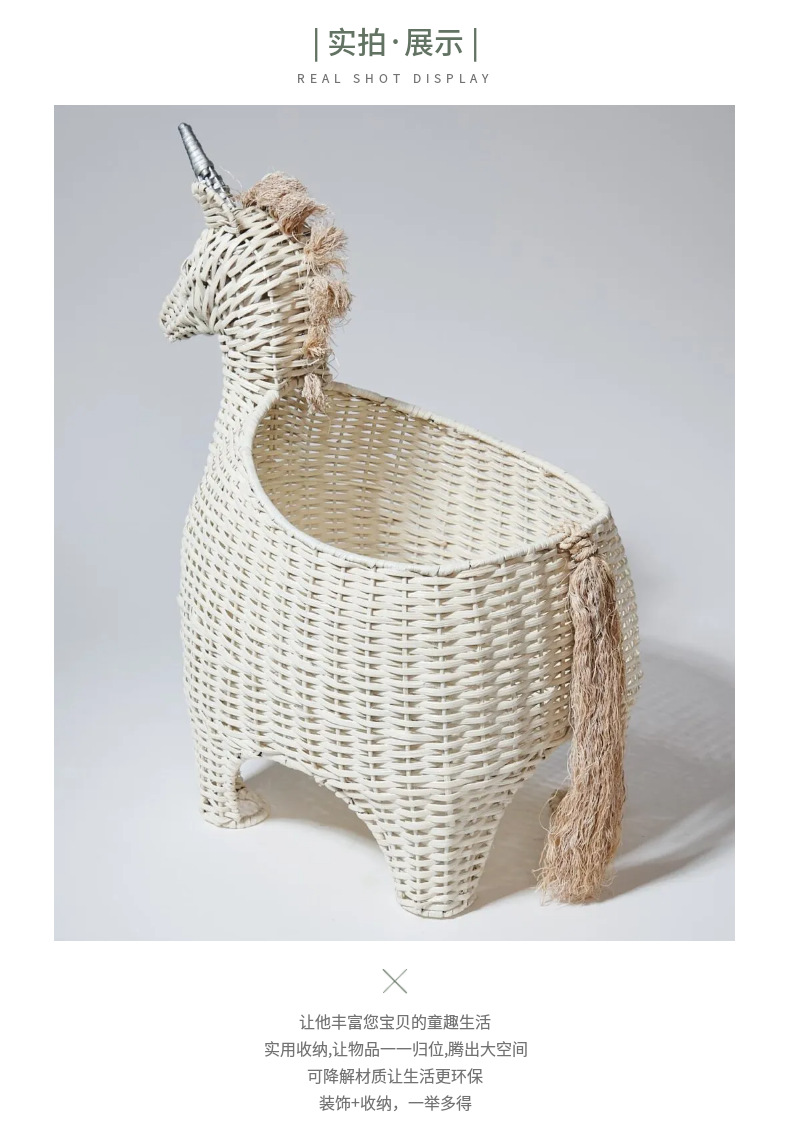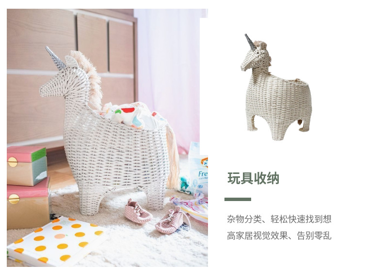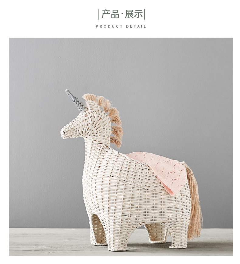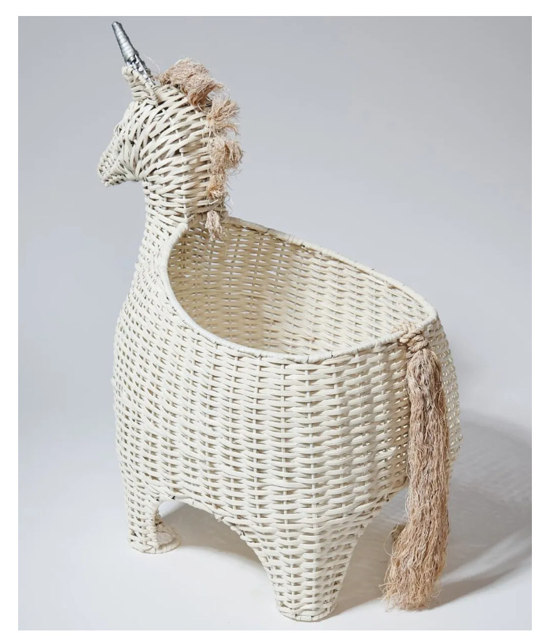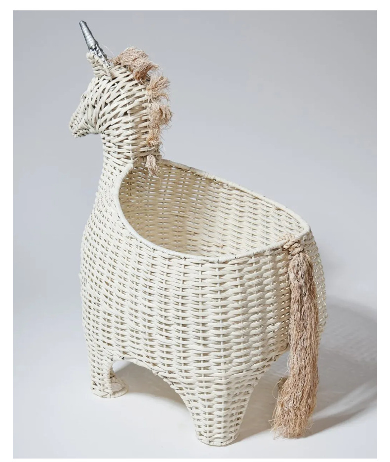 Creativo de vid tejido unicornio cebra imitación animal juguete canasta muebles creativos decoración de la habitación de los niños