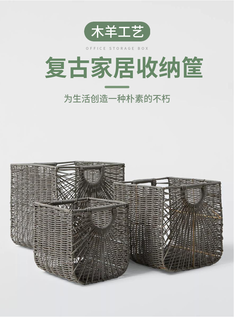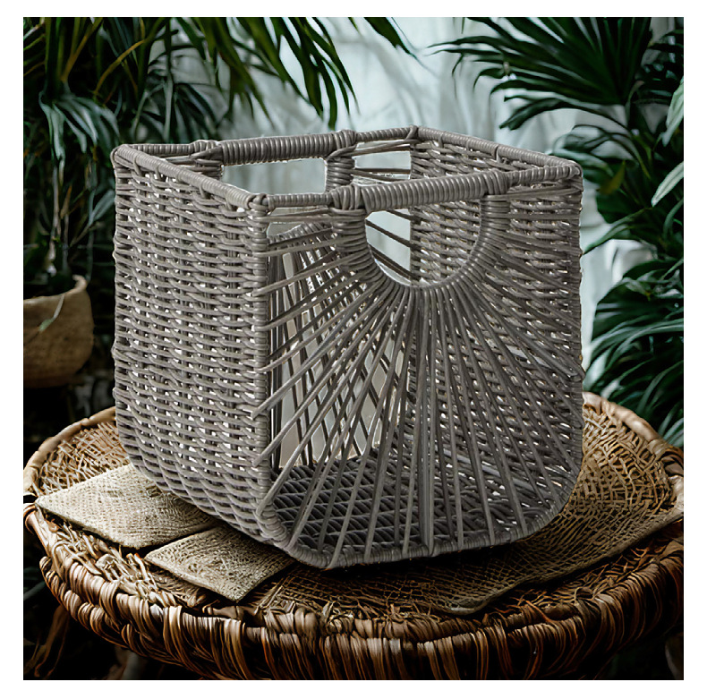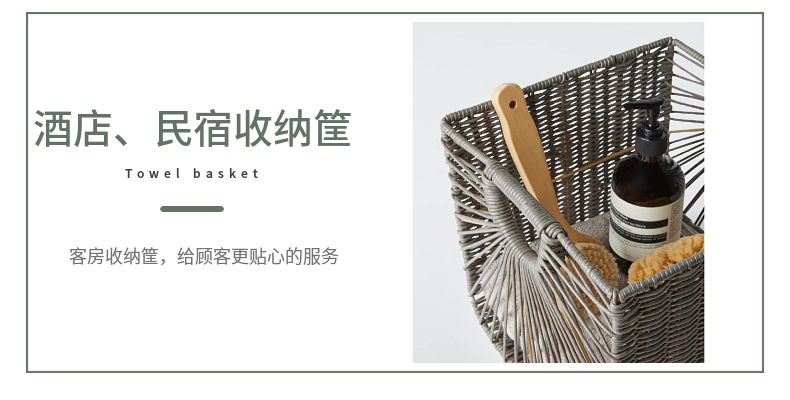 Cesta de almacenamiento tejida a mano de imitación de caña de red de doble mano, cesta de almacenamiento de cajón de gabinete de rejilla de hotel