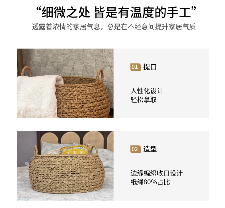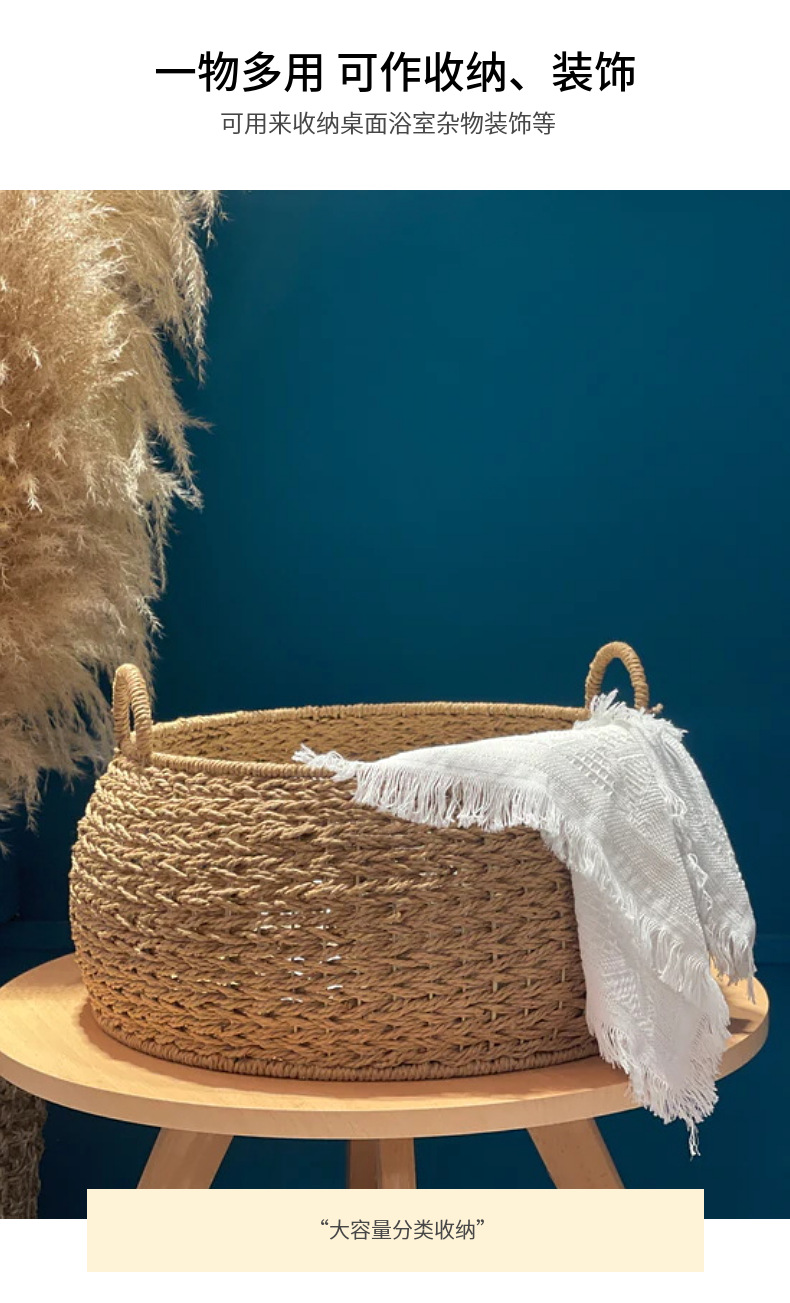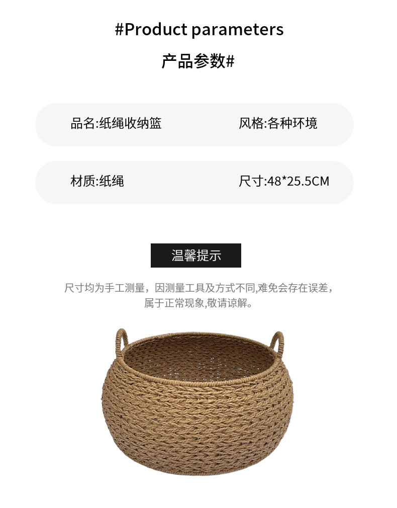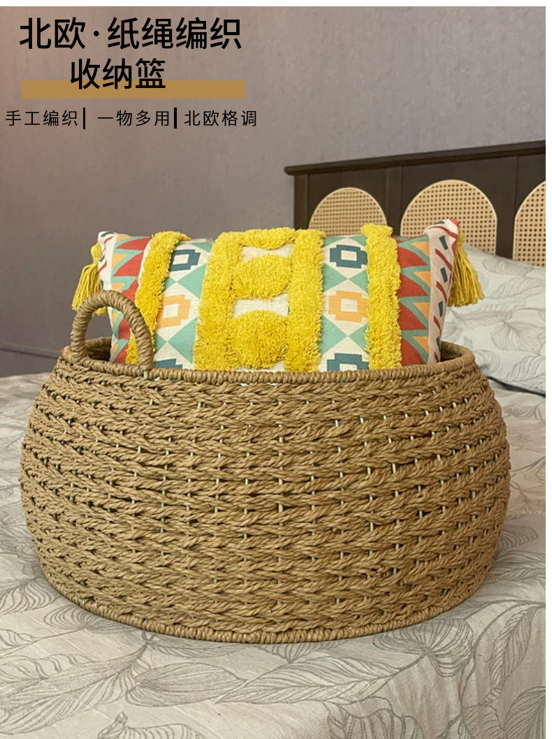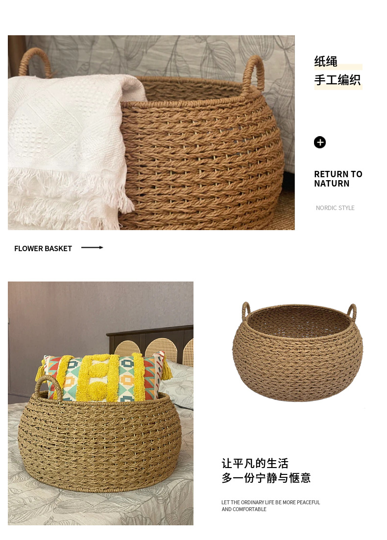 Cuerda de papel tejida cesta de almacenamiento cesta de organización escritorio mesa de café ropa juguete merienda pastoral cesta de almacenamiento caja de almacenamiento