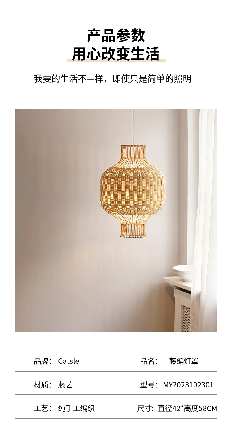 Lámpara colgante de ratán de oveja de madera comedor sala de estar lámparas dormitorio B & B pastoral retro estilo silencioso arte de ratán Pantalla de estilo nórdico