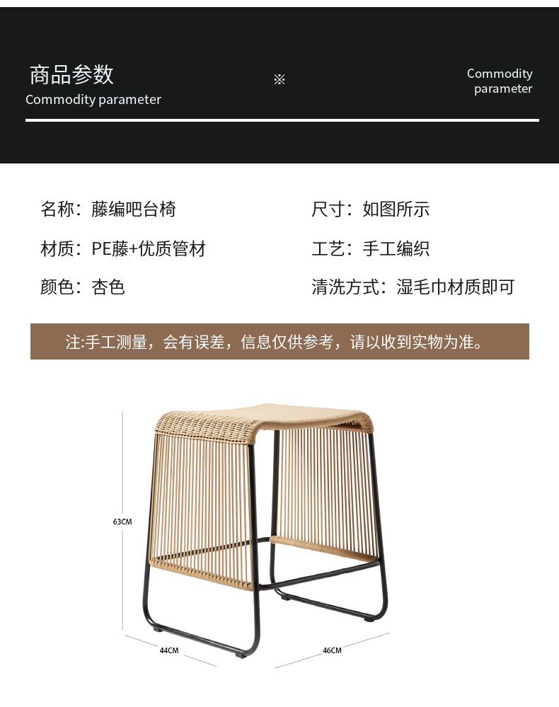 Estilo nórdico Silla de Bar de ratán taburete comercial bar medio antiguo hogar Silla de mesa de isla B & B red Silla de ratán rojo