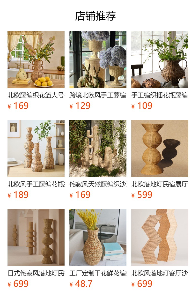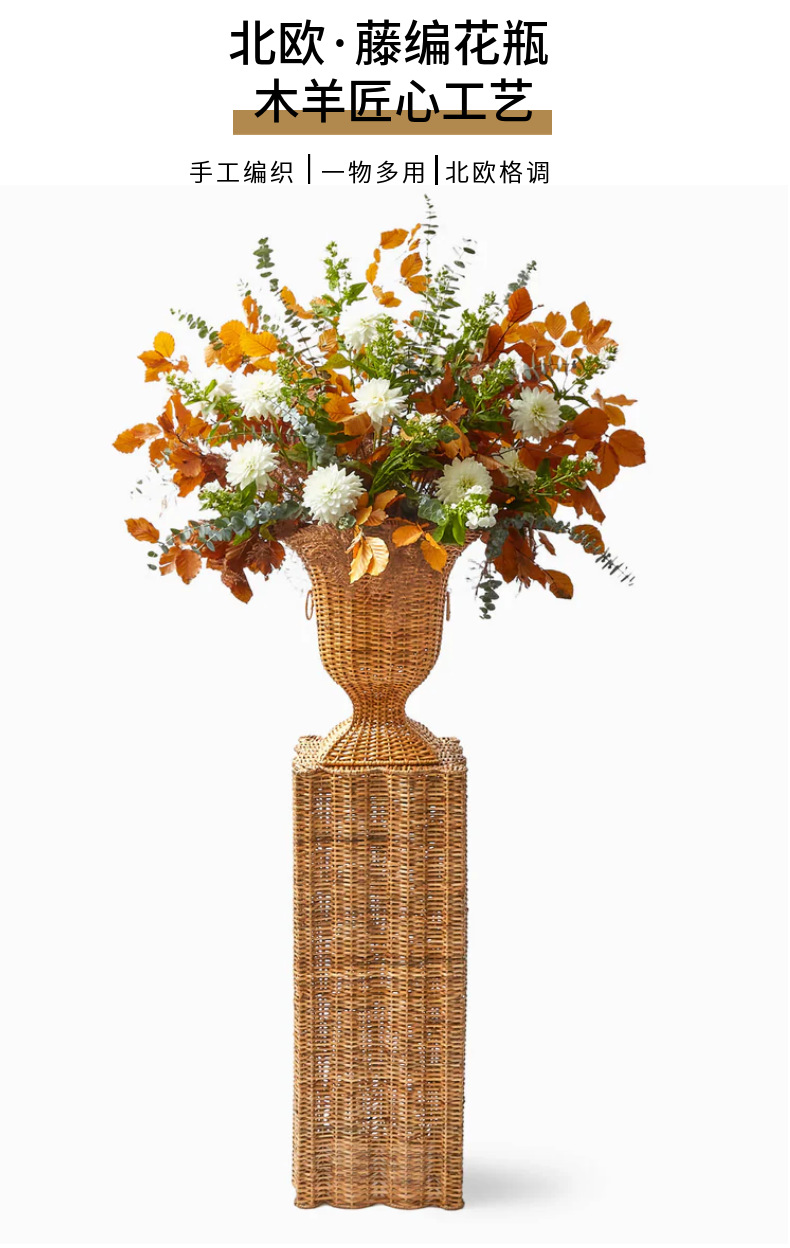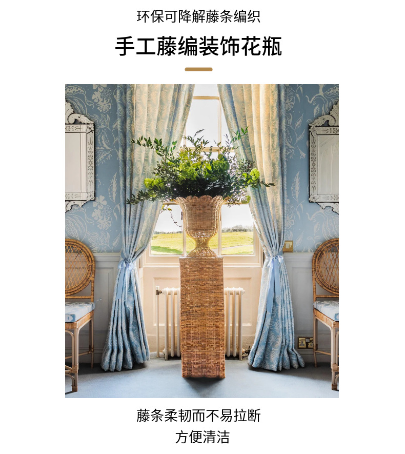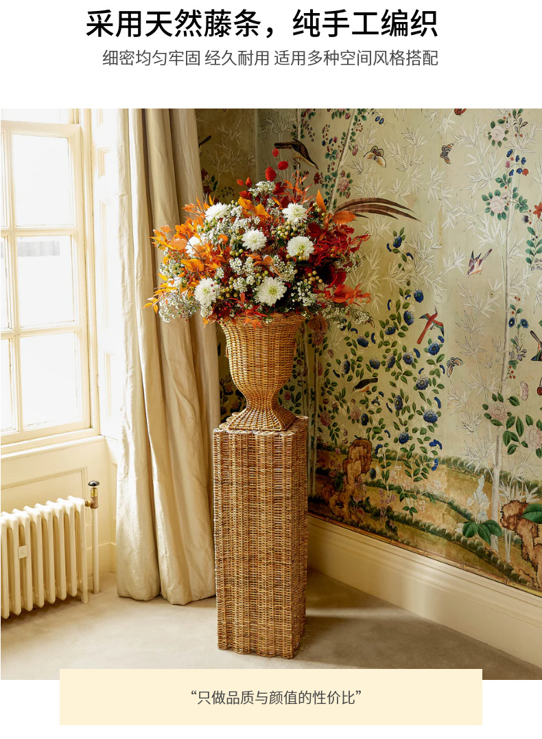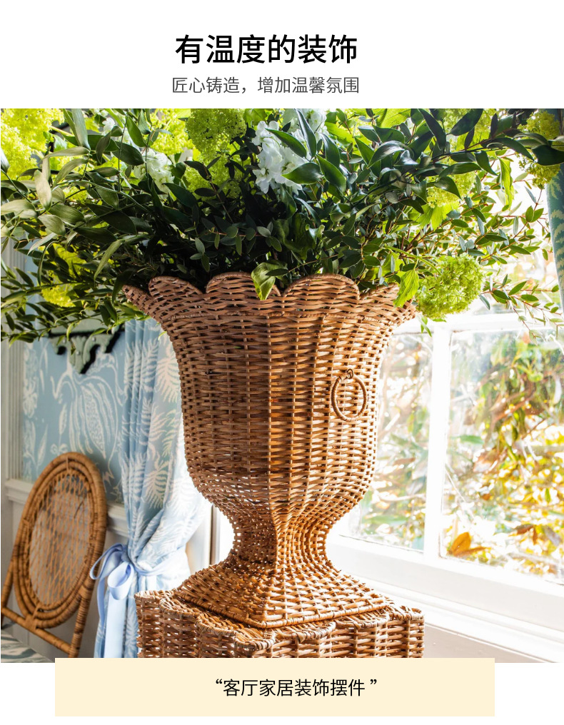 Gran jarrón de estilo europeo tejido a mano de alto estilo simple hotel famoso vestíbulo flor seca decoración de sala de estar