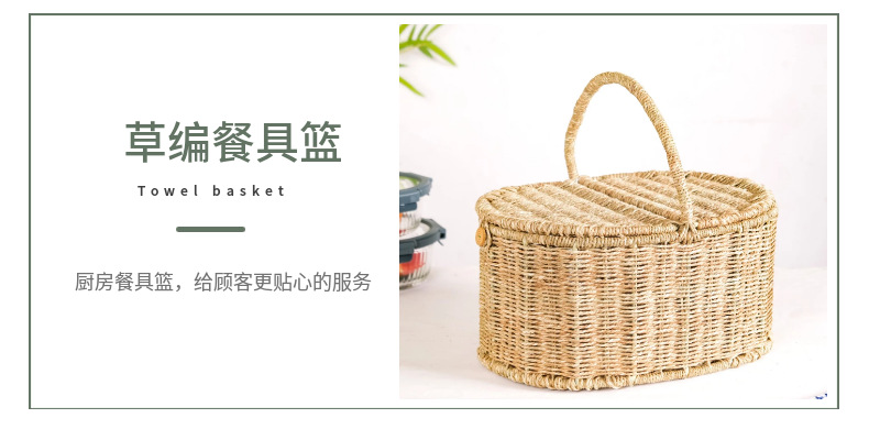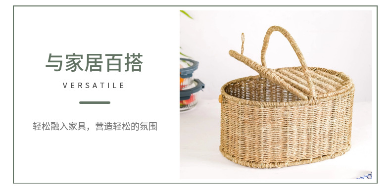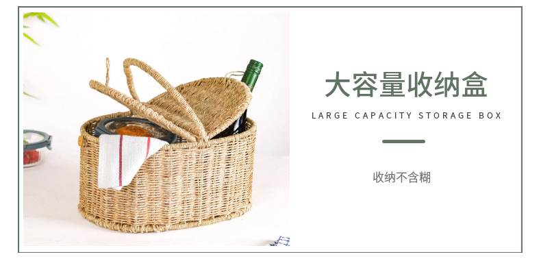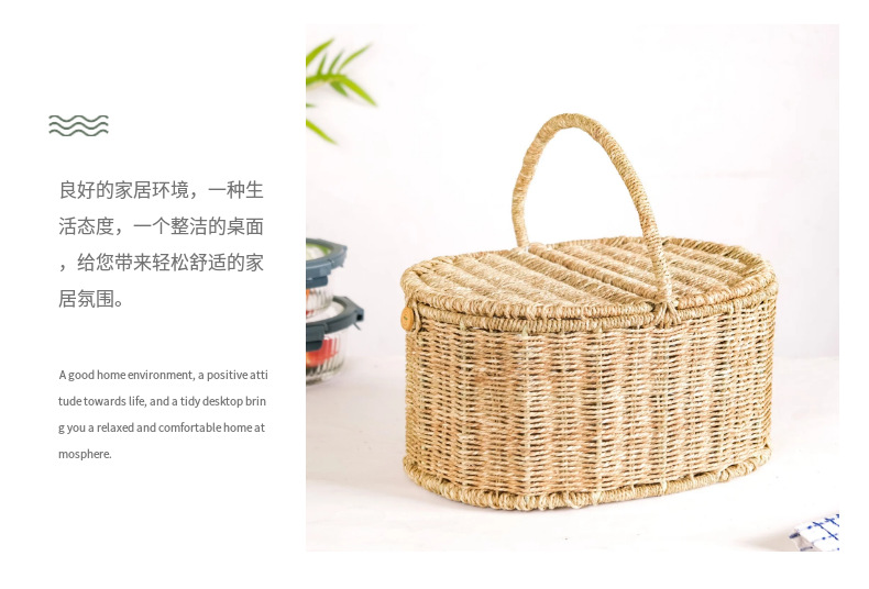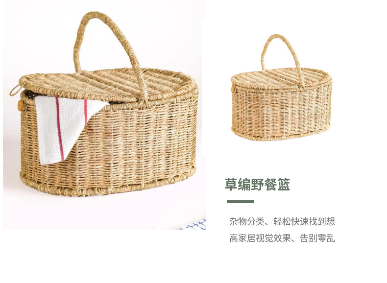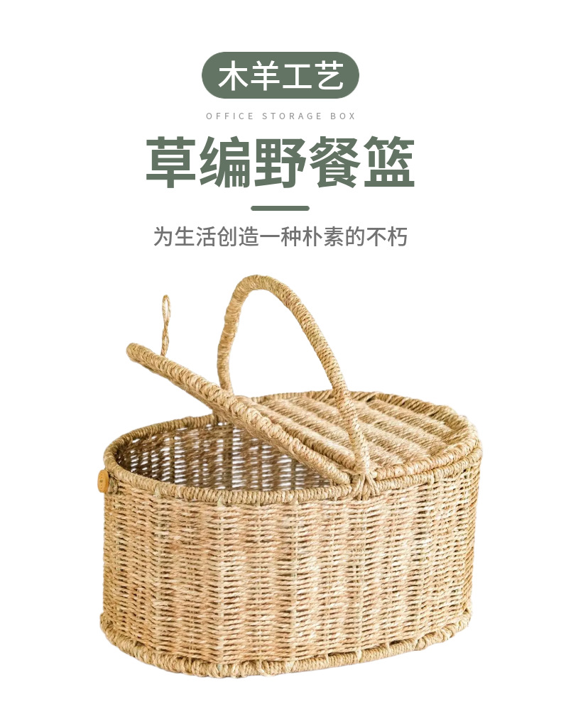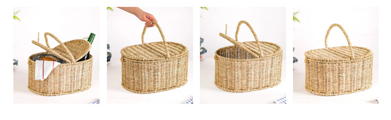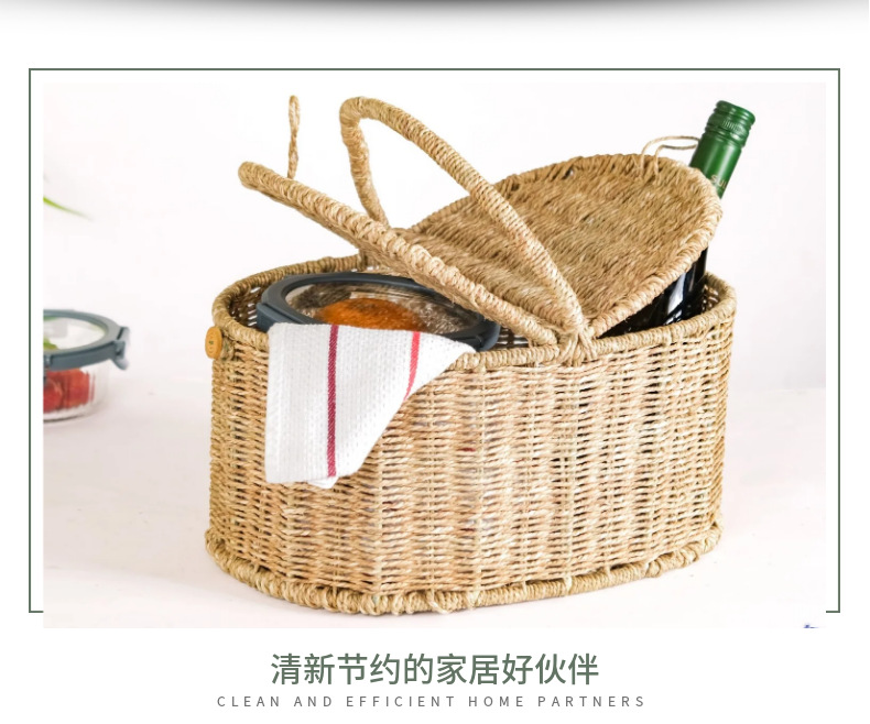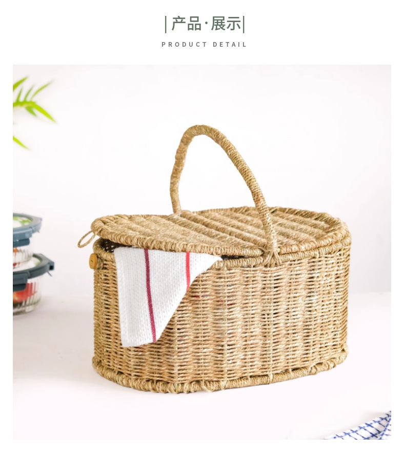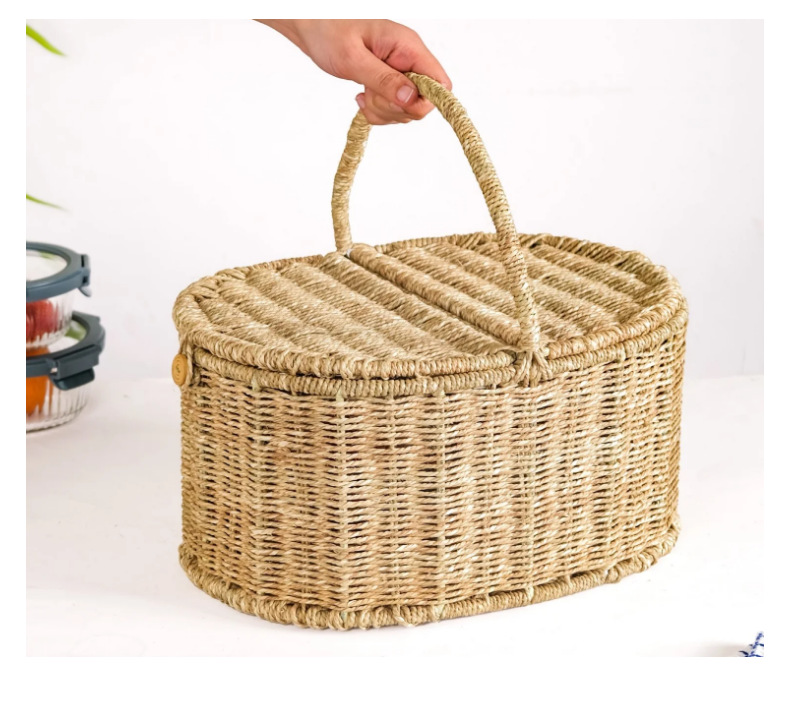 Cestas de almacenamiento trenzadas a mano transfronterizas nórdicas de paja trenzadas cesta de picnic al aire libre acampando cajas de almacenamiento de alimentos