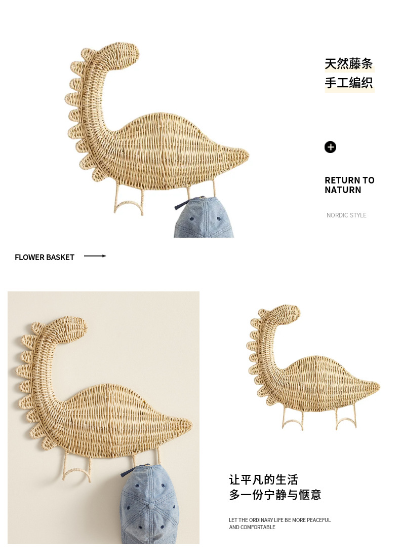 Gancho de dinosaurio tejido a mano estrella de mar cangrejo delfin tortuga pared colgante chaqueta sombrero colgante