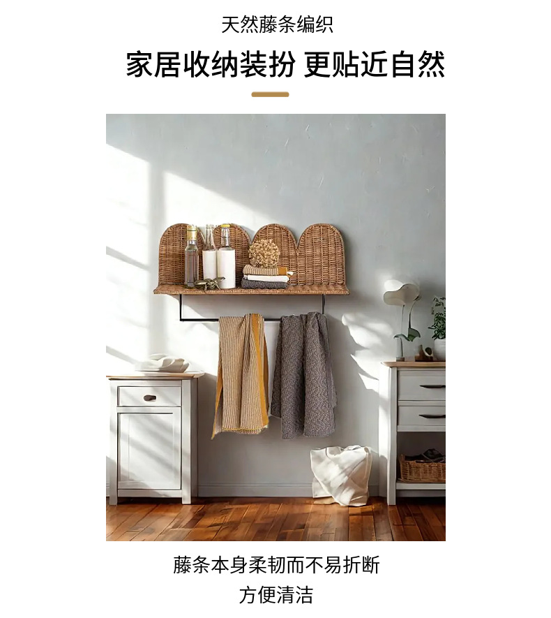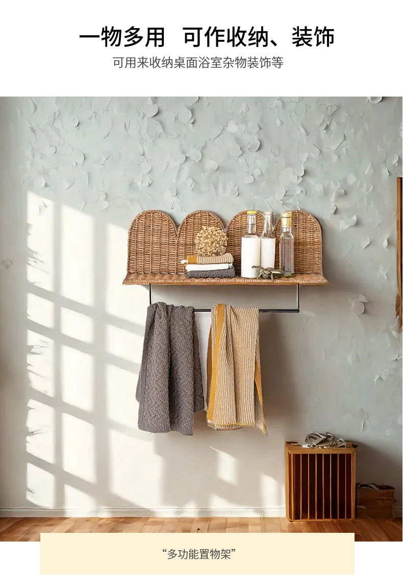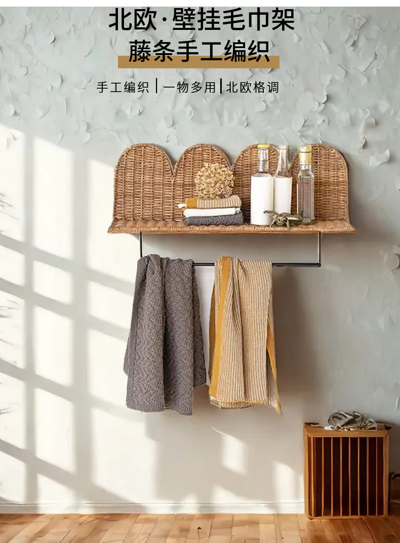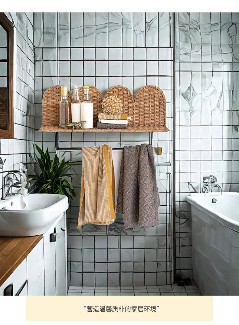 Toallero de baño de ratán hecho a mano Estante de baño Estante de baño multifuncional Estante de almacenamiento de toallero de baño