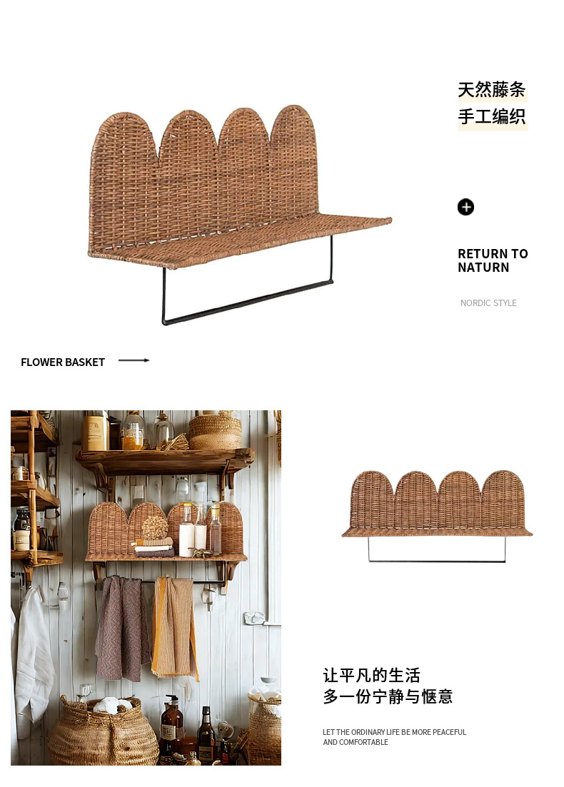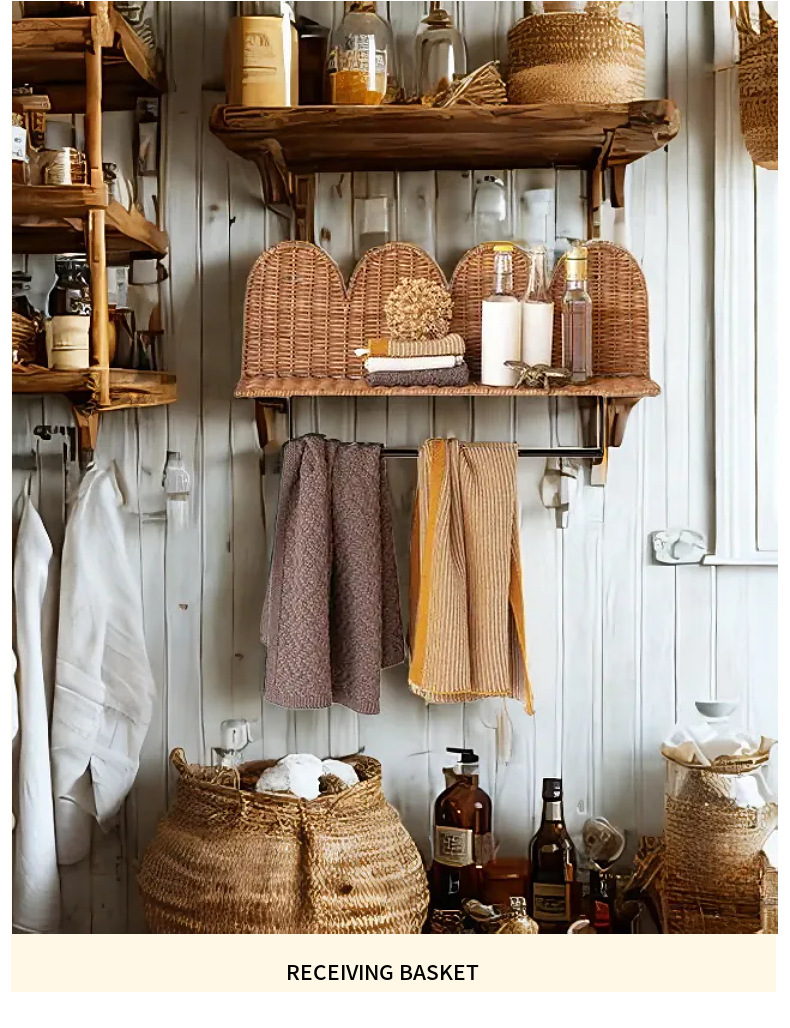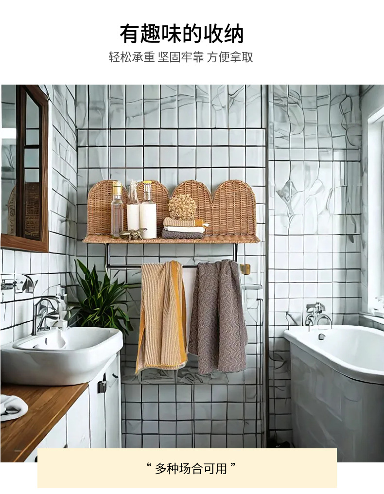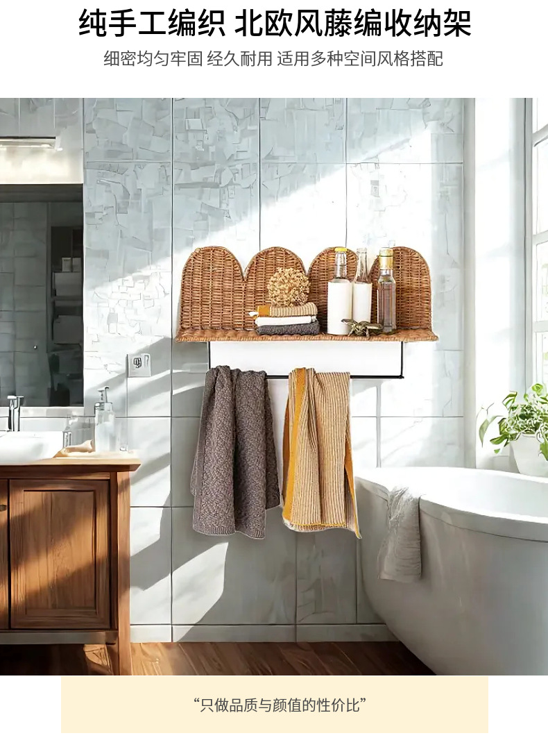 Toallero de baño de ratán hecho a mano Estante de baño Estante de baño multifuncional Estante de almacenamiento de toallero de baño