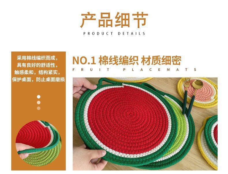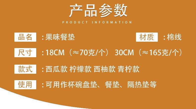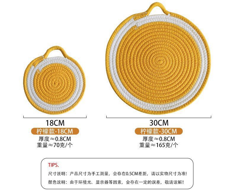 | Color | 西瓜款18cm,西瓜款30cm,橘子款18cm,橘子款30cm,奇异果款18cm,奇异果款30cm,柠檬款18cm,柠檬款30cm,棉绳杯垫 圆形 花花 18cm,棉绳杯垫 圆形 花花 24cm,棉绳杯垫 圆形 草莓 30cm,棉绳杯垫 圆形 Sweet home 18cm,棉绳杯垫 圆形 Sweet home 24cm,棉绳杯垫 圆形 Sweet home 30cm,棉绳杯垫 圆形 黑色 12cm,棉绳杯垫 圆形 黑色 18cm,棉绳杯垫 圆形 黑色 25cm,棉绳杯垫 圆形 黑色 30cm,棉绳杯垫 圆形 黑色 35cm,棉绳杯垫 圆形 白色 12cm,棉绳杯垫 圆形 白色 18cm,棉绳杯垫 圆形 白色 25cm,棉绳杯垫 圆形 白色 30cm,棉绳杯垫 圆形 白色 35cm,棉绳杯垫 圆形 白色 38cm,棉绳杯垫 圆形 灰色 12cm,棉绳杯垫 圆形 灰色 18cm,棉绳杯垫 圆形 灰色 25cm,棉绳杯垫 圆形 灰色 30cm,棉绳杯垫 圆形 灰色 35cm,棉绳杯垫 圆形 灰色 38cm,棉绳杯垫 圆形 彩色 12cm,棉绳杯垫 圆形 彩色 18cm,棉绳杯垫 圆形 彩色 25cm,棉绳杯垫 圆形 彩色 30cm,棉绳杯垫 圆形 彩色 35cm,棉绳杯垫 圆形 彩色 38cm,棉绳杯垫 圆形 烟花 12cm,棉绳杯垫 圆形 烟花 30cm,棉绳杯垫 圆形 风轮 24cm,棉绳杯垫 圆形 风轮 30cm,棉绳杯垫 圆形 花花 12cm,棉绳杯垫 圆形 草莓 12cm,棉绳杯垫 圆形 Sweet home 12cm,棉绳杯垫 圆形黄麻12cm,棉绳杯垫 圆形黄麻25cm,棉绳杯垫 圆形黄麻30cm,棉绳杯垫 猫耳白色12cm,棉绳杯垫 猫耳彩色18cm,棉绳杯垫 猫耳白色18cm,棉绳杯垫 猫耳灰色18cm |