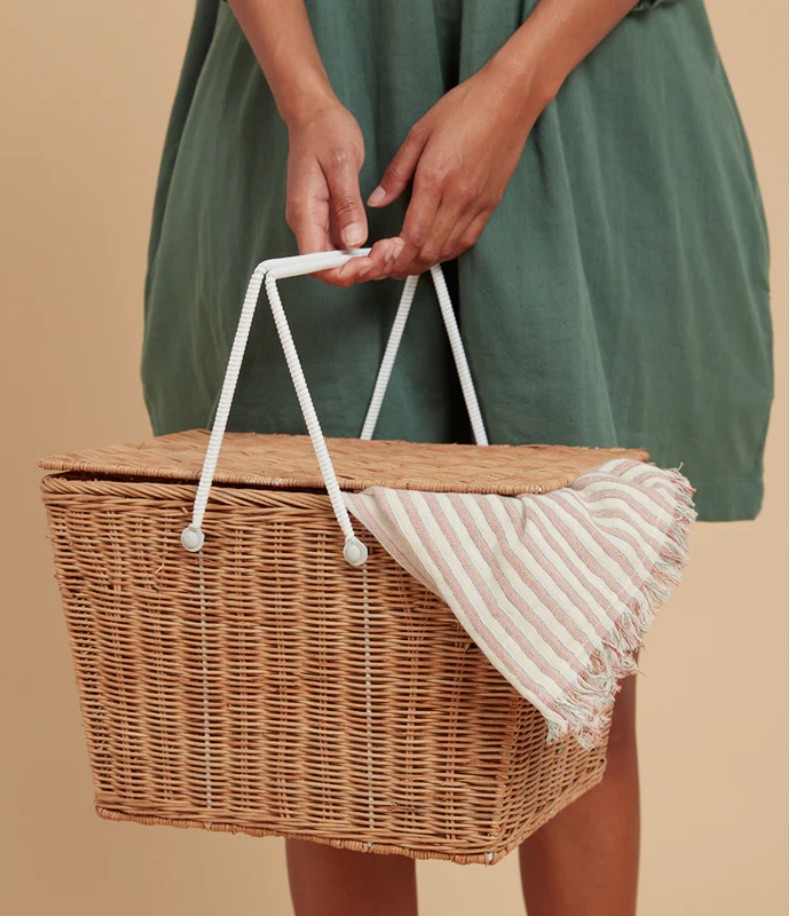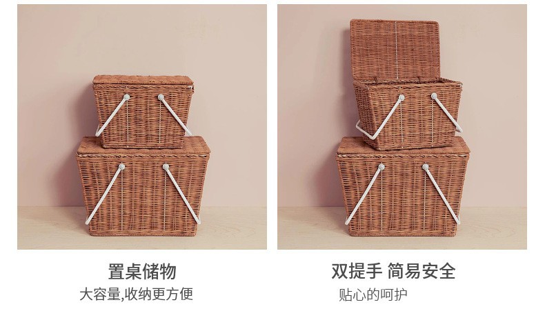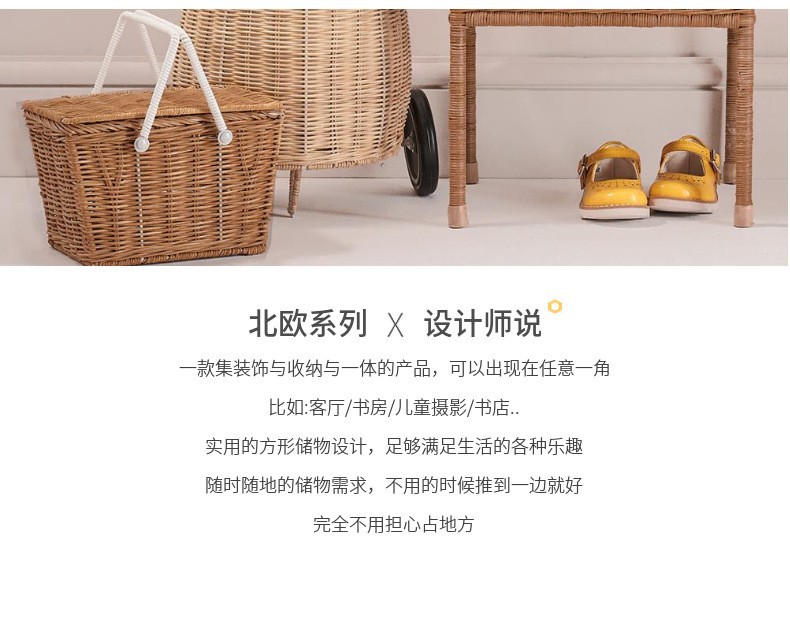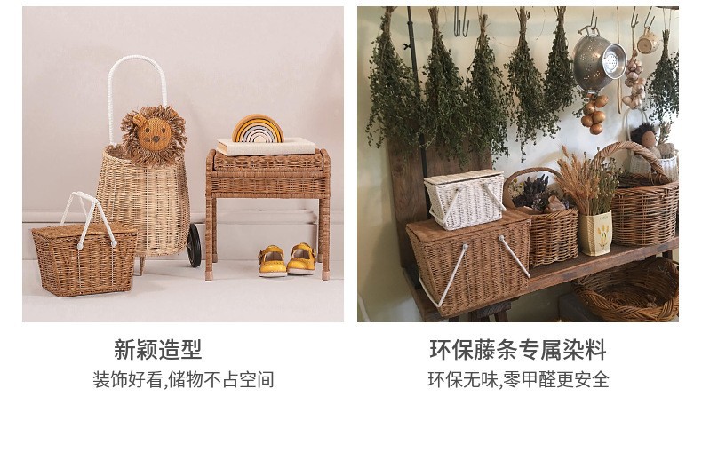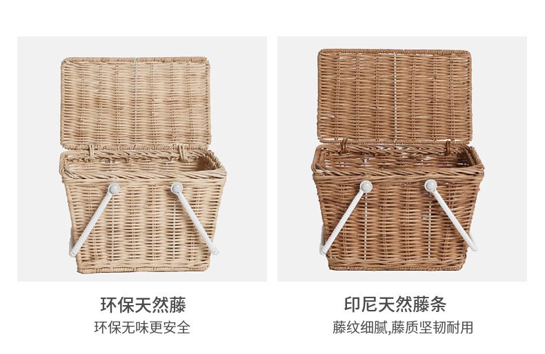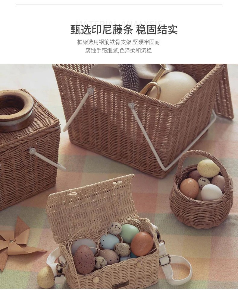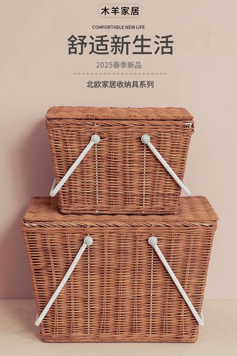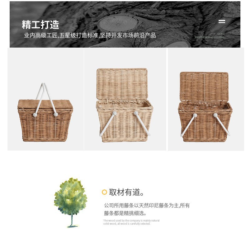 Cesta de picnic nórdica de ratán de estilo nórdico, cesta de picnic de viaje al aire libre, cesta de almacenamiento, cesta de almacenamiento de ratán hecha a mano