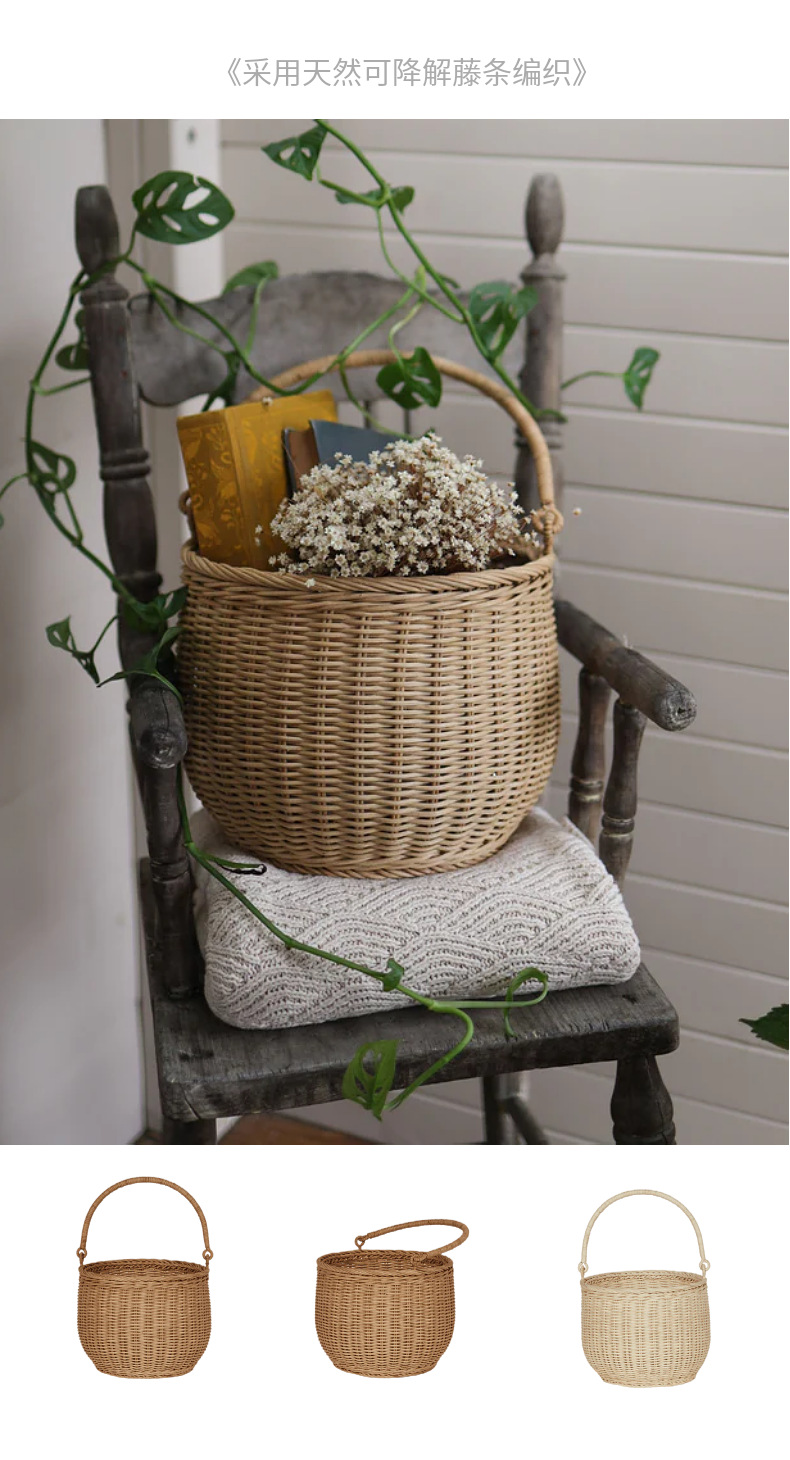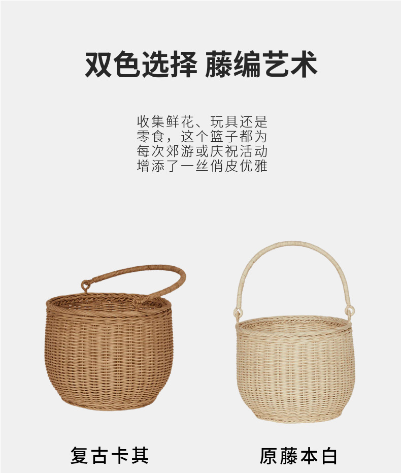 Gran por mayor almacenamiento portátil imitación de caña tejida cesta de picnic al aire libre cestas de frutas flores cestas de mano cestas de flores para niños