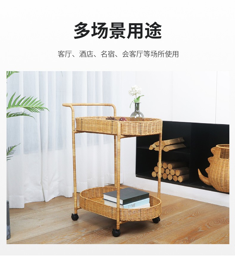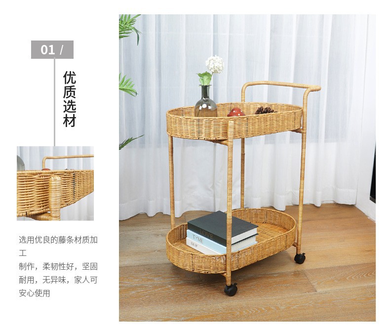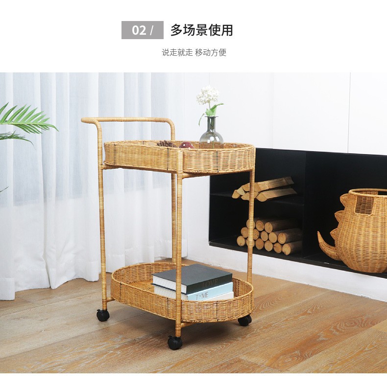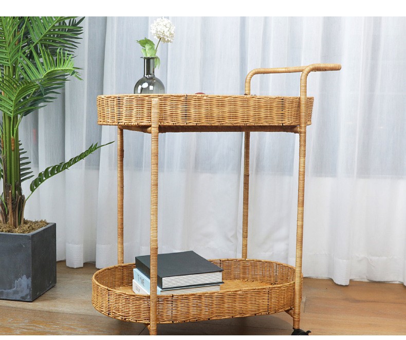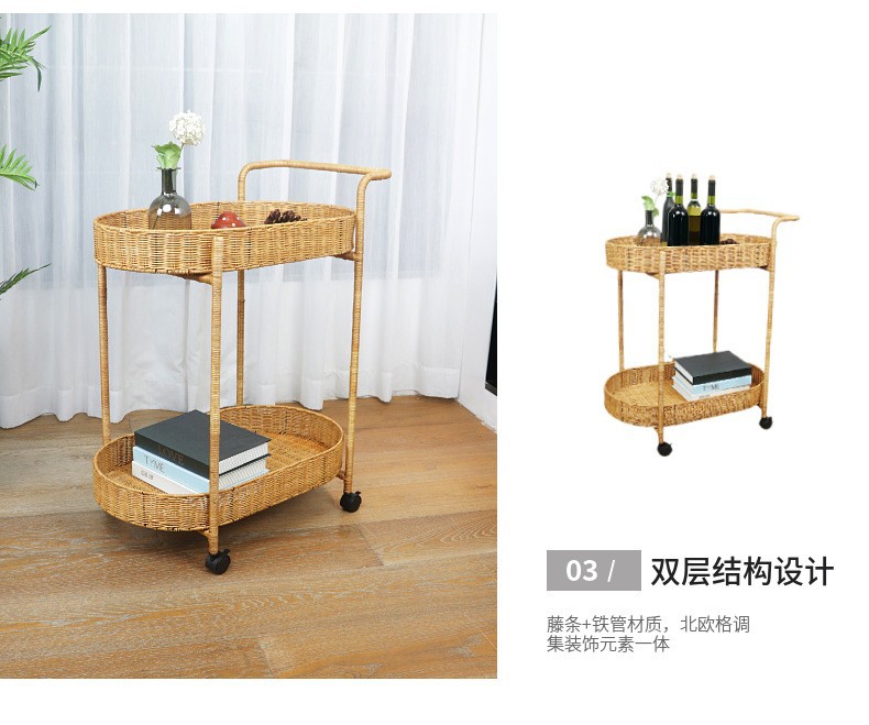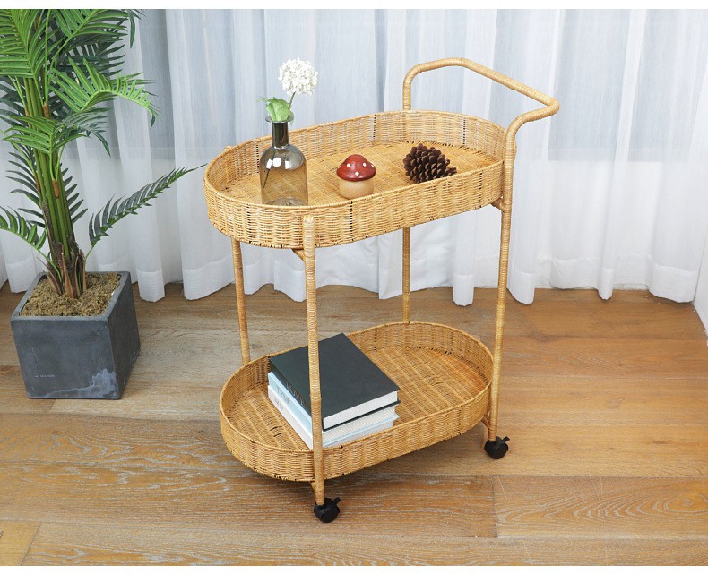 Carrito de comida de doble capa de tela de caña, carro de bebida, carro de té, carro de snack, carro de pastel, carro de tienda 4S, carro móvil