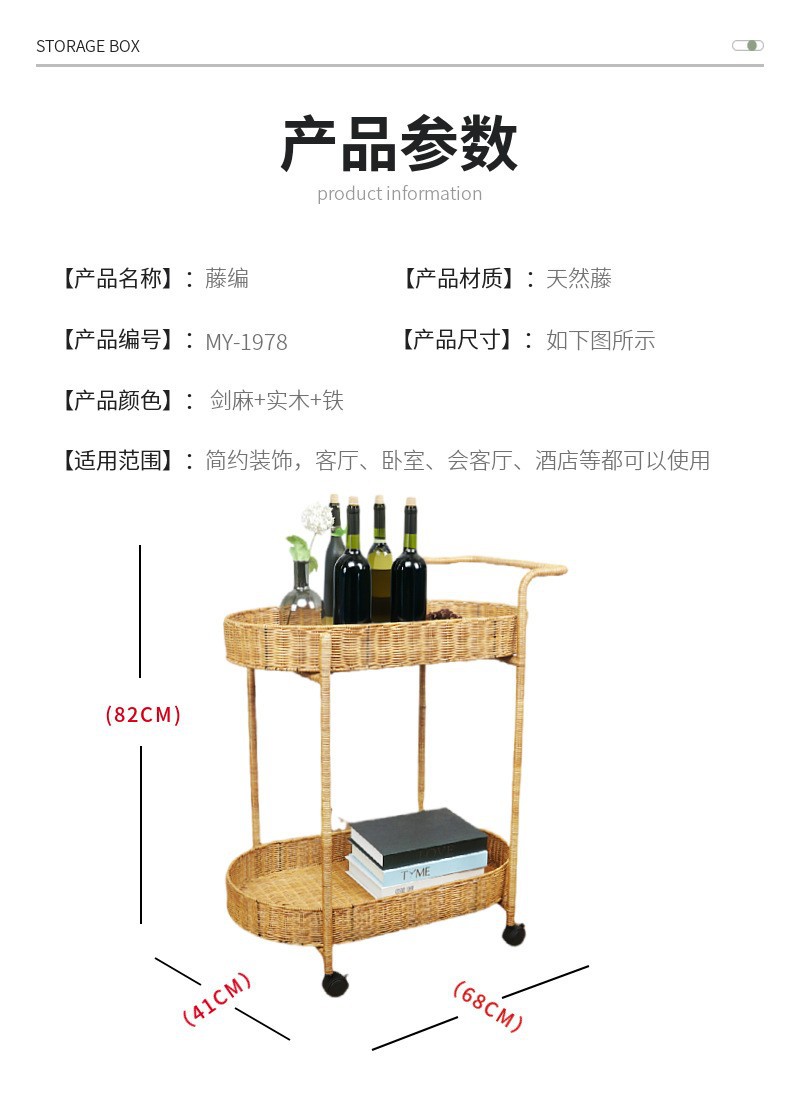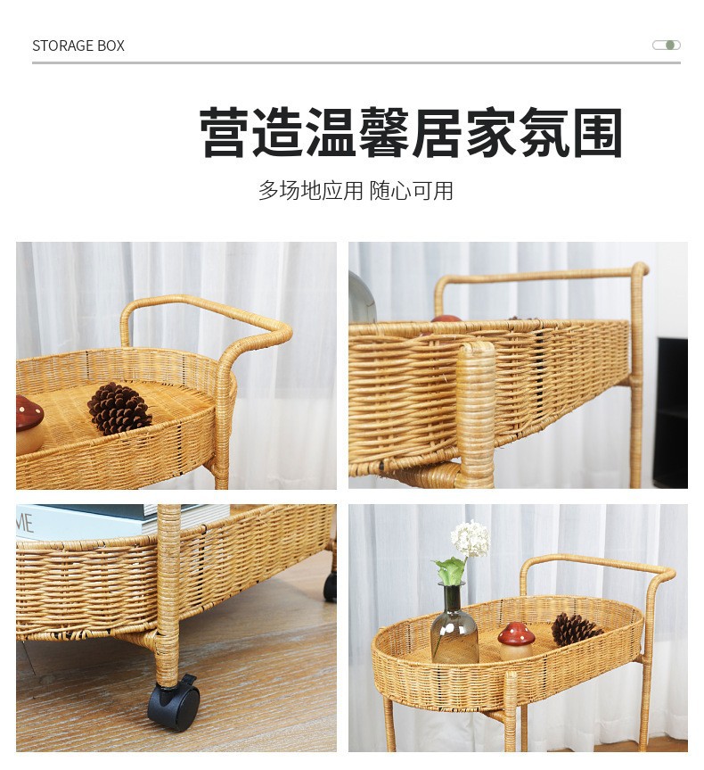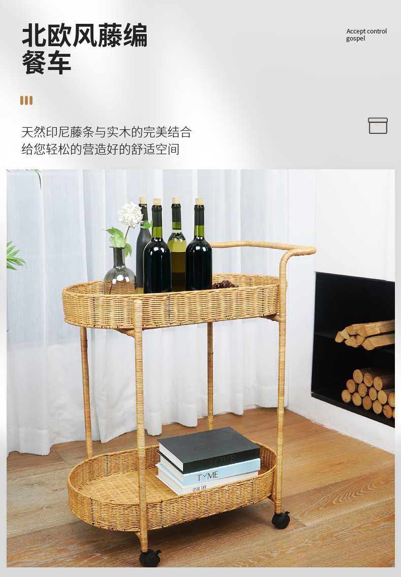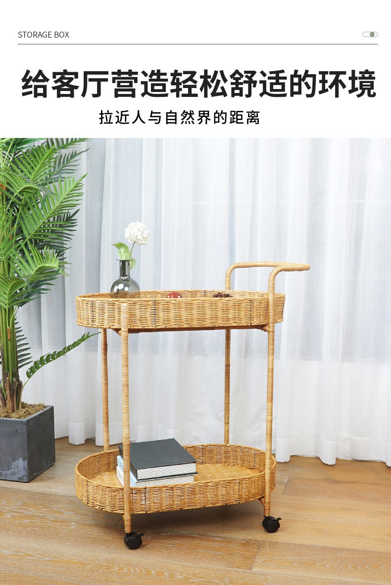 Carrito de comida de doble capa de tela de caña, carro de bebida, carro de té, carro de snack, carro de pastel, carro de tienda 4S, carro móvil