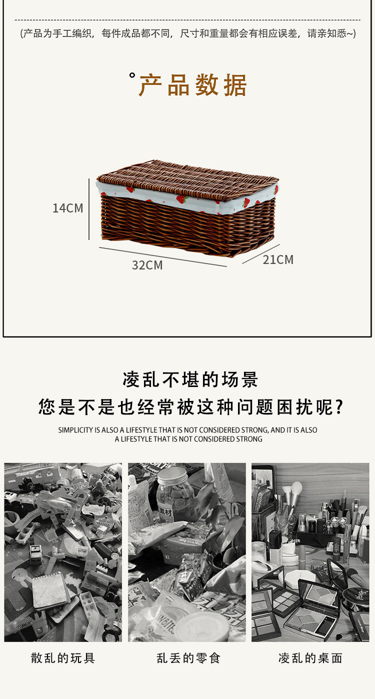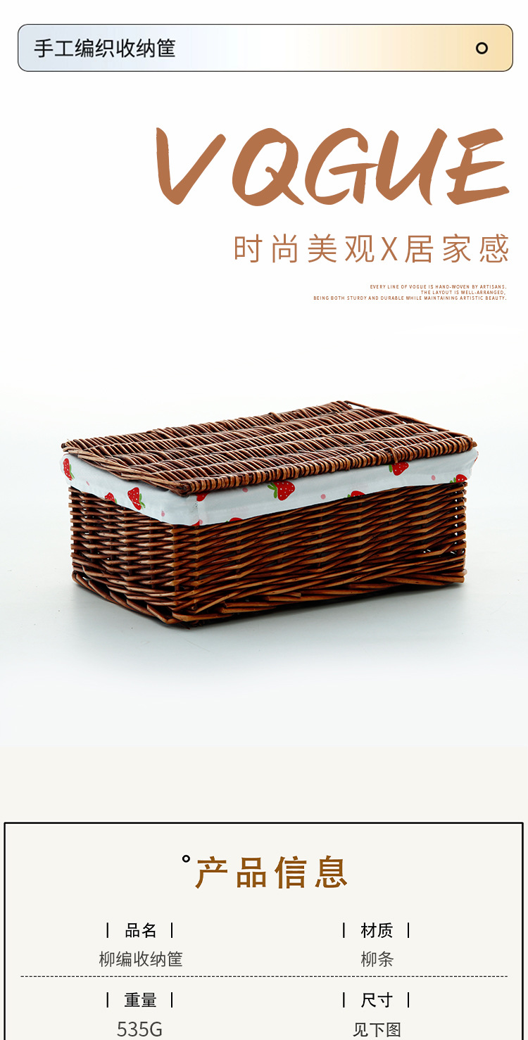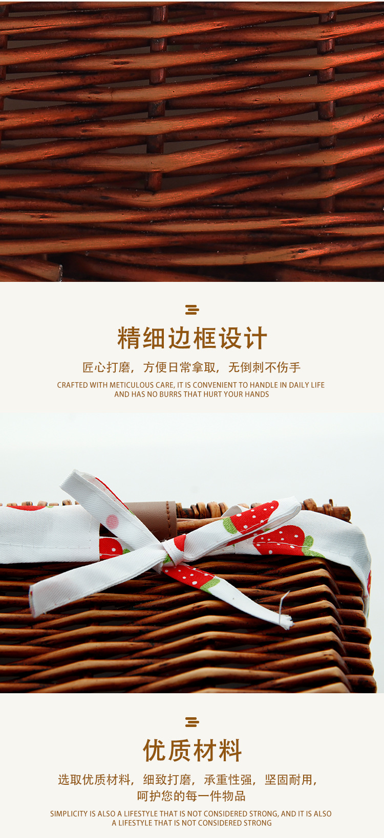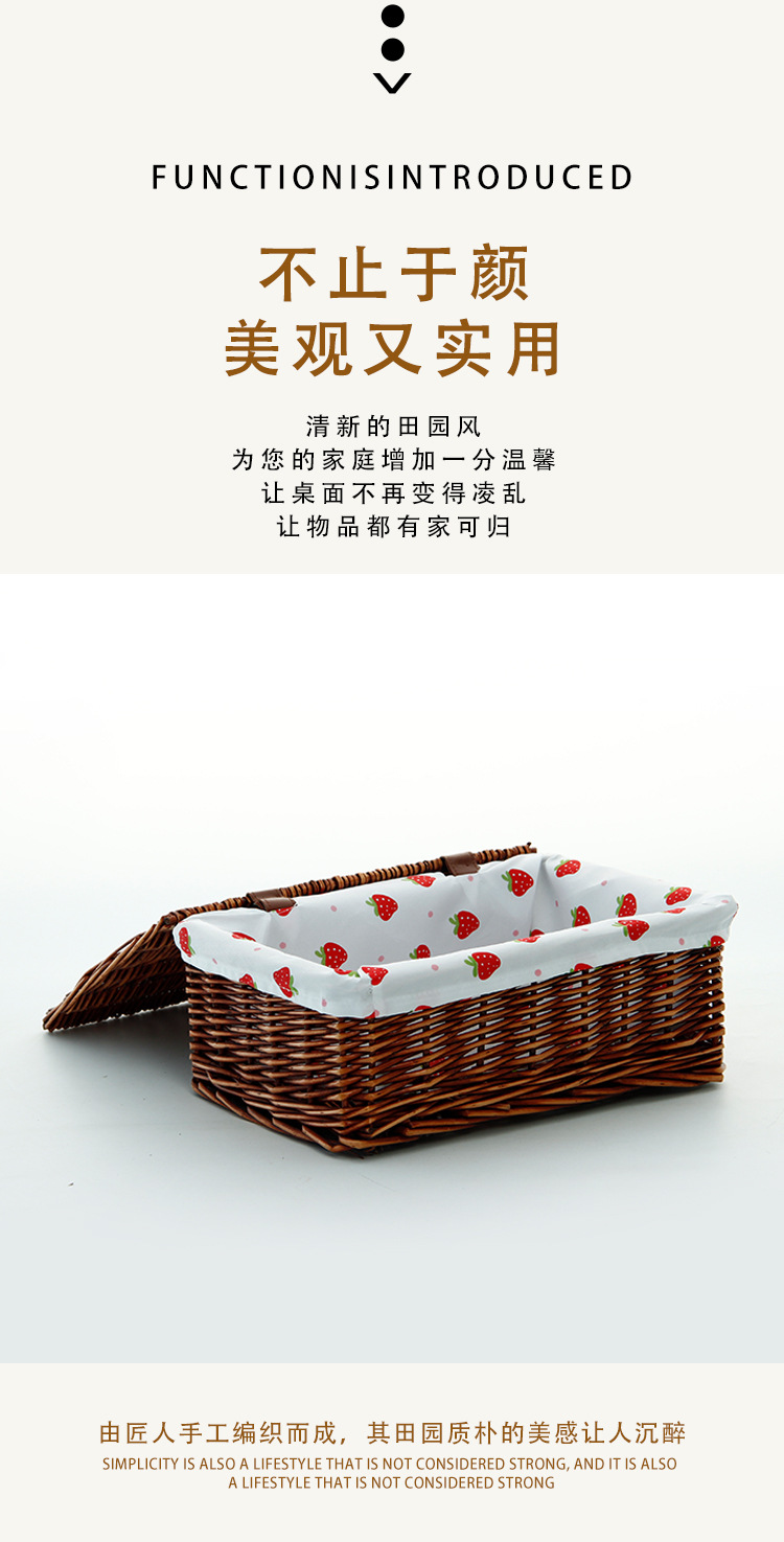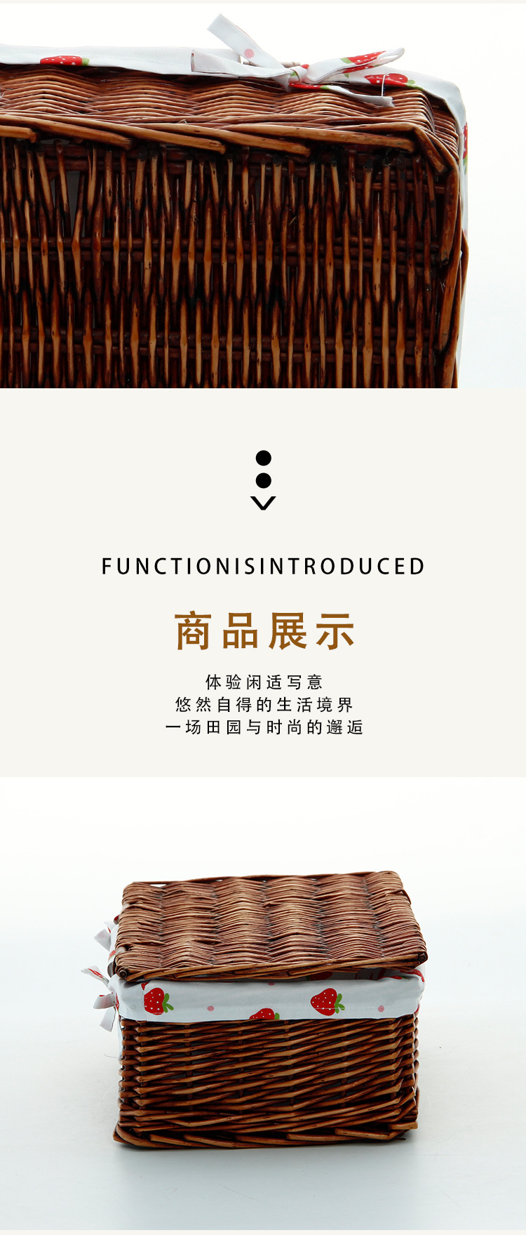 | Color | Canasta de almacenamiento cuadrada de sauce con cubierta marrón oscuro tela blanca de fresa 34.5 * 23 * 13 |