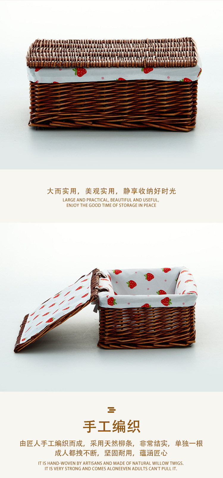 Canasta de almacenamiento cuadrada de sauce con cubierta marrón oscuro de fresa blanco forrado grueso y duradero canasta de almacenamiento de sauce hecha a mano