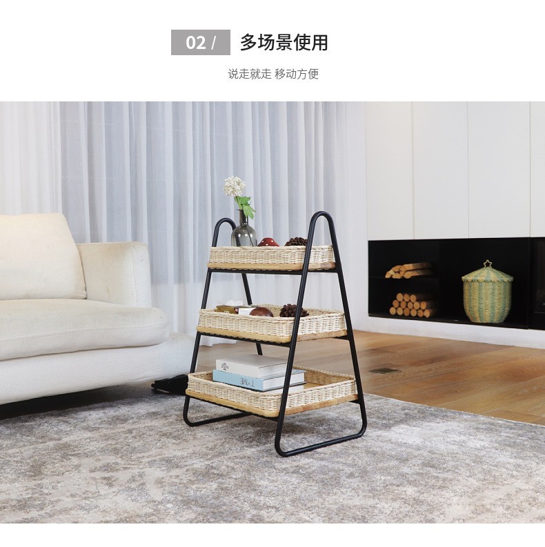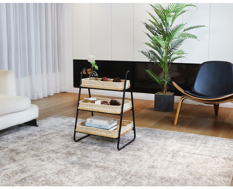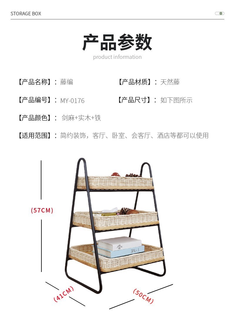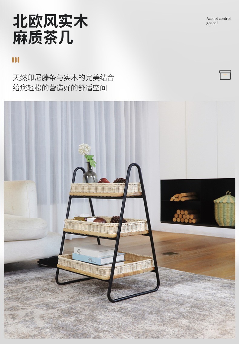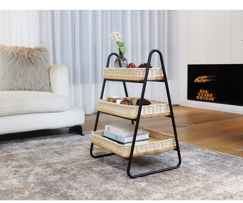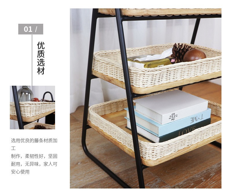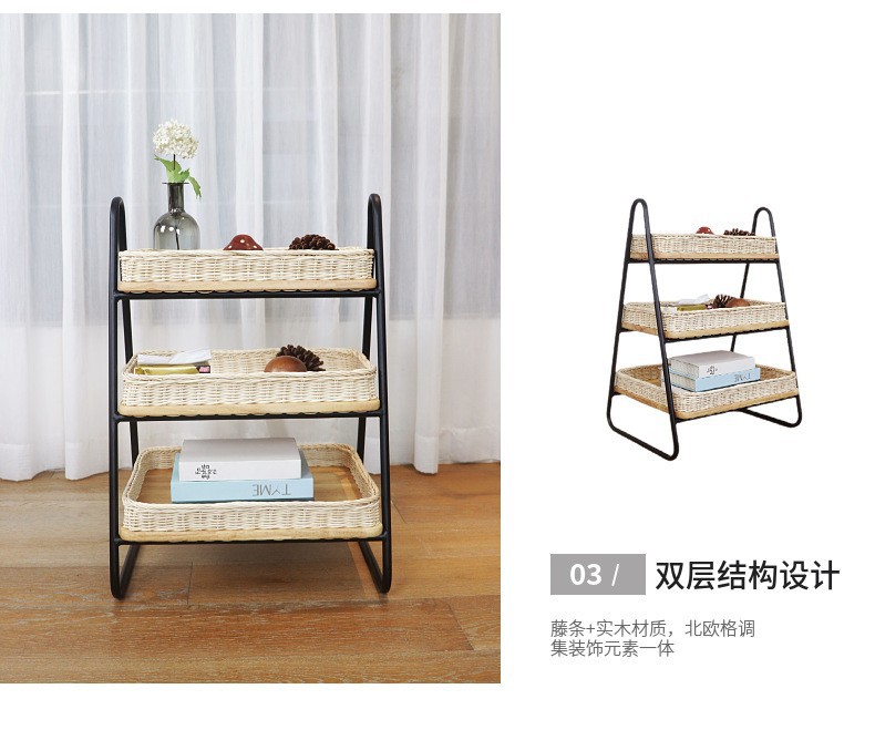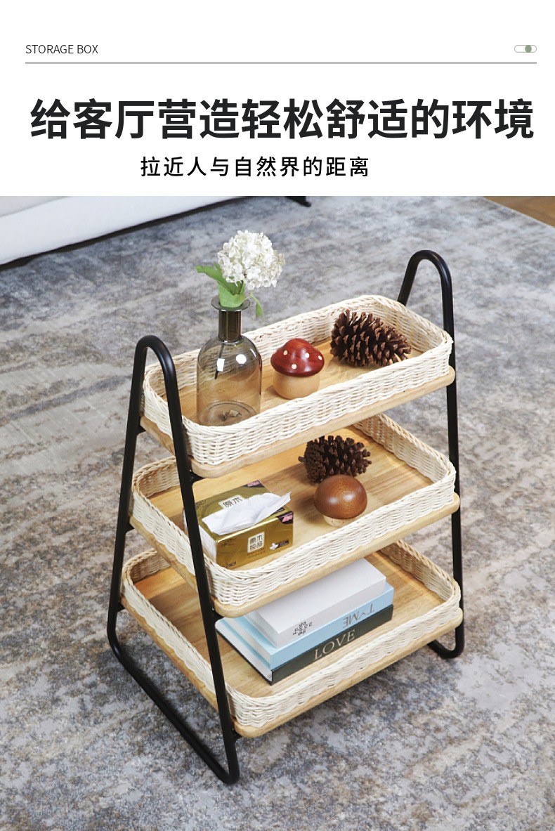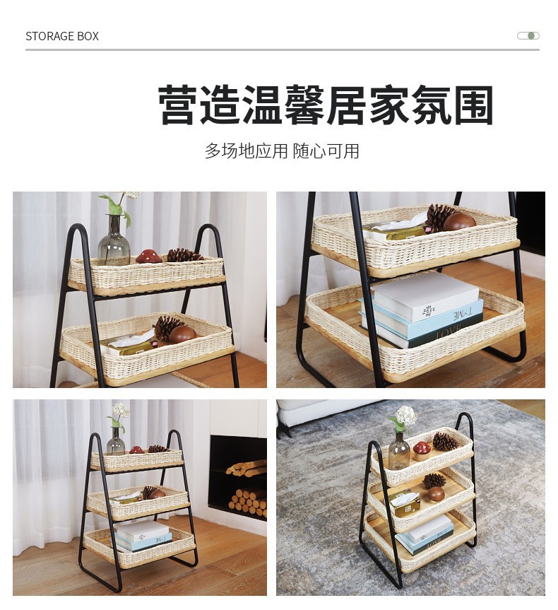 Estantes de almacenamiento de caña de estilo nórdico, estantes de almacenamiento de decoración residencial, estantes de almacenamiento de artículos diversos, cestas de almacenamiento de madera sólida tejidas a mano de tres capas