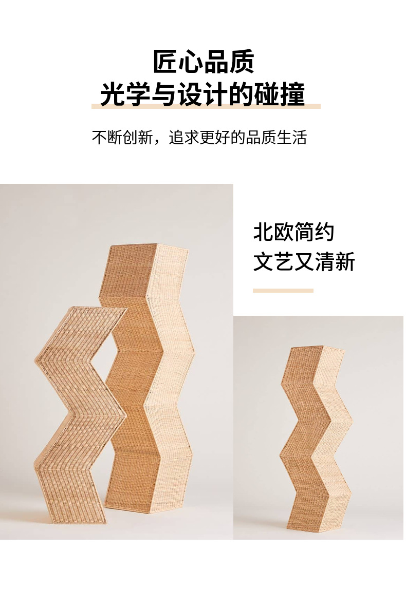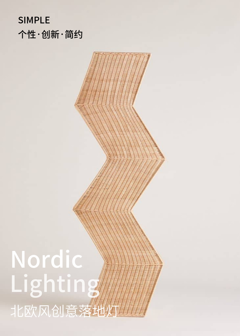 Estilo nórdico lámpara de pie sala de estar sofá cama y desayuno dormitorio de noche modelado geométrico hecho a mano ratán lámpara de pie decorativa