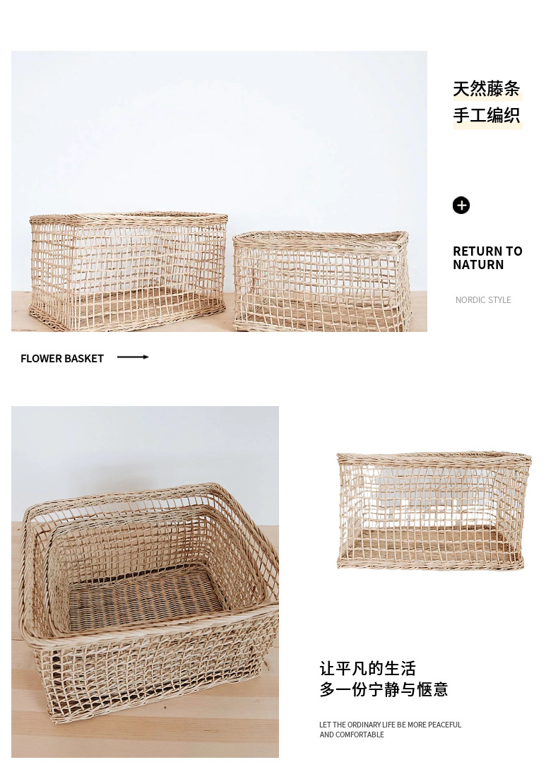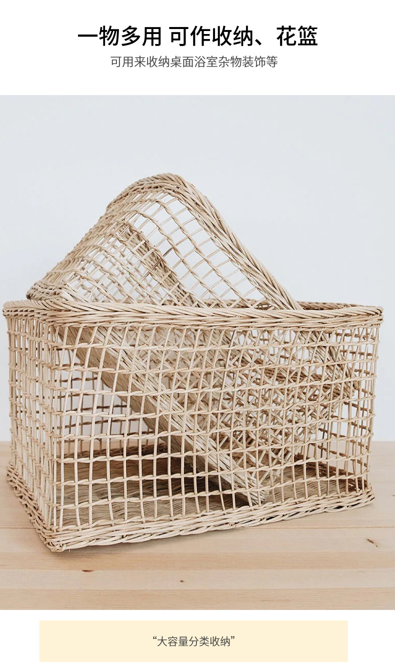 Cesta de ratán cesta de almacenamiento sala de estar merienda armario organización escritorio cesta de almacenamiento cocina gran capacidad estilo japonés