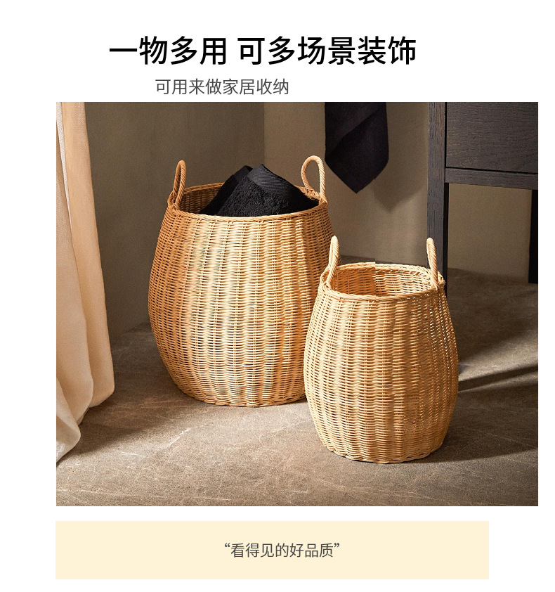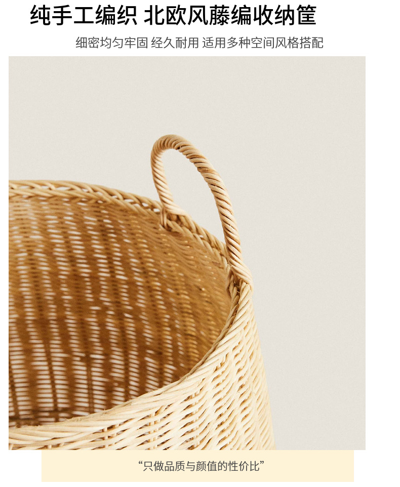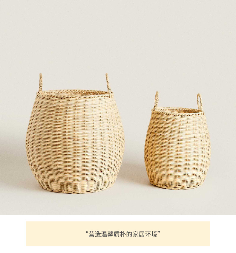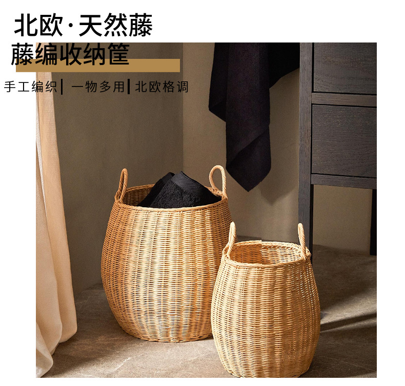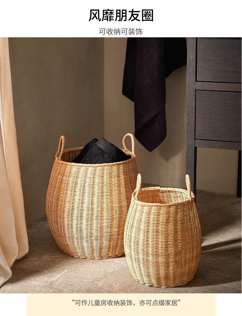 Cesta de almacenamiento redonda de ratán natural estilo americano para juguetes, ropa y artículos diversos, adecuada para ventanas y salas de estar.