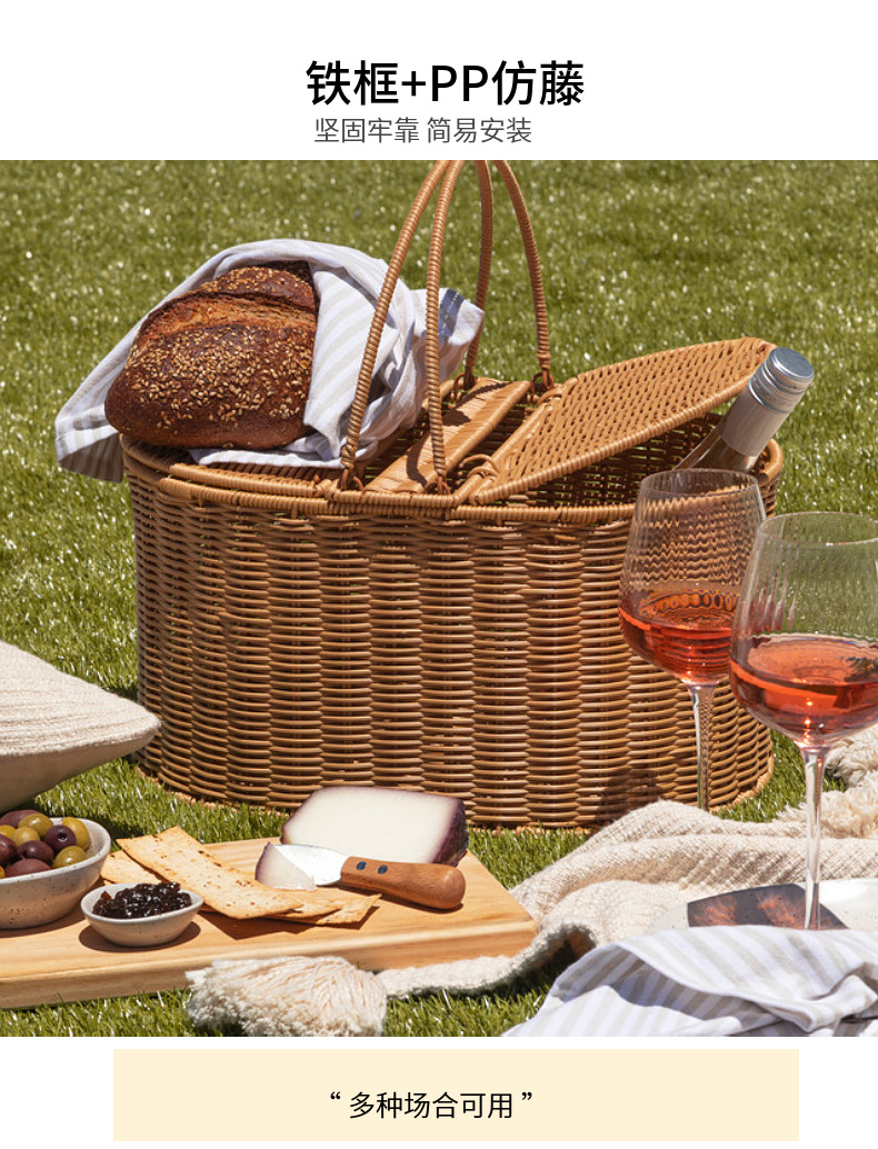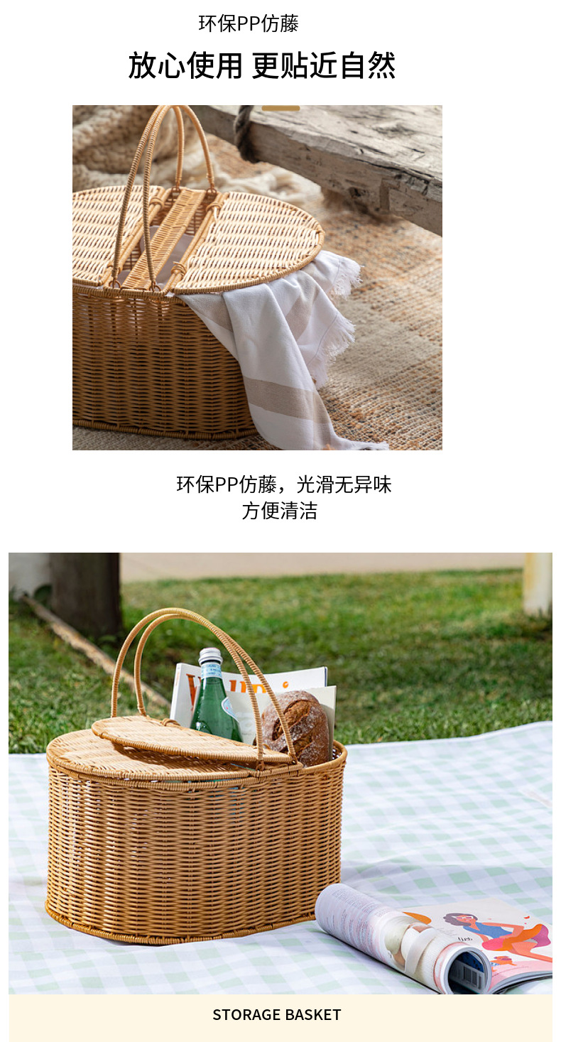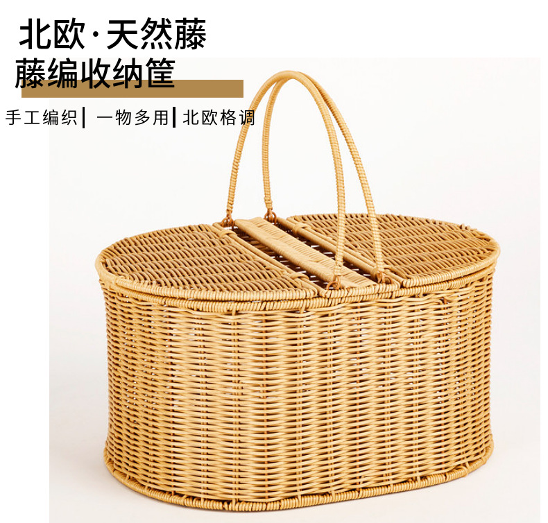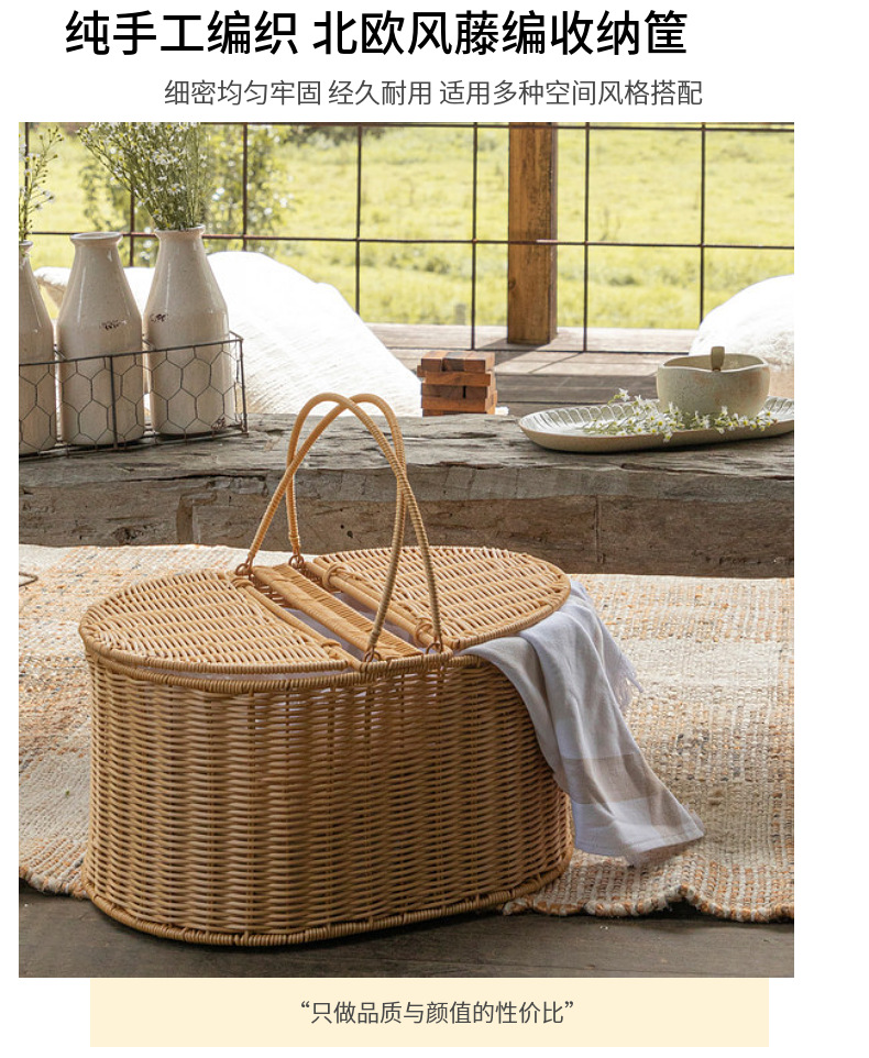 Portátil cesta de picnic supermercado cesta de la compra de ratán-como al aire libre de picnic cesta de almacenamiento hogar cesta de verduras fruta cesta de pan
