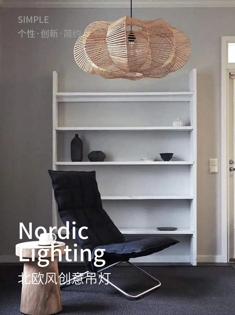 Ovejas de madera Estilo nórdico araña vintage ratán lámpara restaurante Bar Café creativo hecho a mano natural ratán lámpara