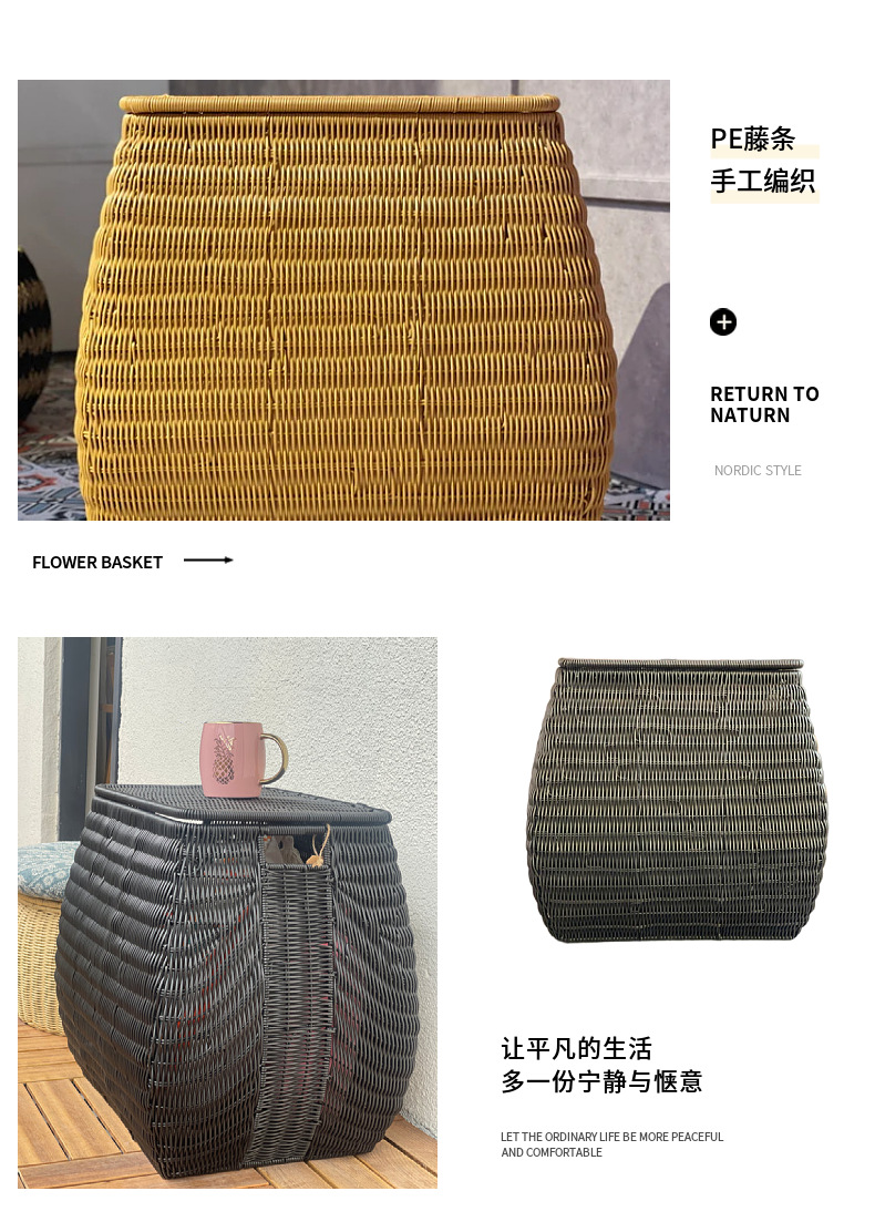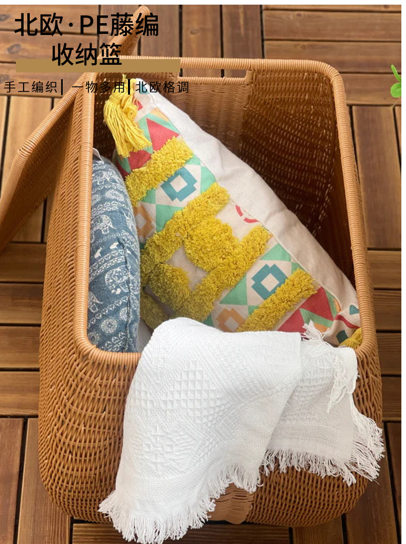 Cesta de almacenamiento de ratán PE cesta de organización de escritorio mesa de café ropa de juguete merienda pastoral cesta de almacenamiento caja de almacenamiento