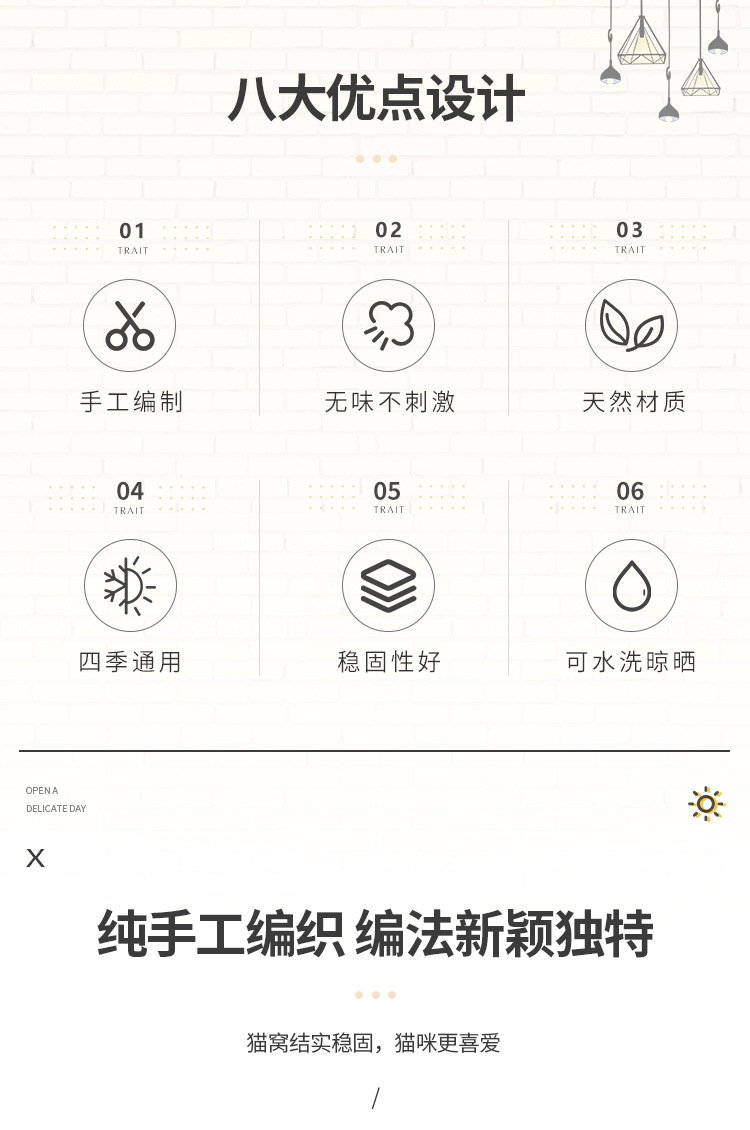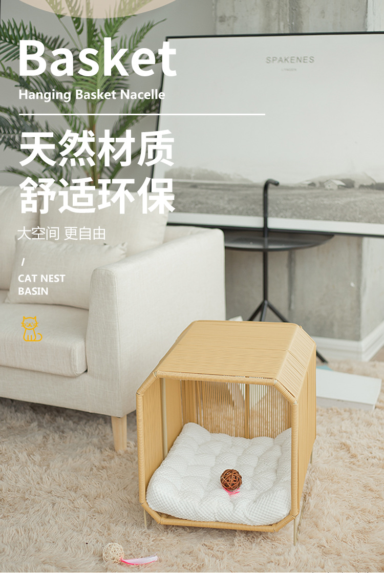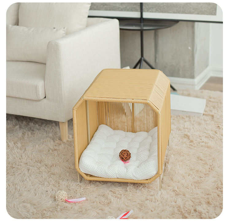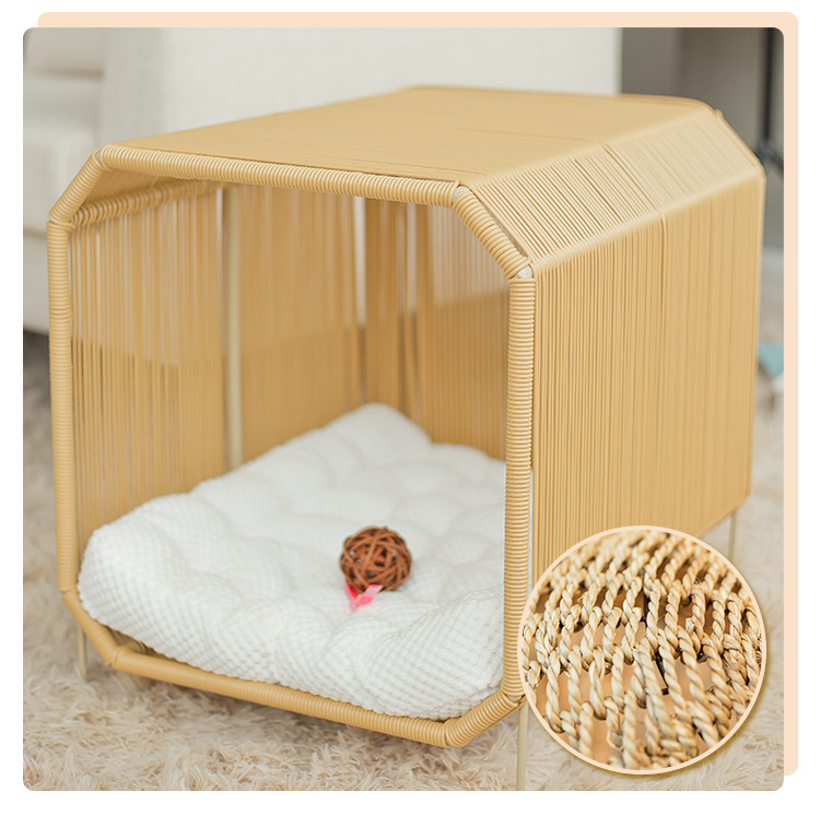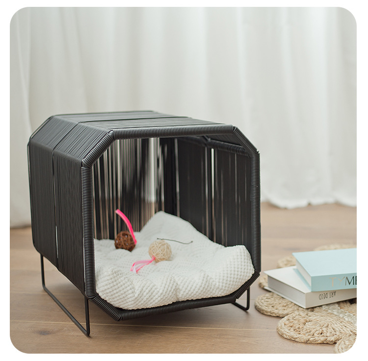 Entrega de una pieza otoño e invierno cálido transpirable gato nido ratán gato casa perrera cuatro estaciones universal semi-cerrado nido de mascotas