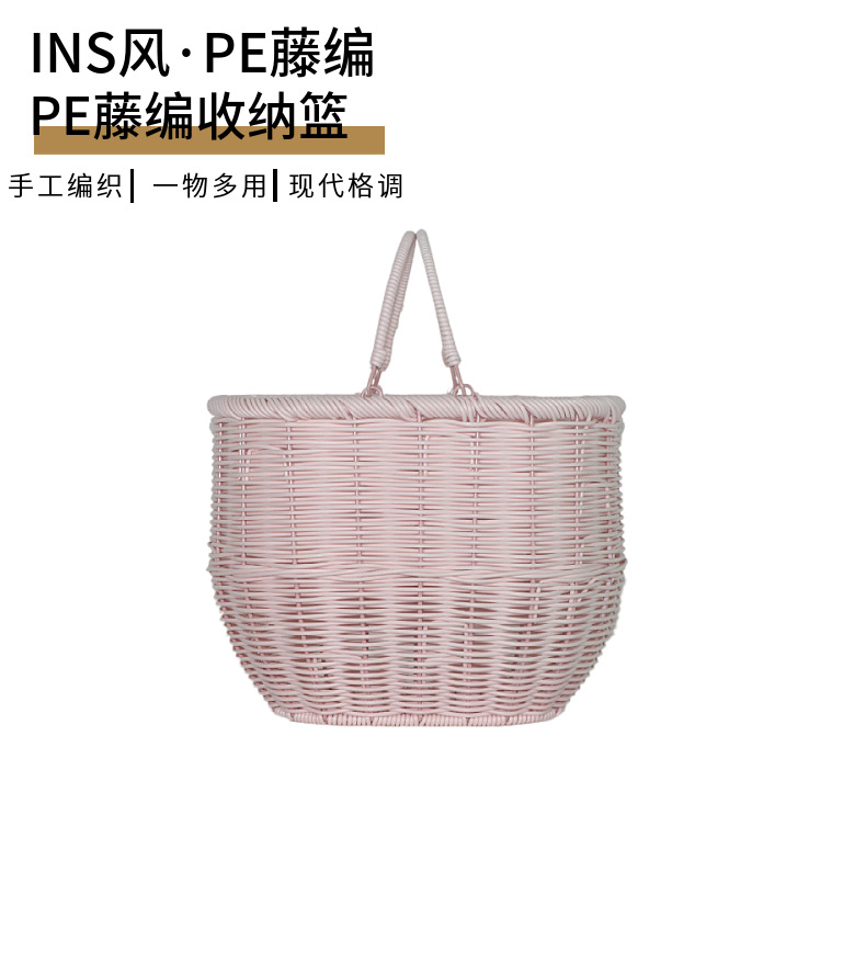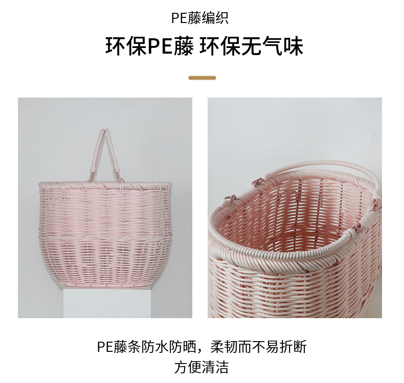 Ins estilo de almacenamiento de la cesta portátil PE Rattan cesta tejida flor floral arreglo floral azul portátil
